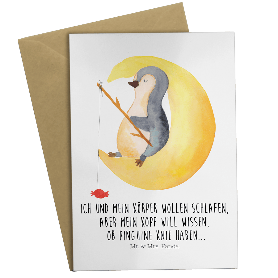 Grußkarte Pinguin Mond - mit Spruch - Weiß