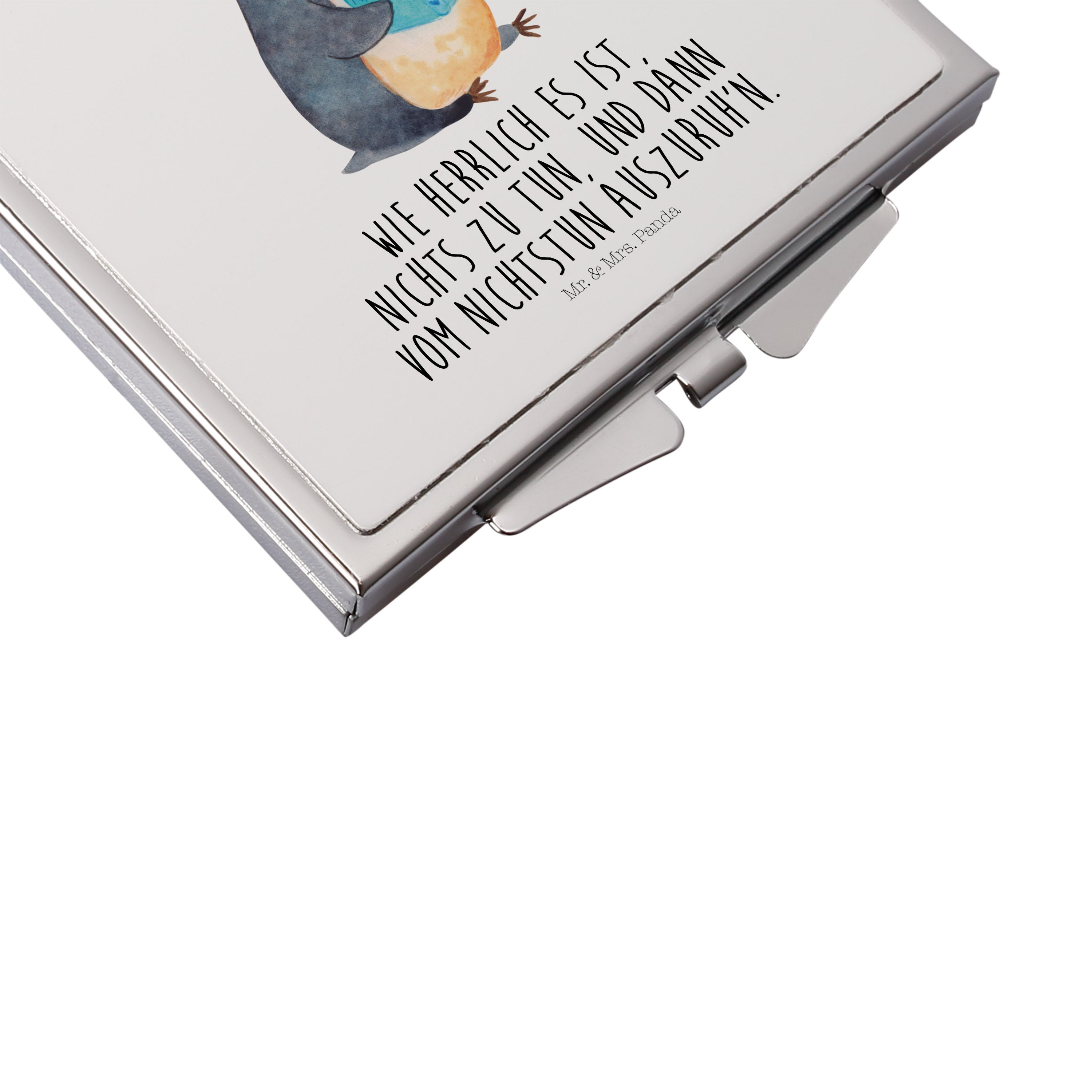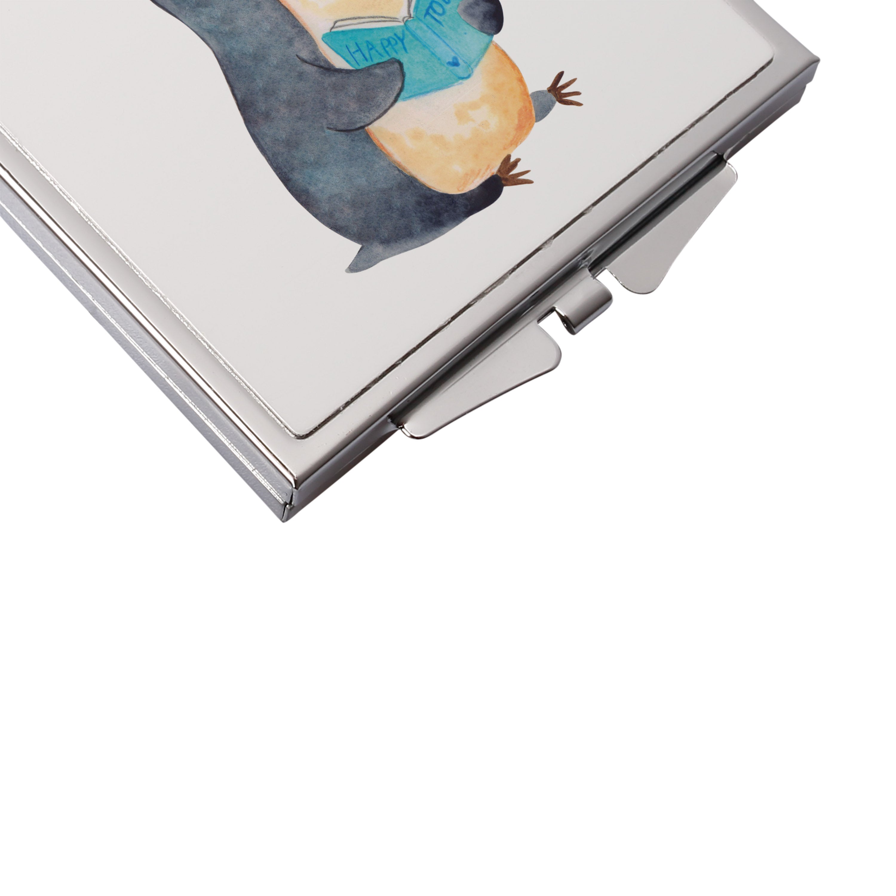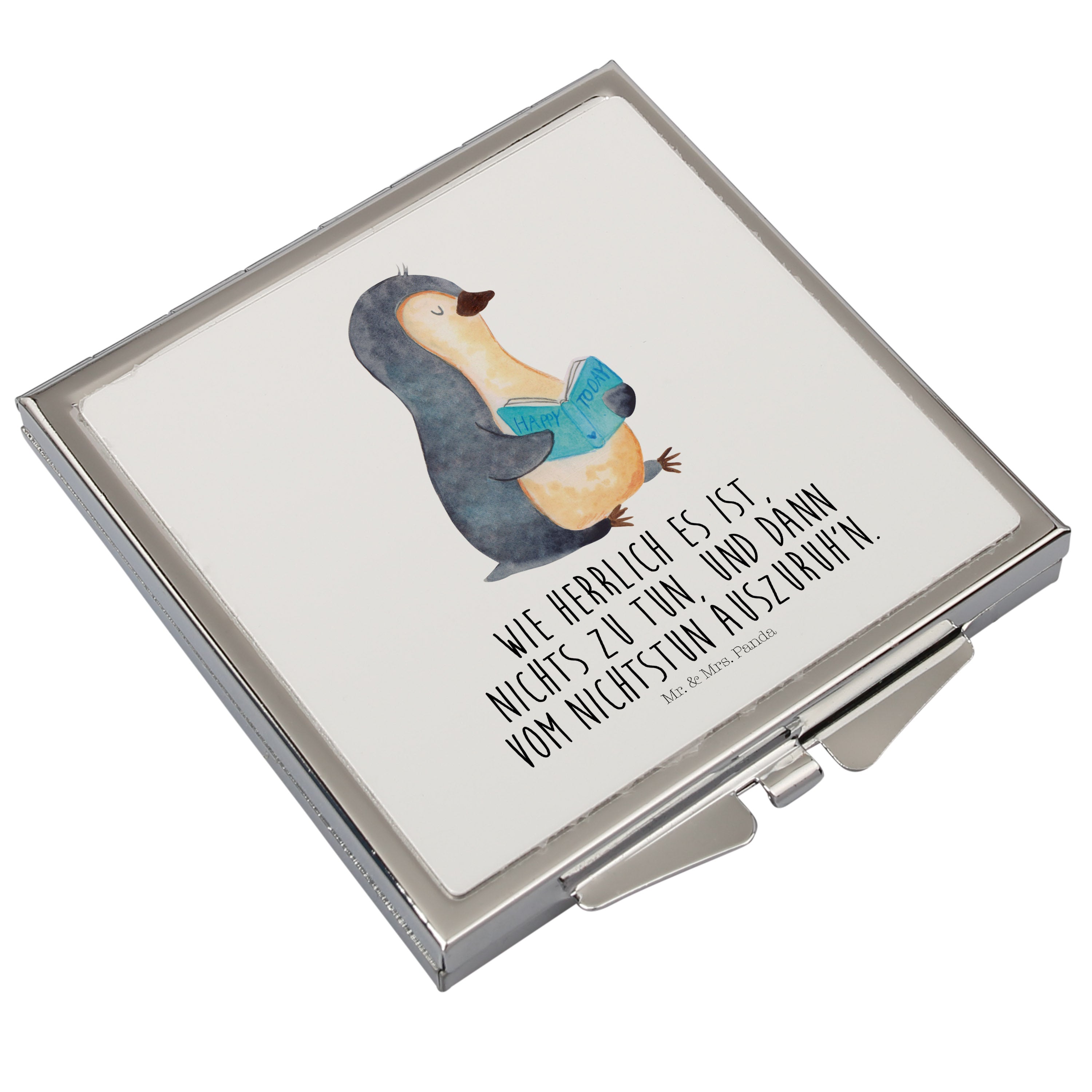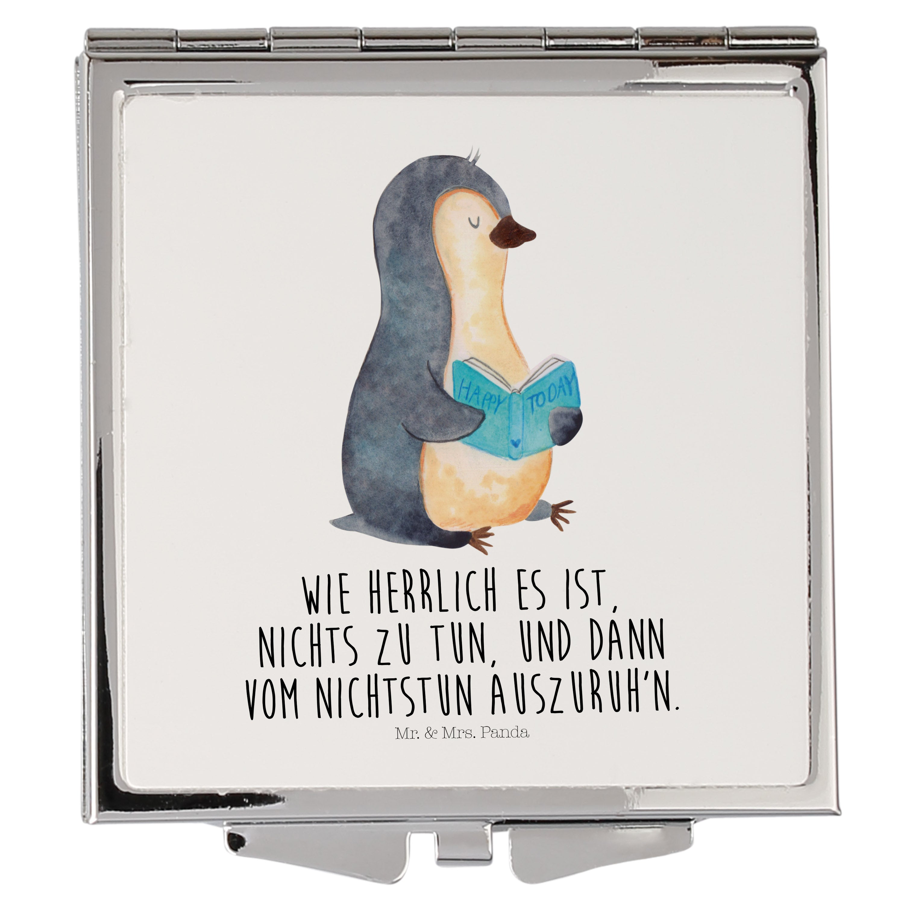 Handtaschenspiegel quadratisch Pinguin Buch - mit Spruch - Eisblau