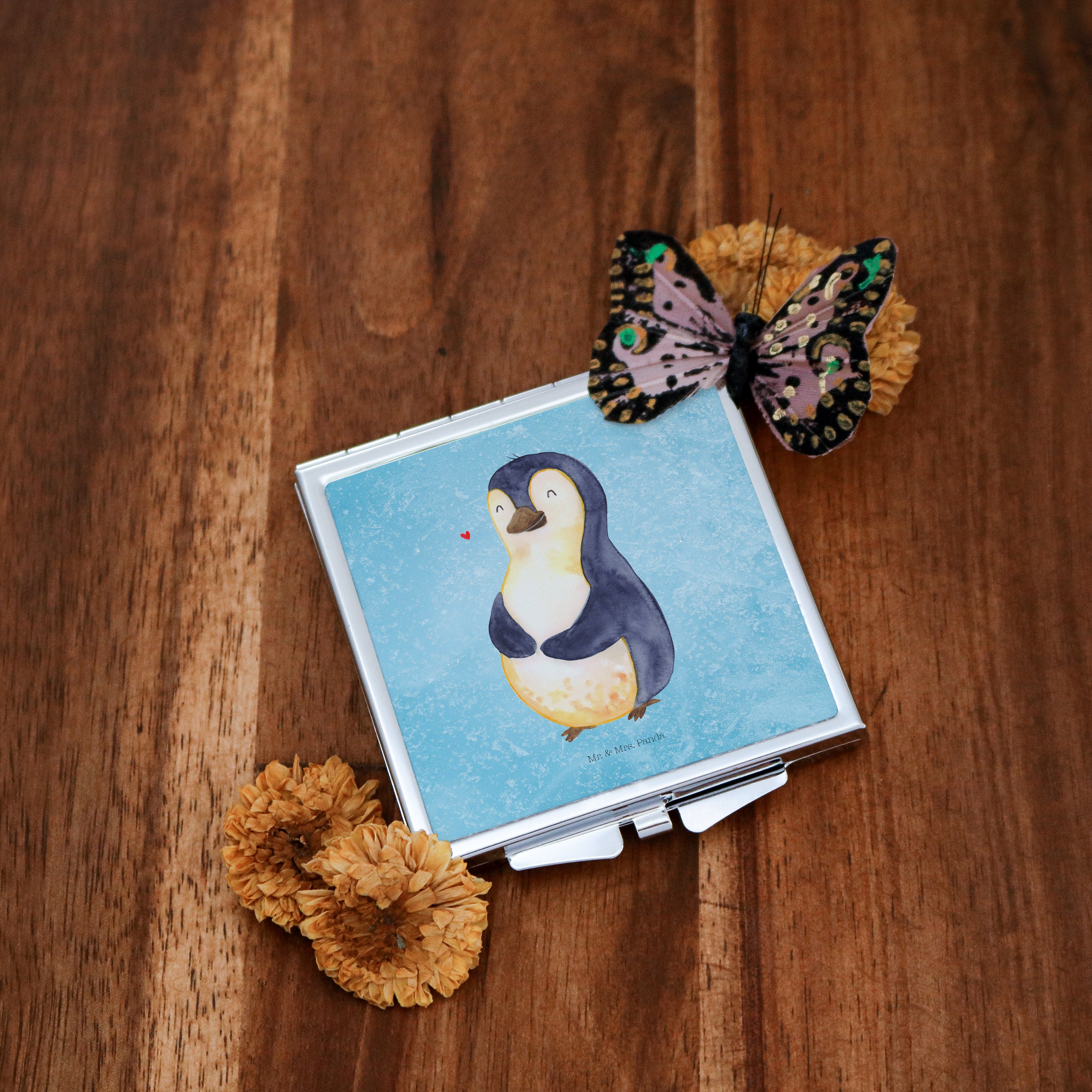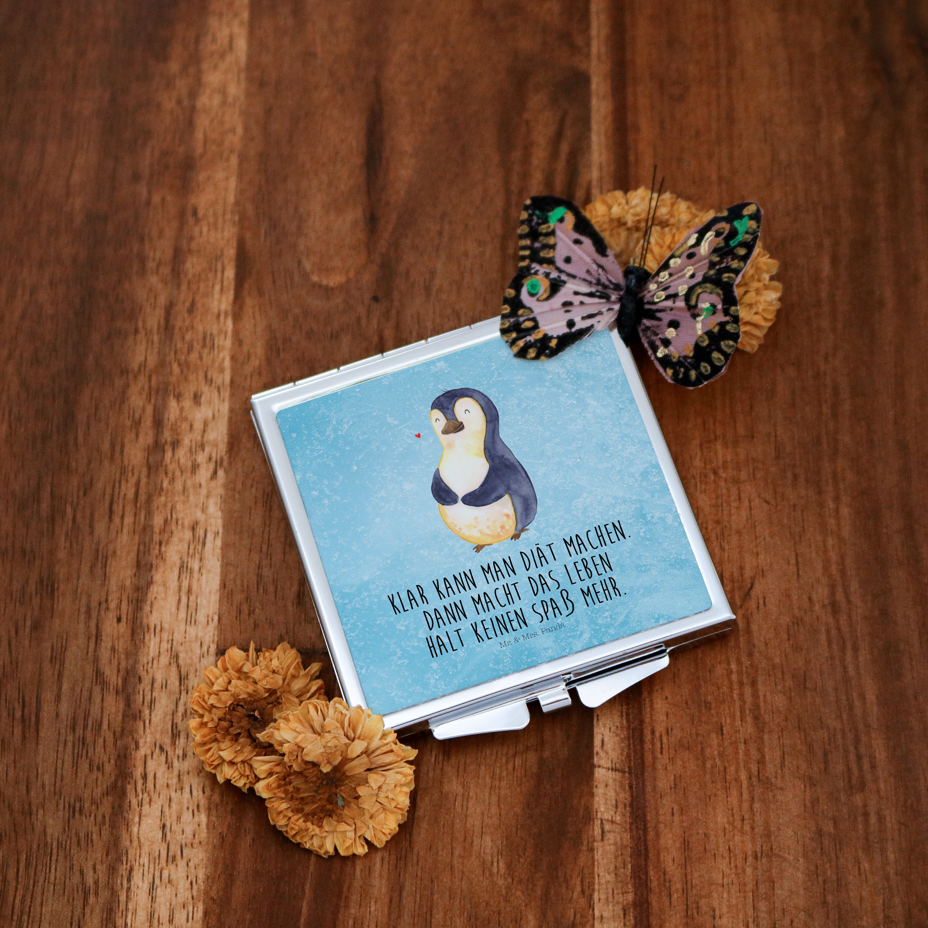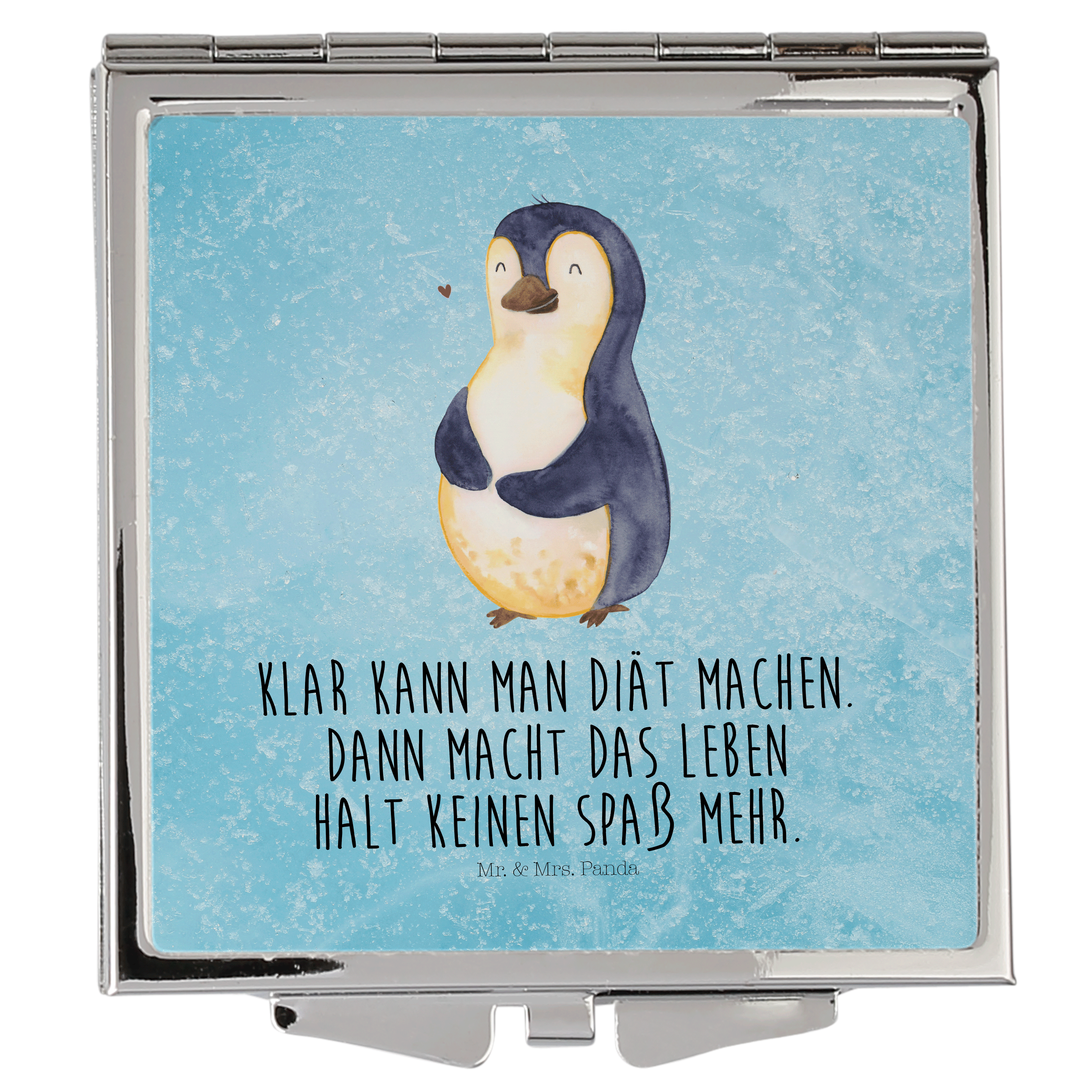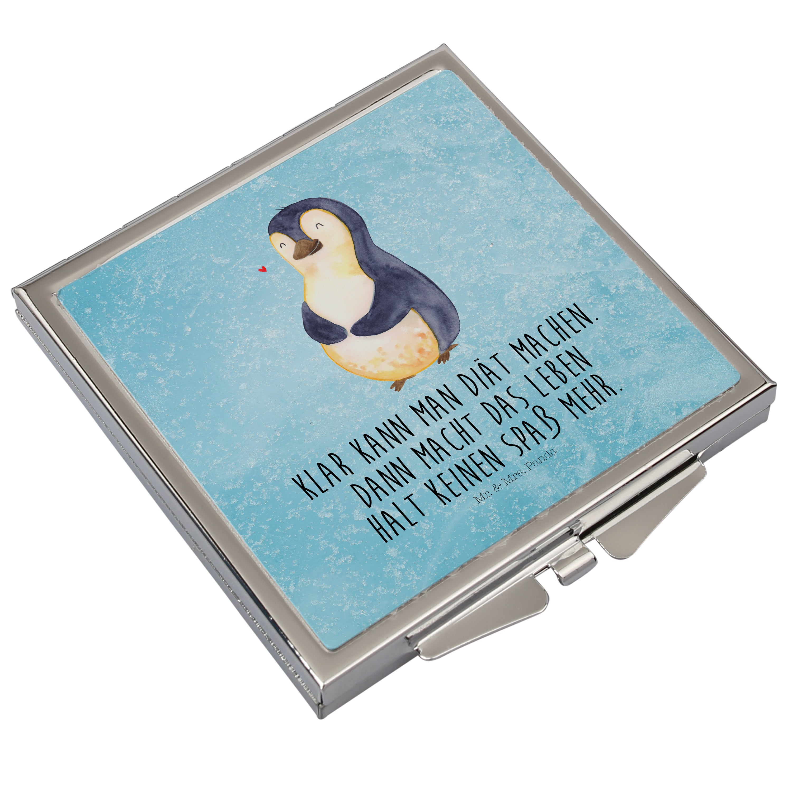 Handtaschenspiegel quadratisch Pinguin Diät - mit Spruch - Eisblau