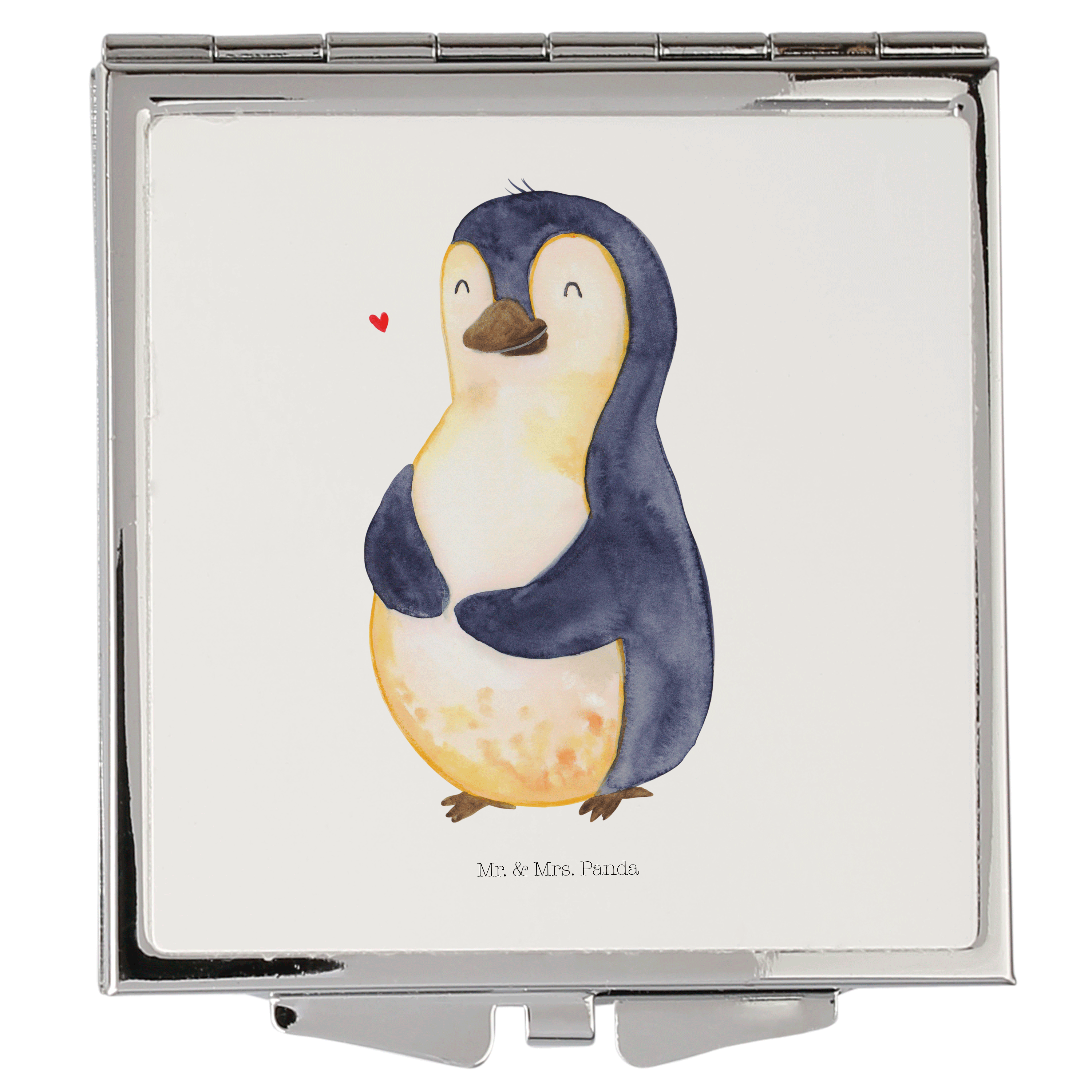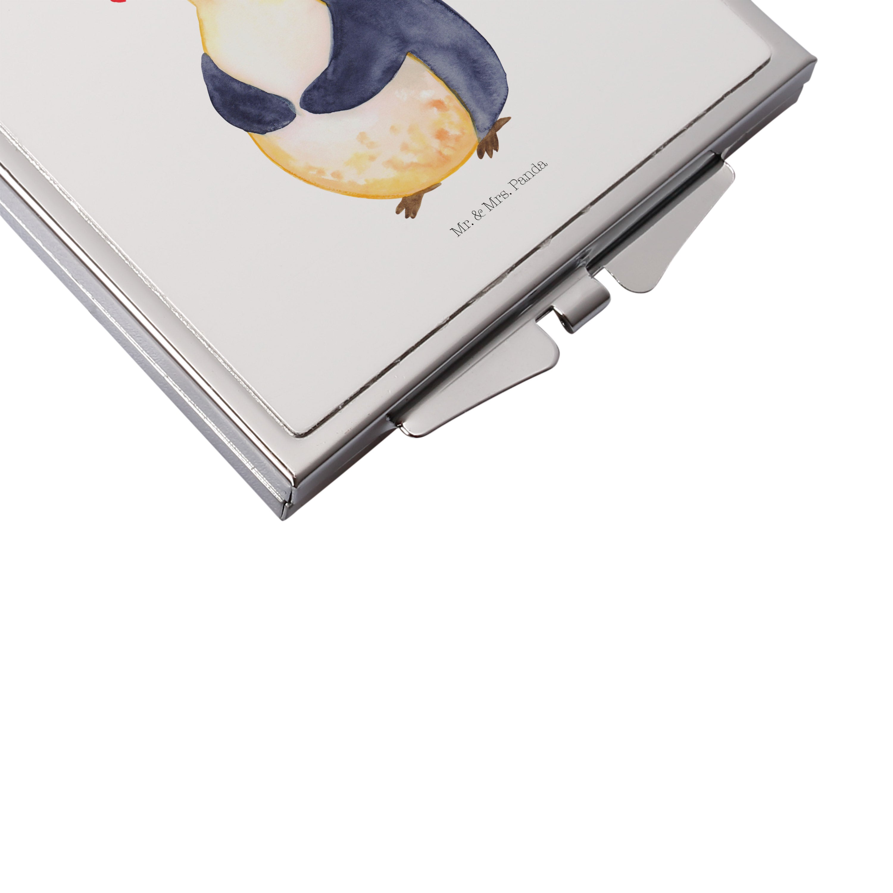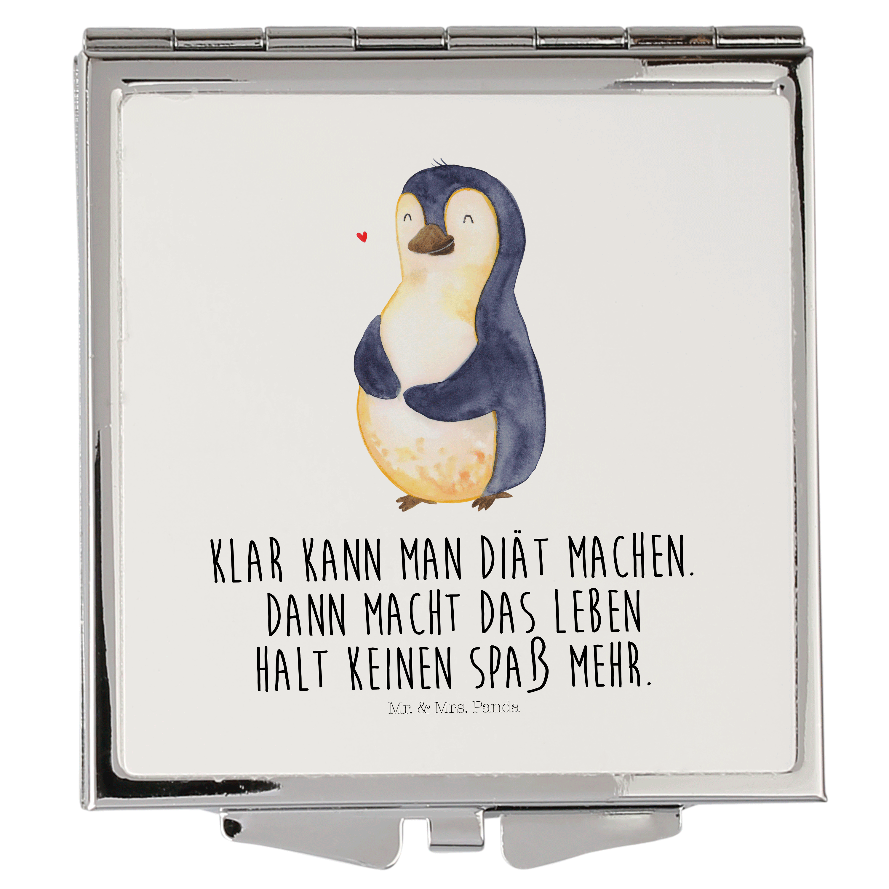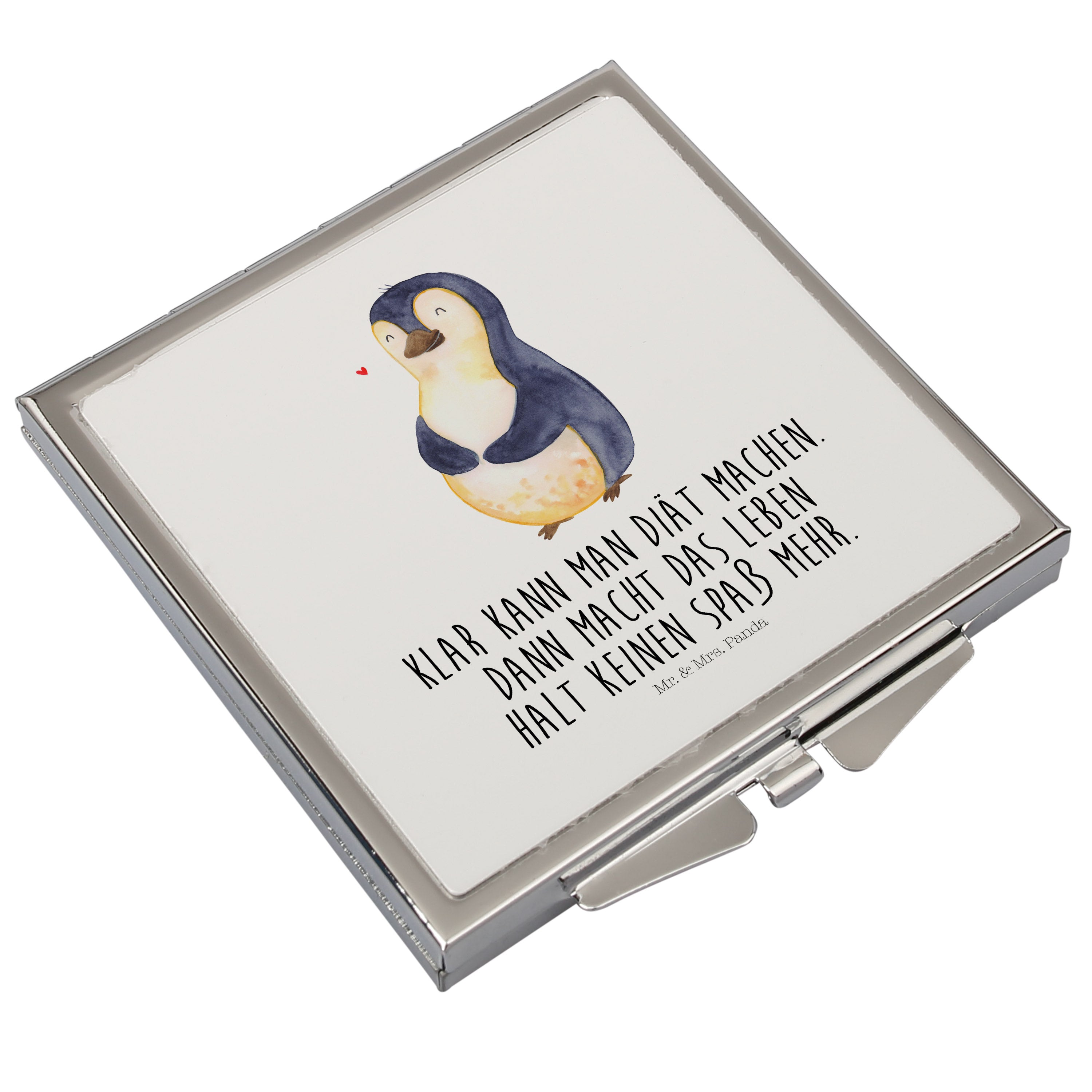 Handtaschenspiegel quadratisch Pinguin Diät - mit Spruch - Eisblau