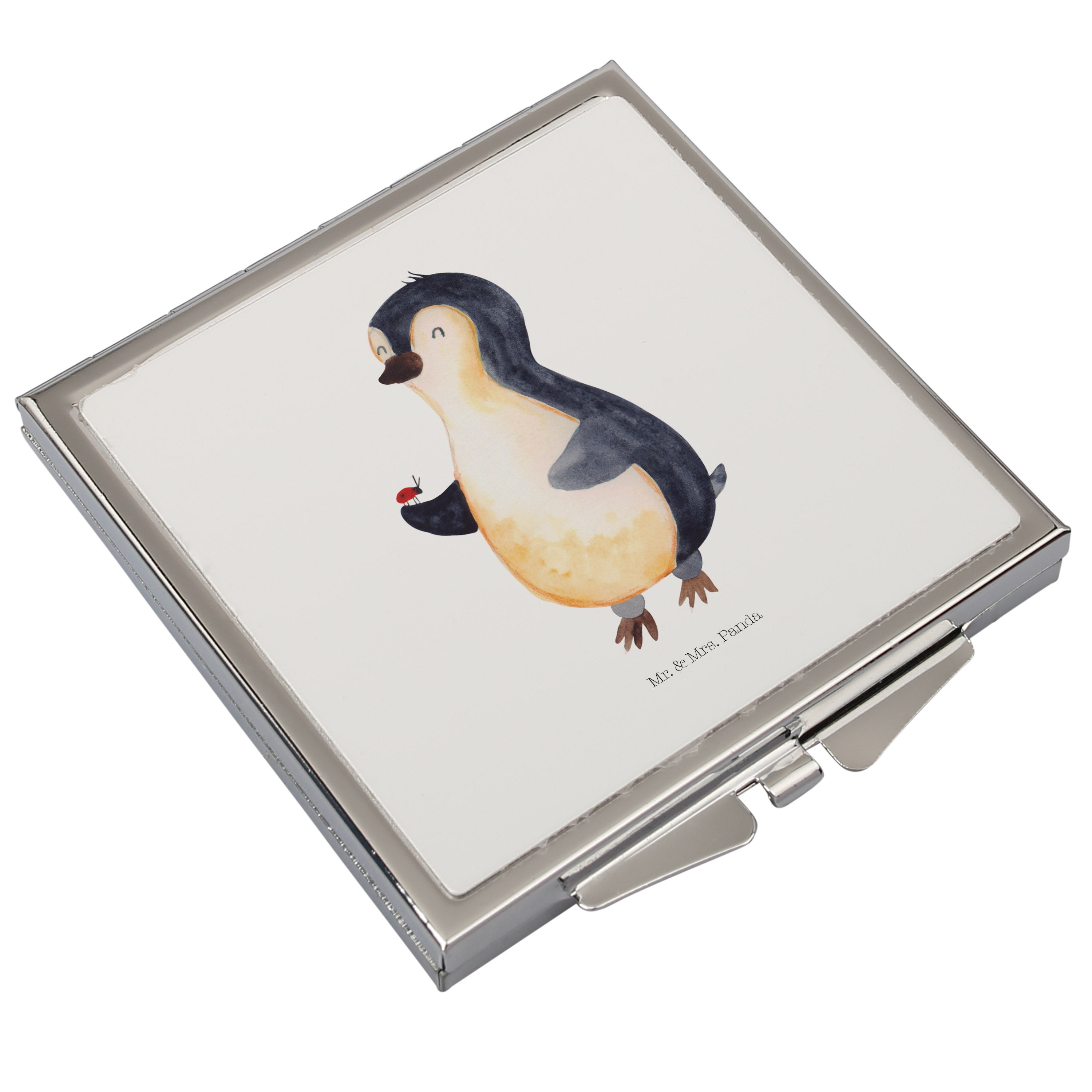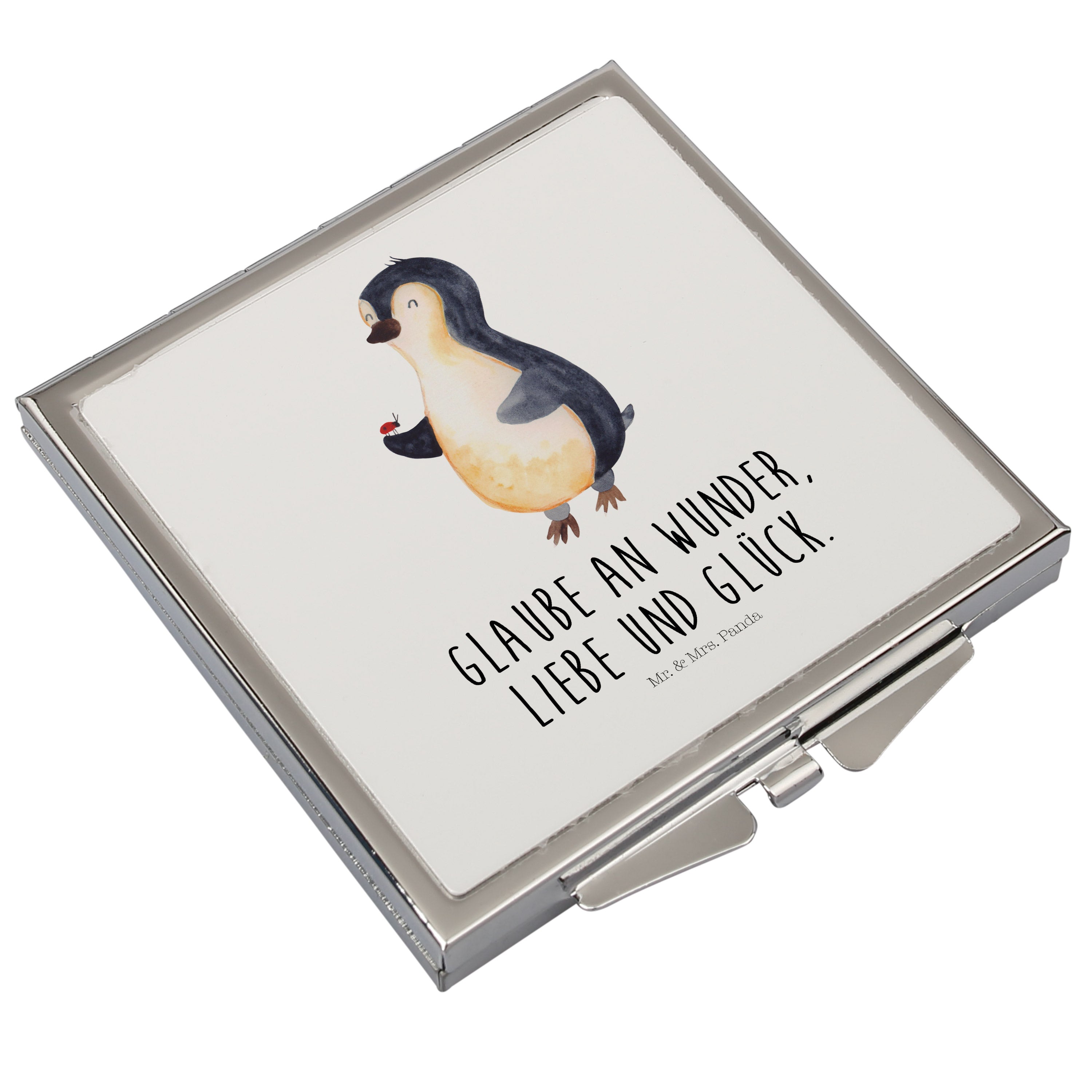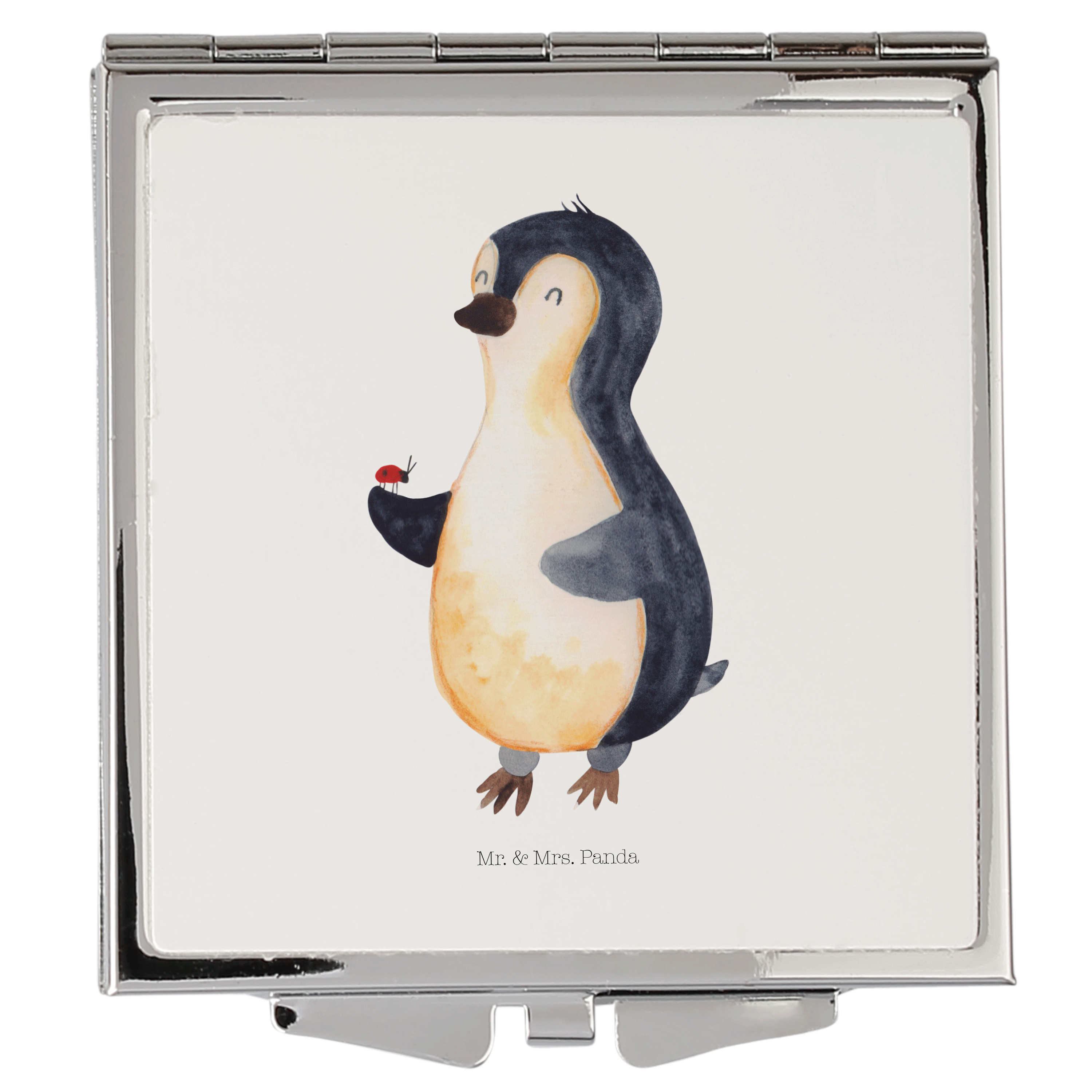 Handtaschenspiegel quadratisch Pinguin Marienkäfer Spiegel, Handtasche, Quadrat, silber, schminken, Schminkspiegel, Pinguin, Pinguine, Marienkäfer, Liebe, Wunder, Glück, Freude, Lebensfreude