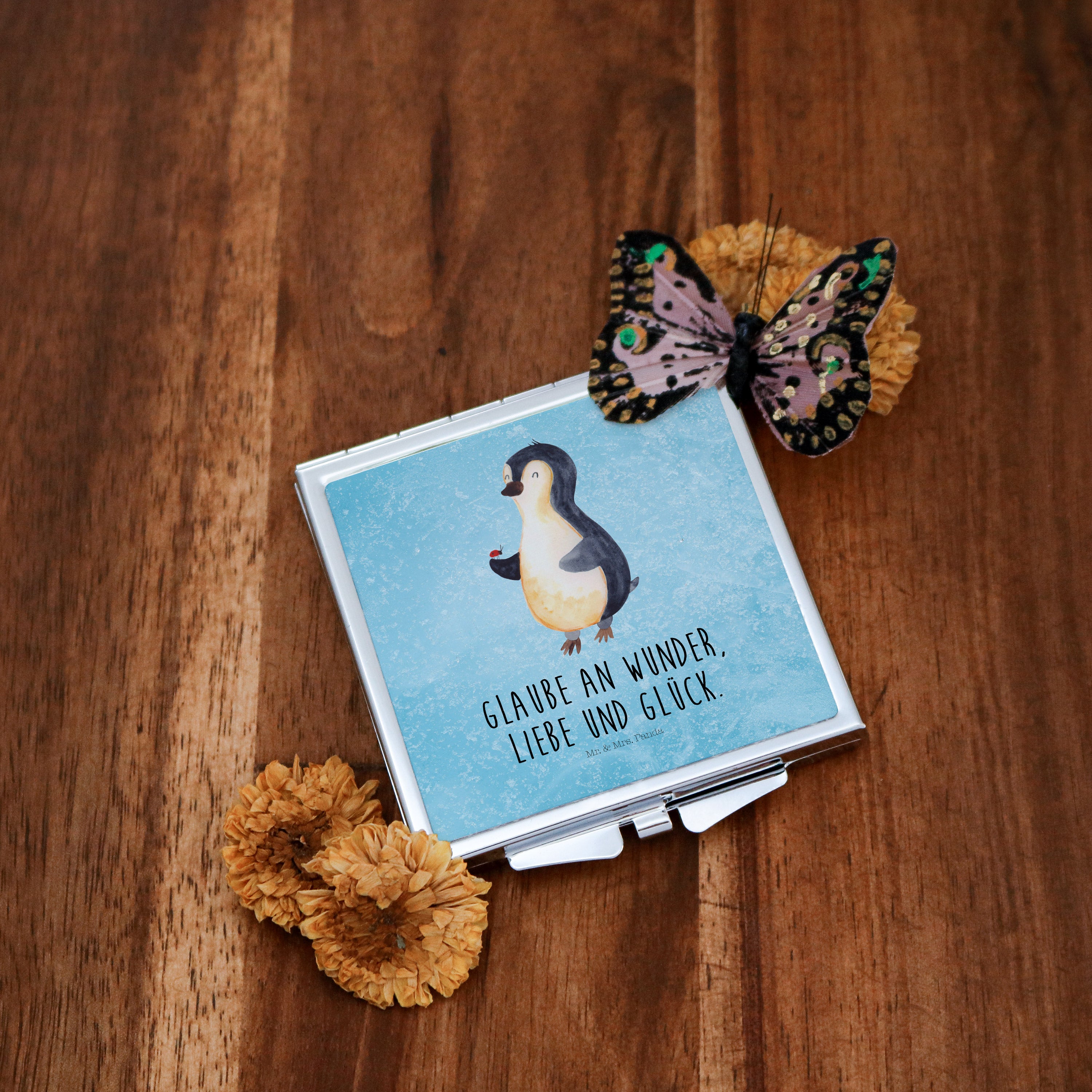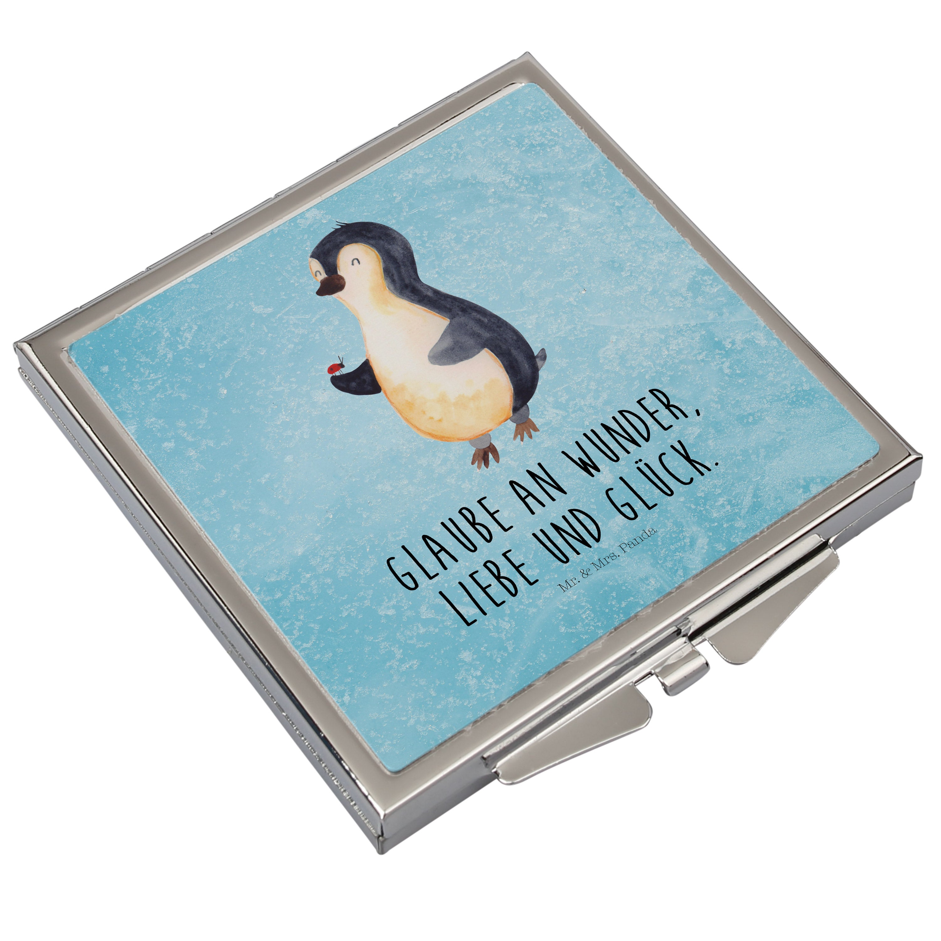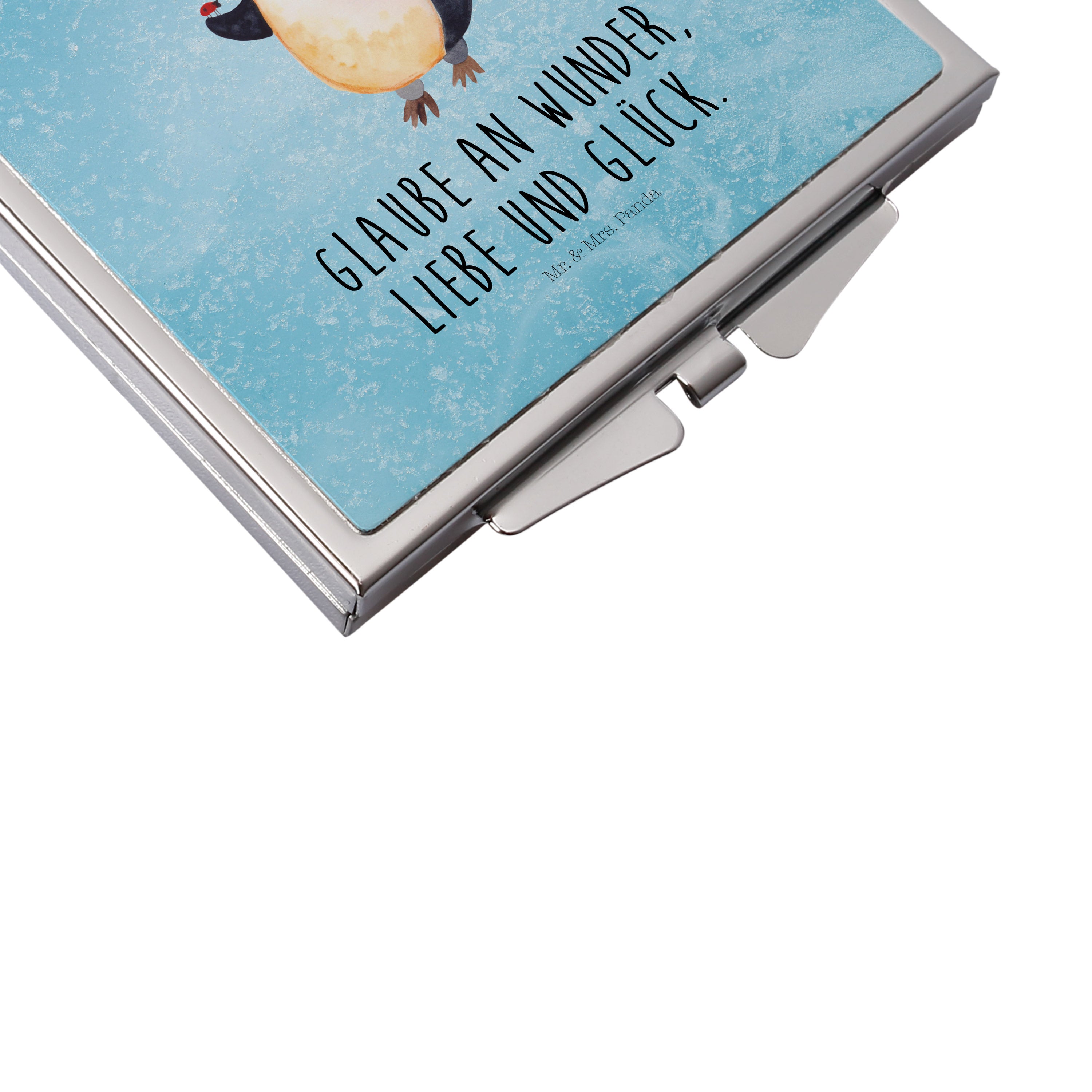 Handtaschenspiegel quadratisch Pinguin Marienkäfer - mit Spruch - Eisblau