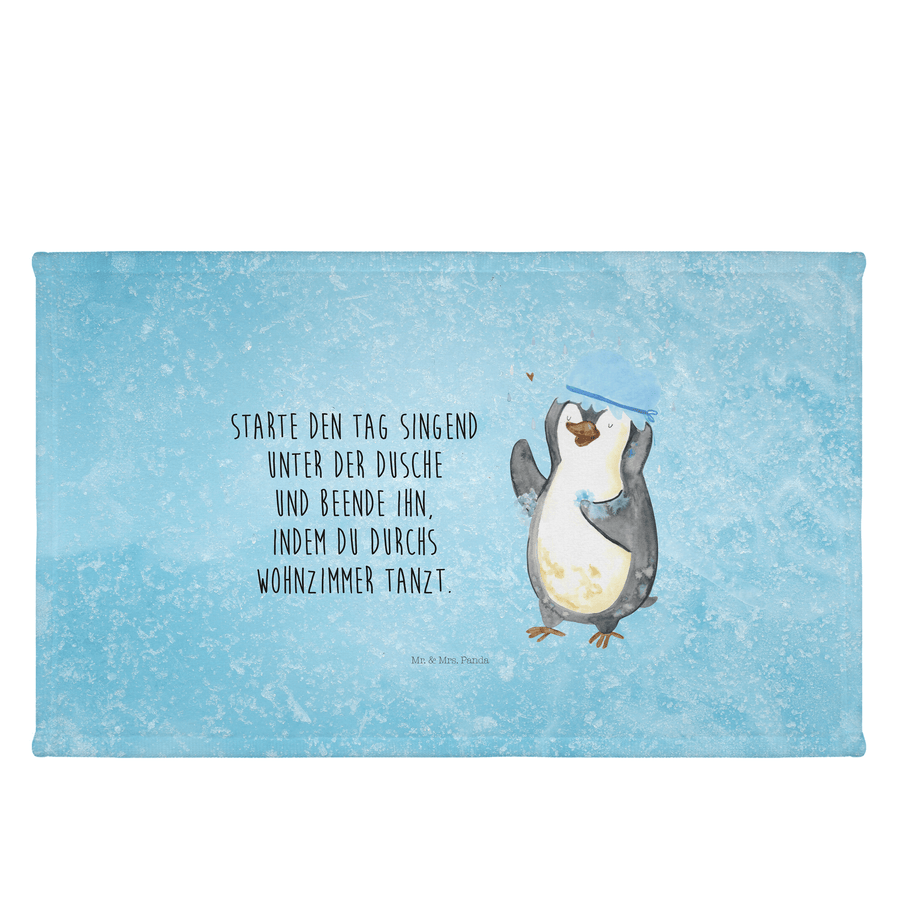 50 x 100 Handtuch Pinguin duscht - mit Spruch - Eisblau