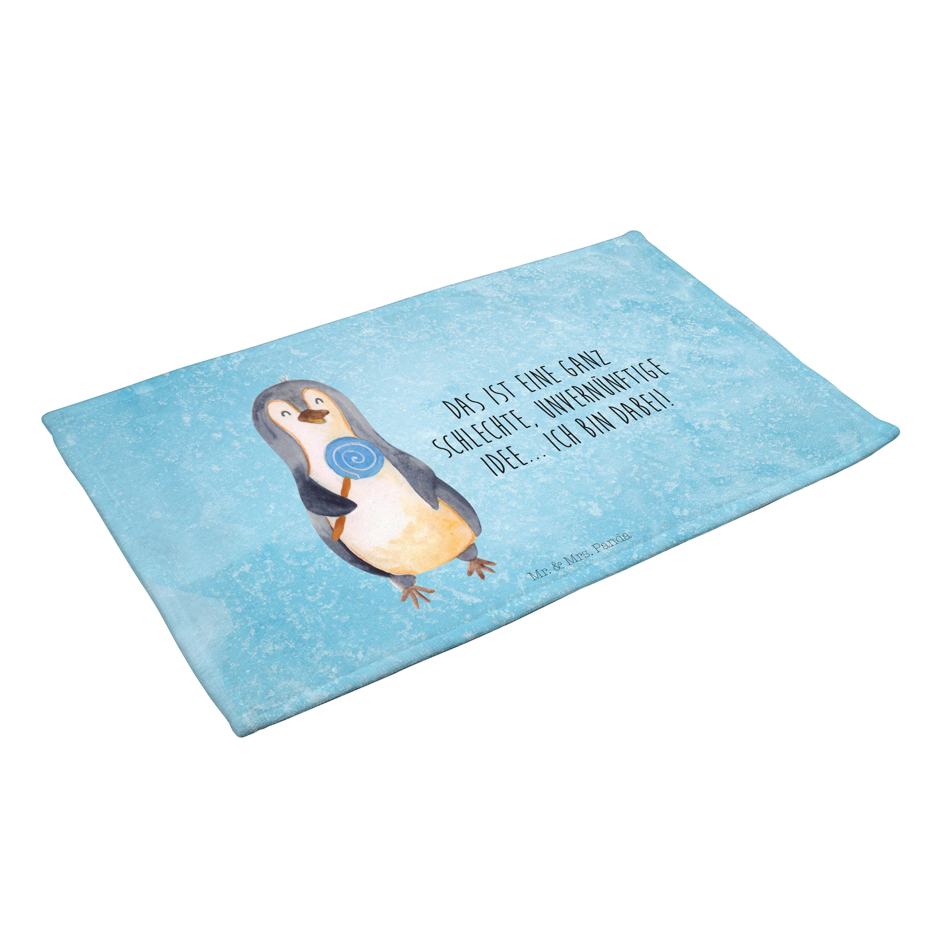 Gäste Handtuch Pinguin Lolli - mit Spruch - Eisblau