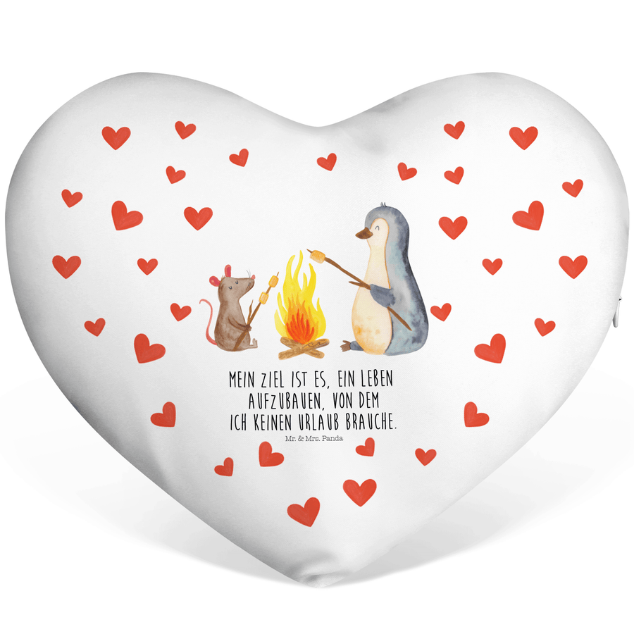 Herzkissen Pinguin Lagerfeuer Kissen, Herzkissen, Herzform, Herz, Dekokissen, Pinguin, Maus, Pinguine, Lagerfeuer, Leben, Arbeit, Job, Motivation, Büro, Büroalltag, Lebensspruch, Lebensmotivation, Neustart, Liebe, grillen, Feuer, Marshmallows