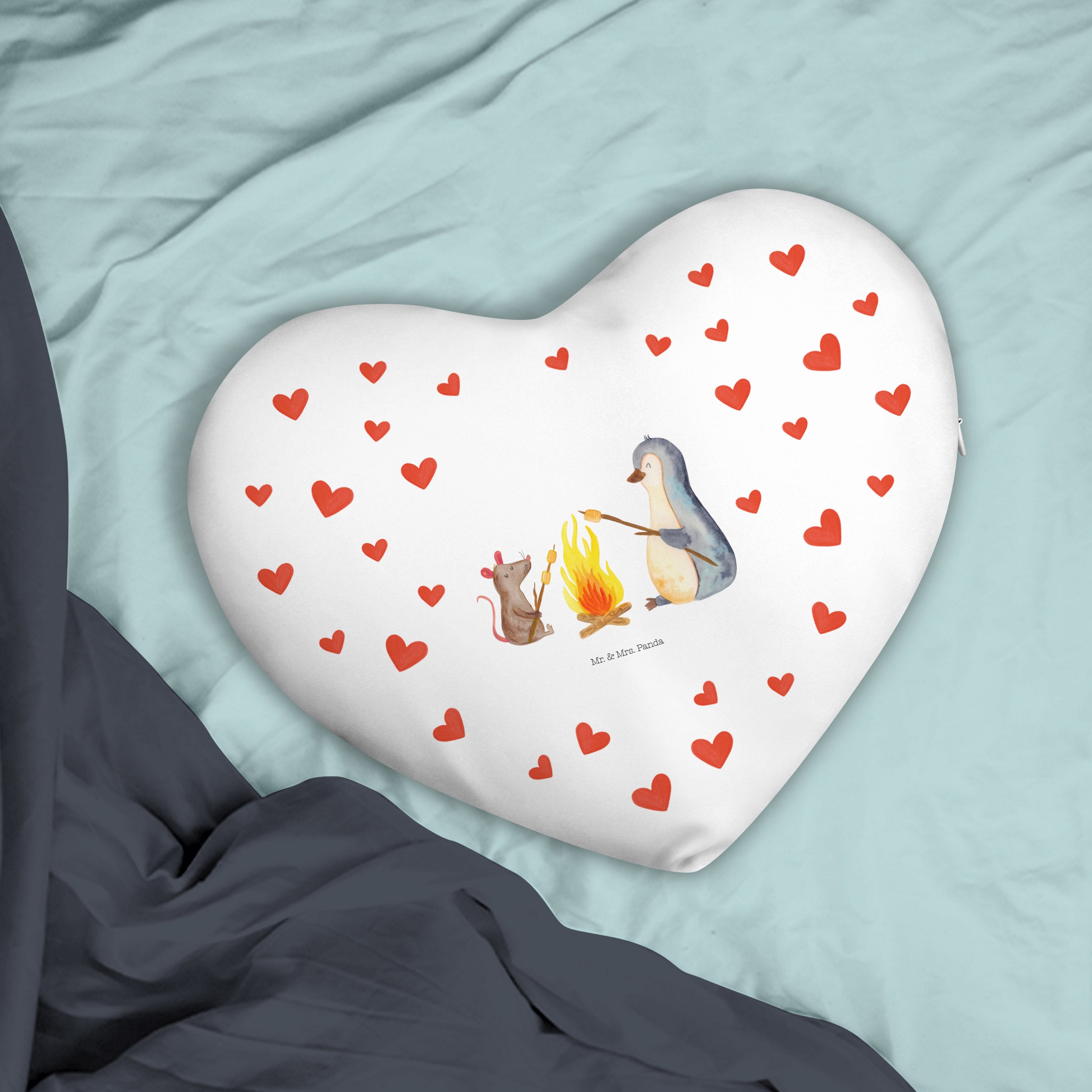 Herzkissen Pinguin Lagerfeuer - mit Spruch