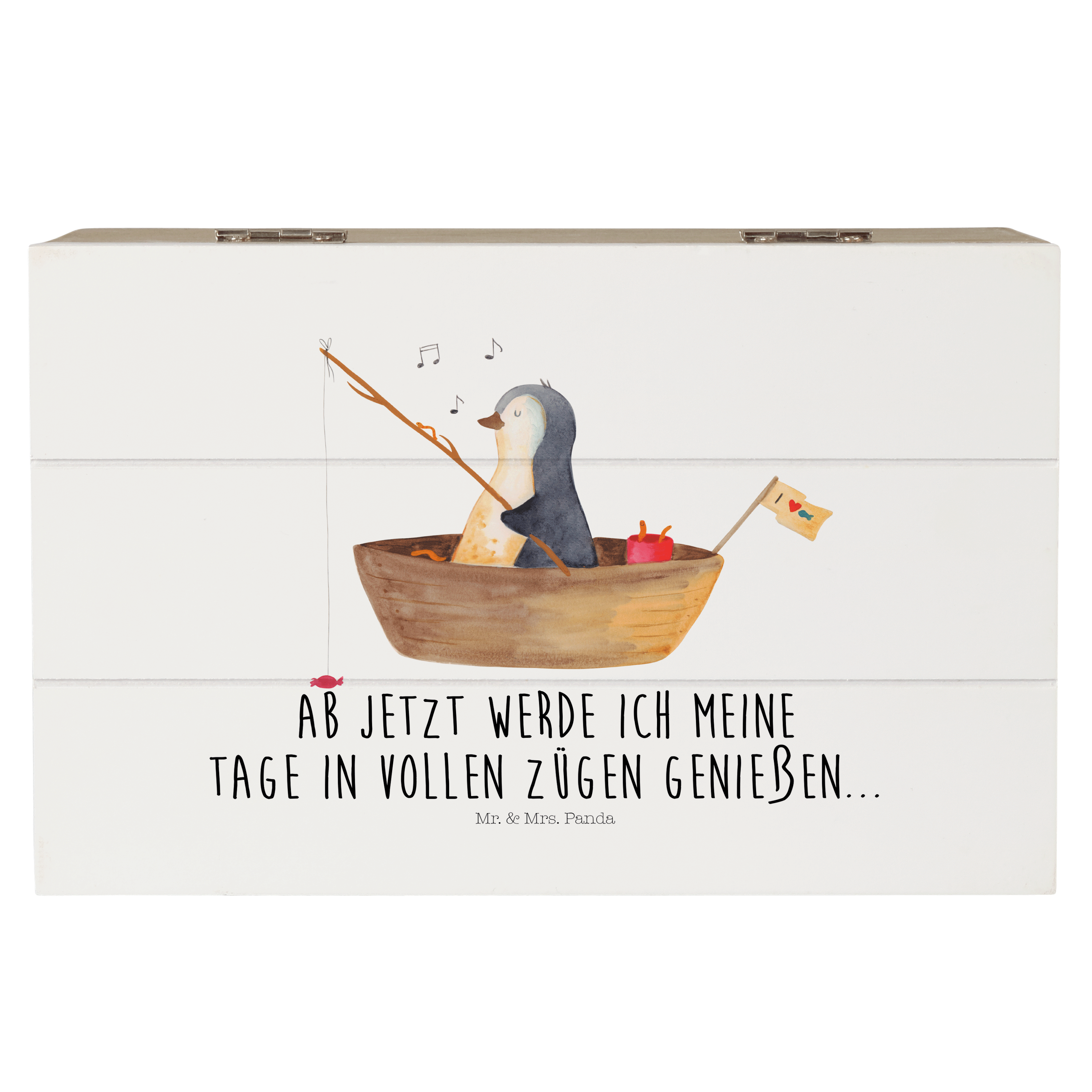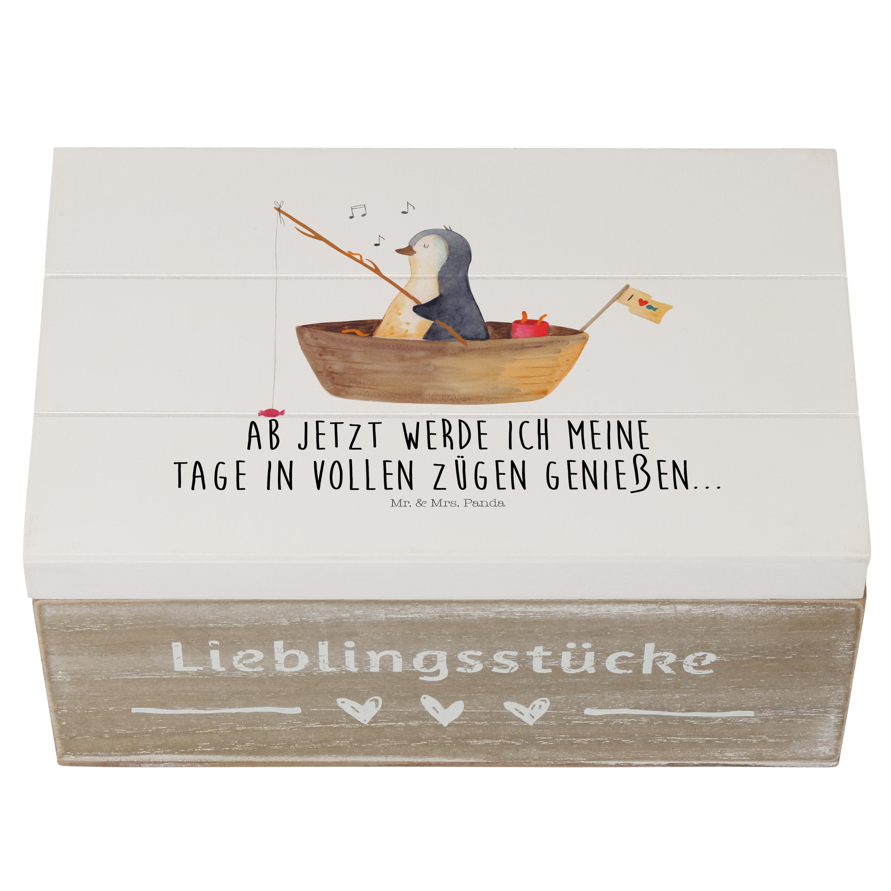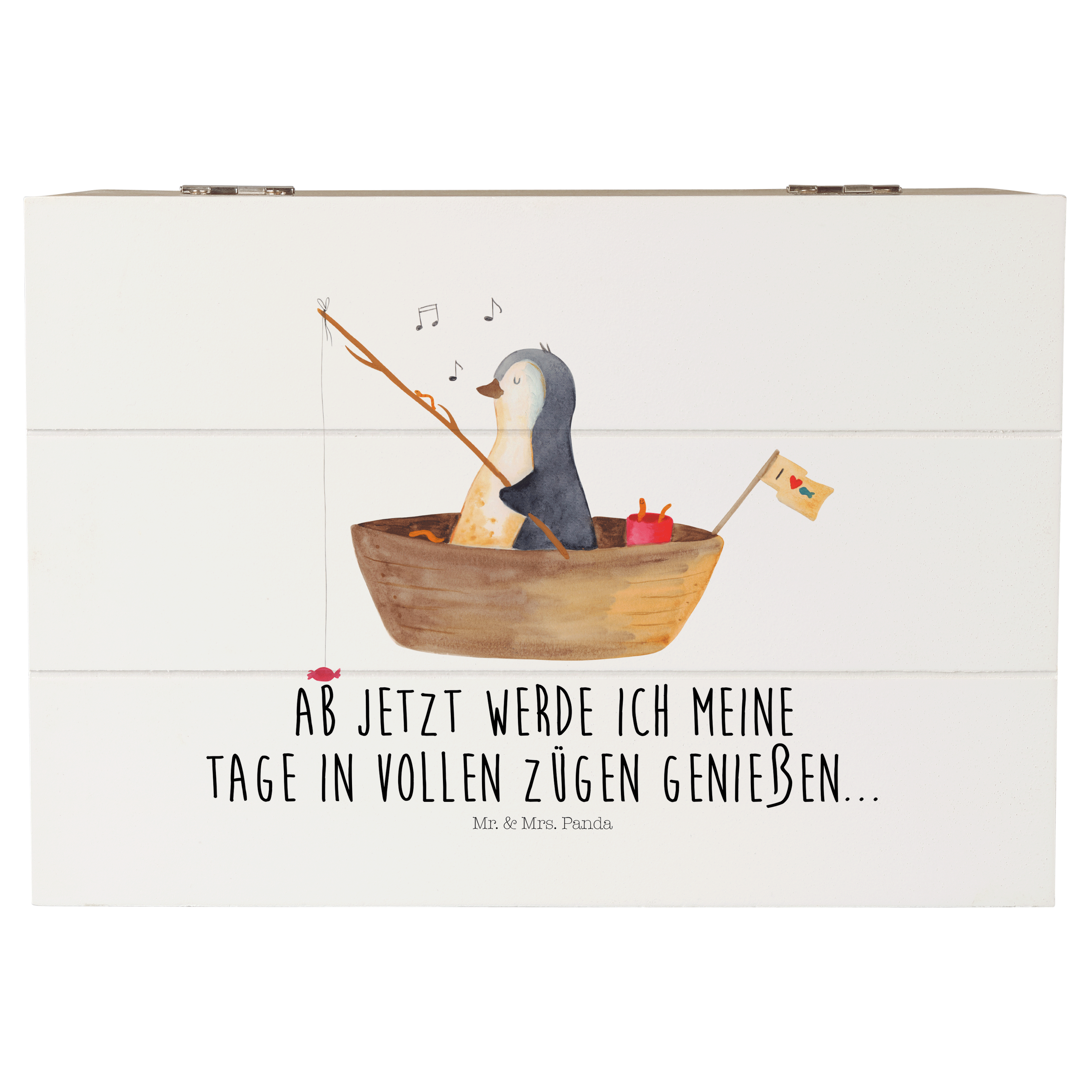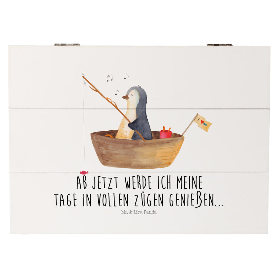 Holzkiste Pinguin Angelboot - 25 x 18 cm - mit Spruch - Weiß