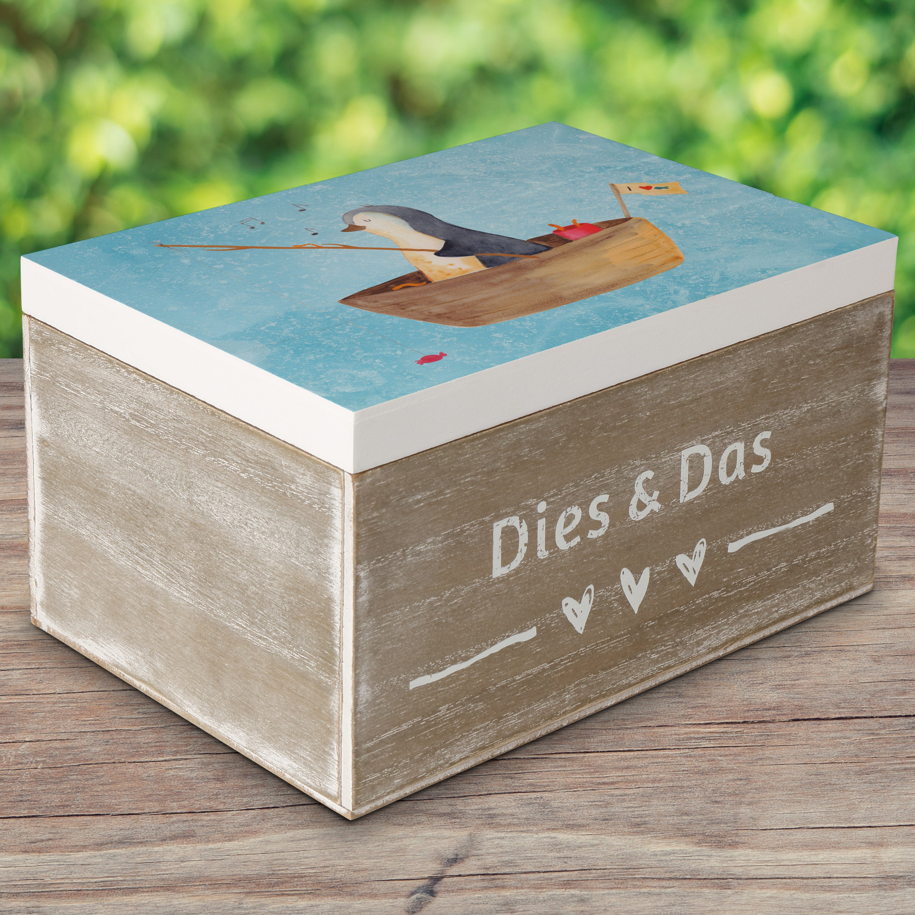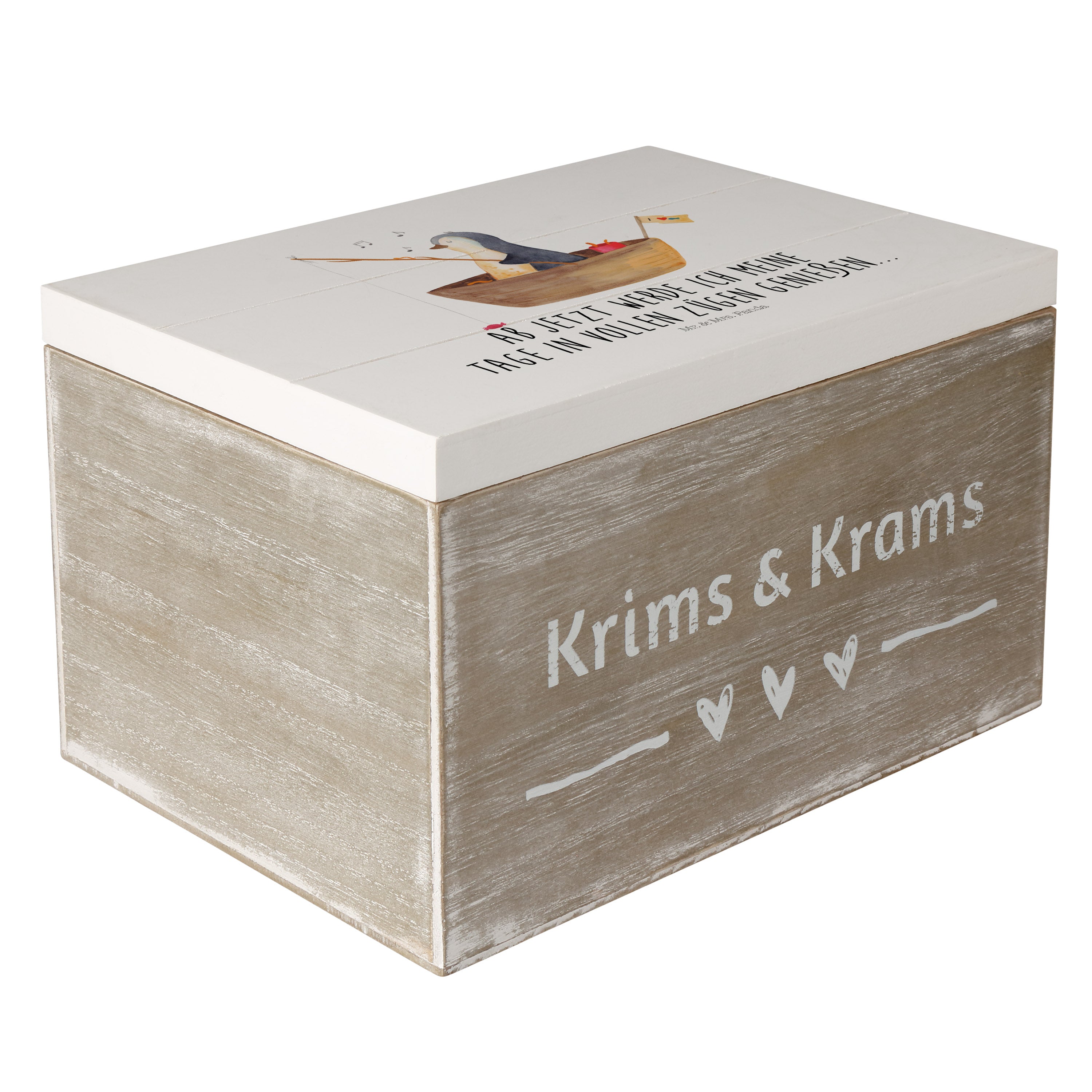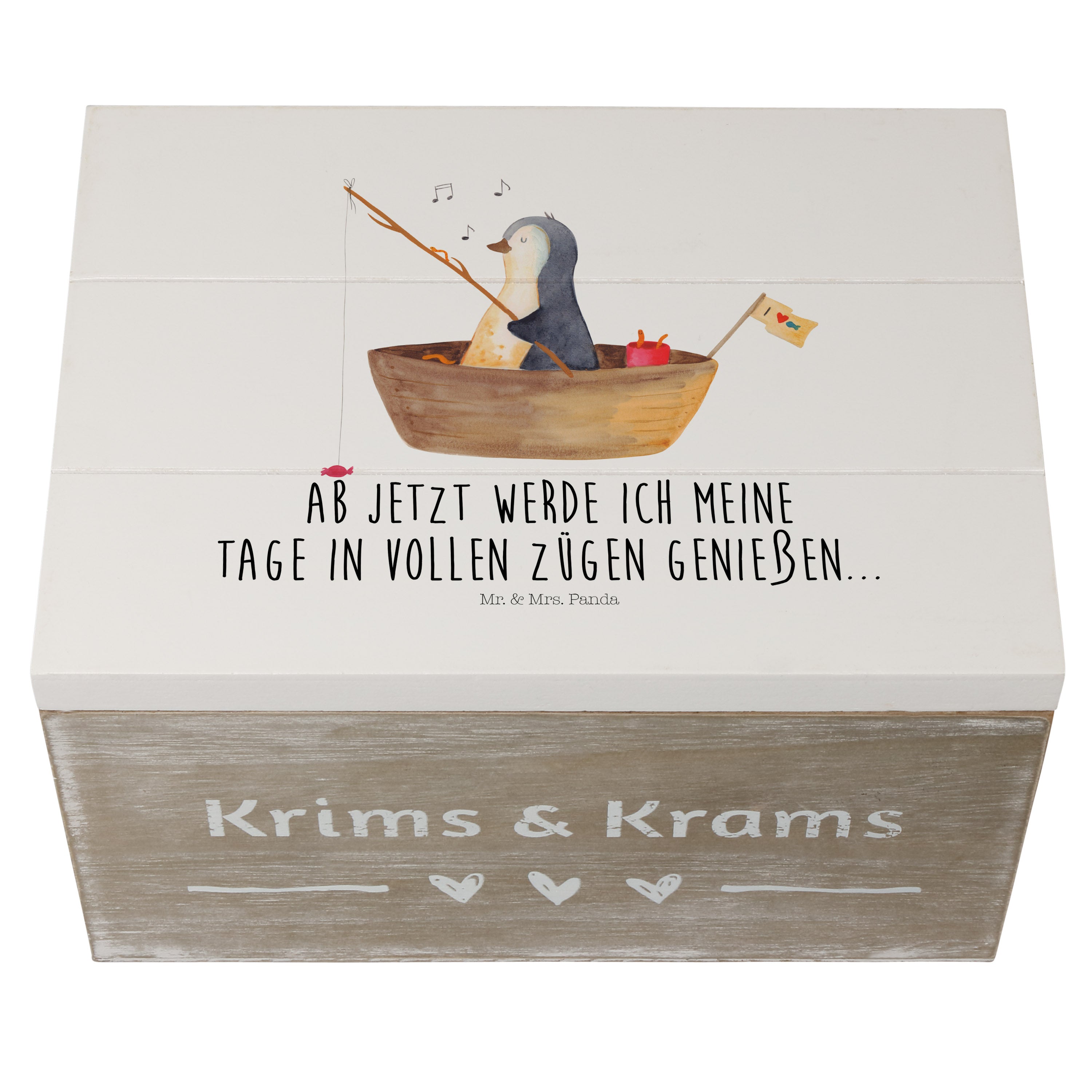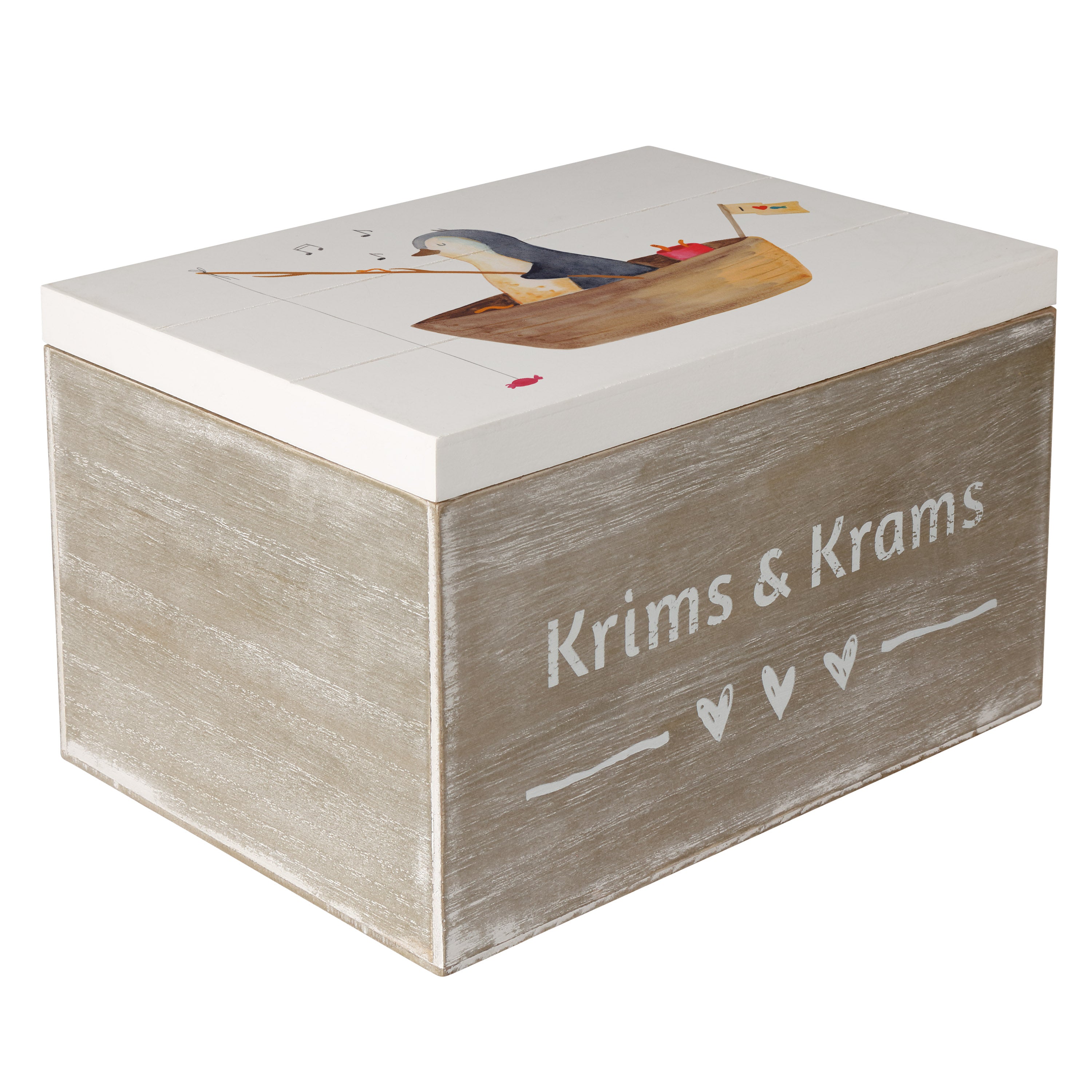 Holzkiste Pinguin Angelboot - 25 x 18 cm - mit Spruch - Weiß