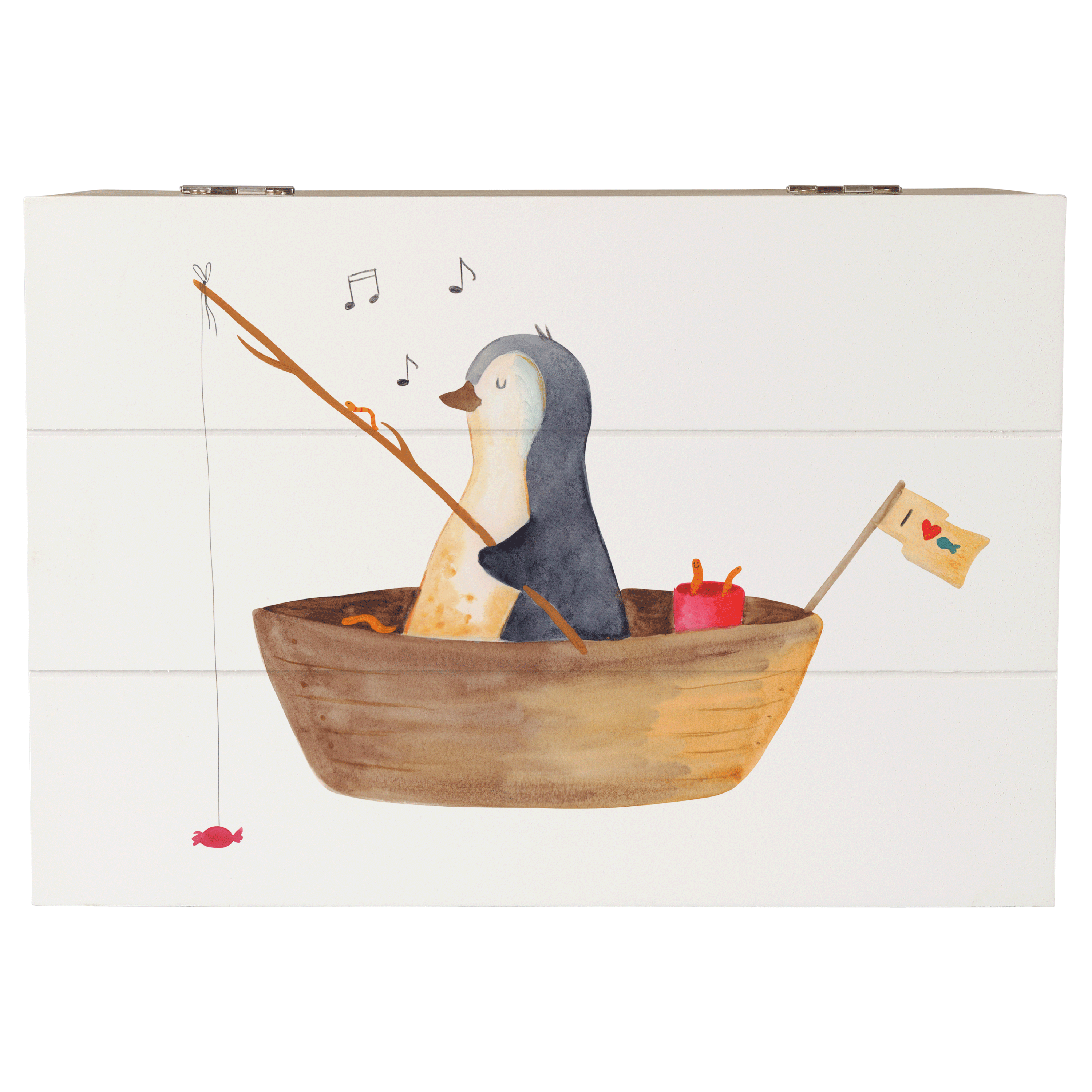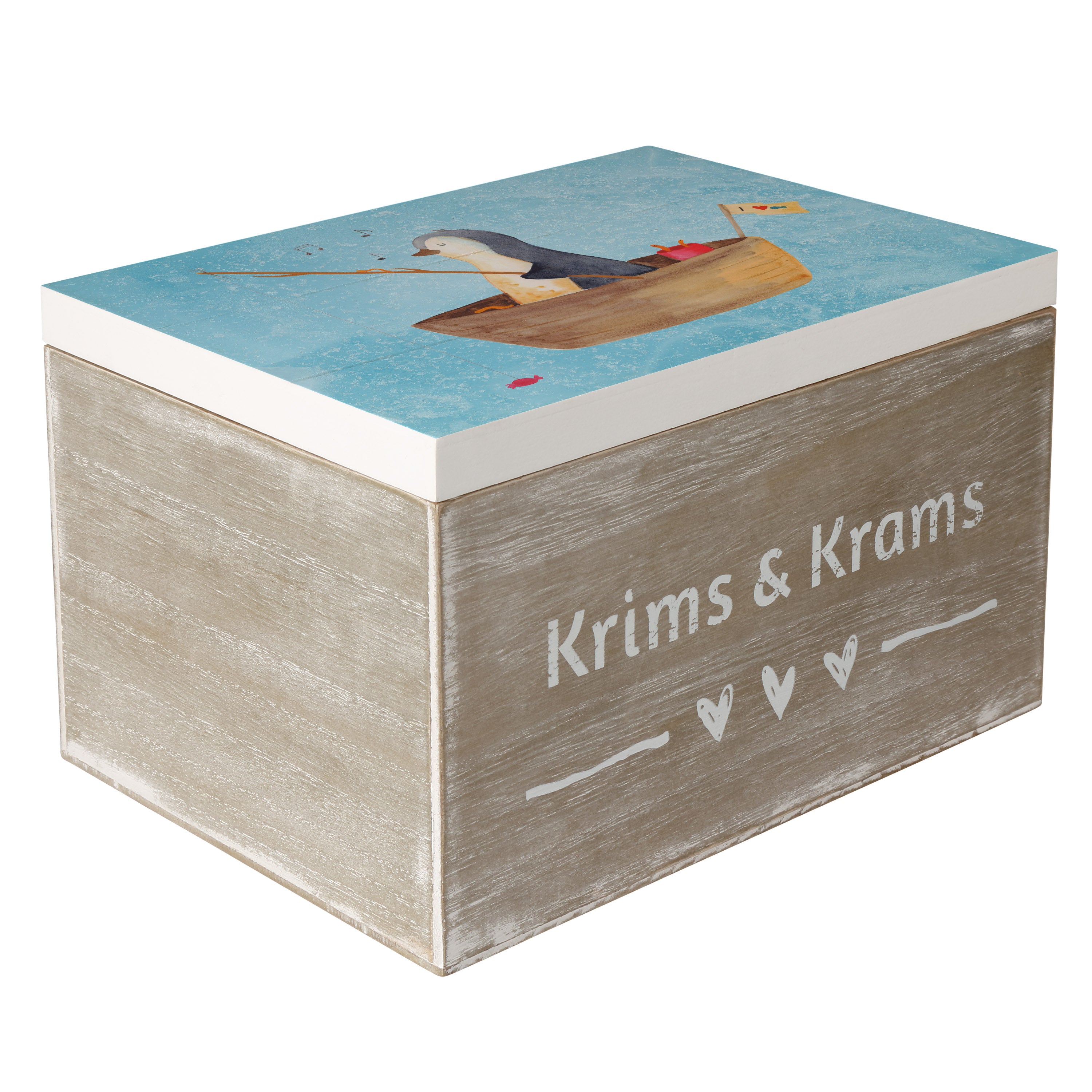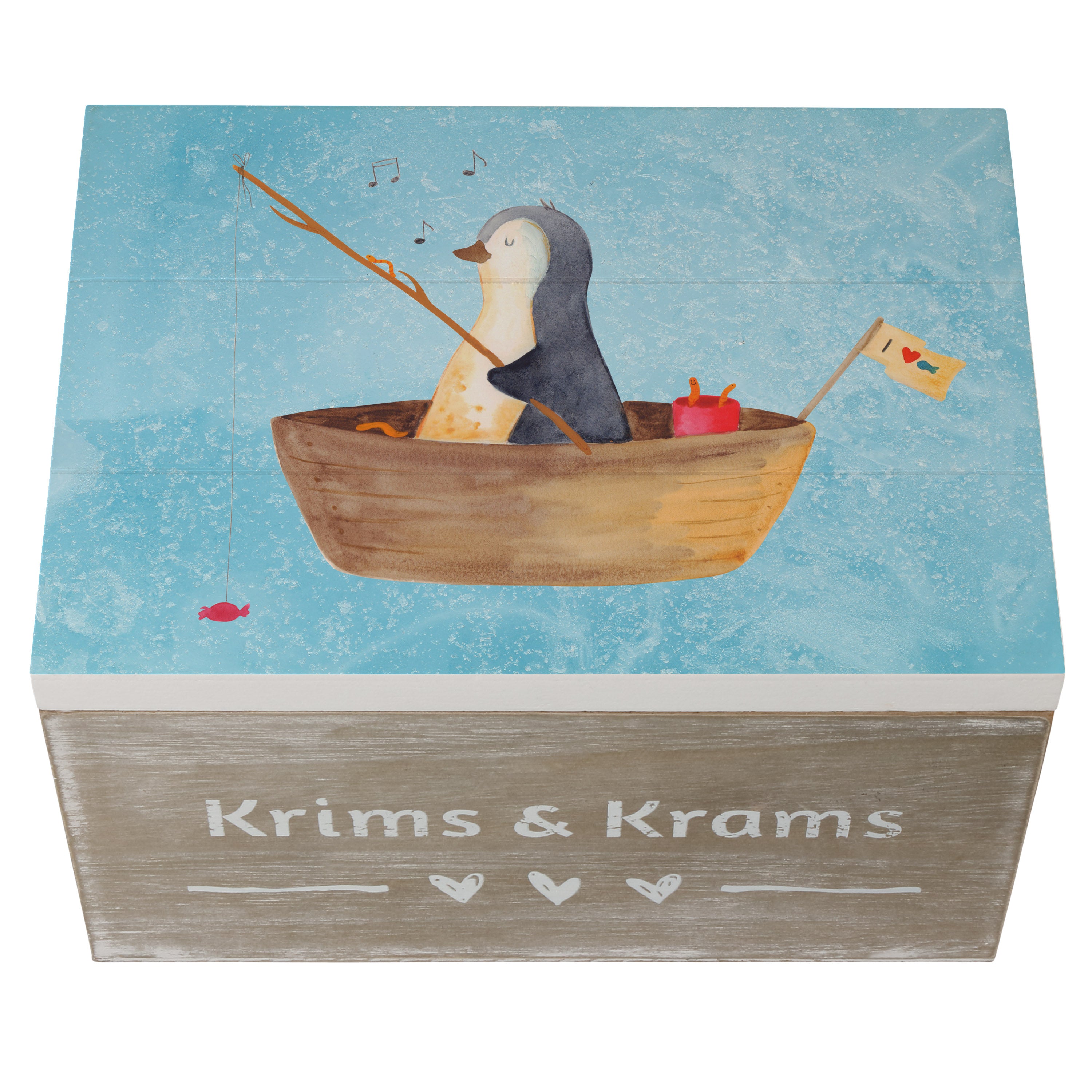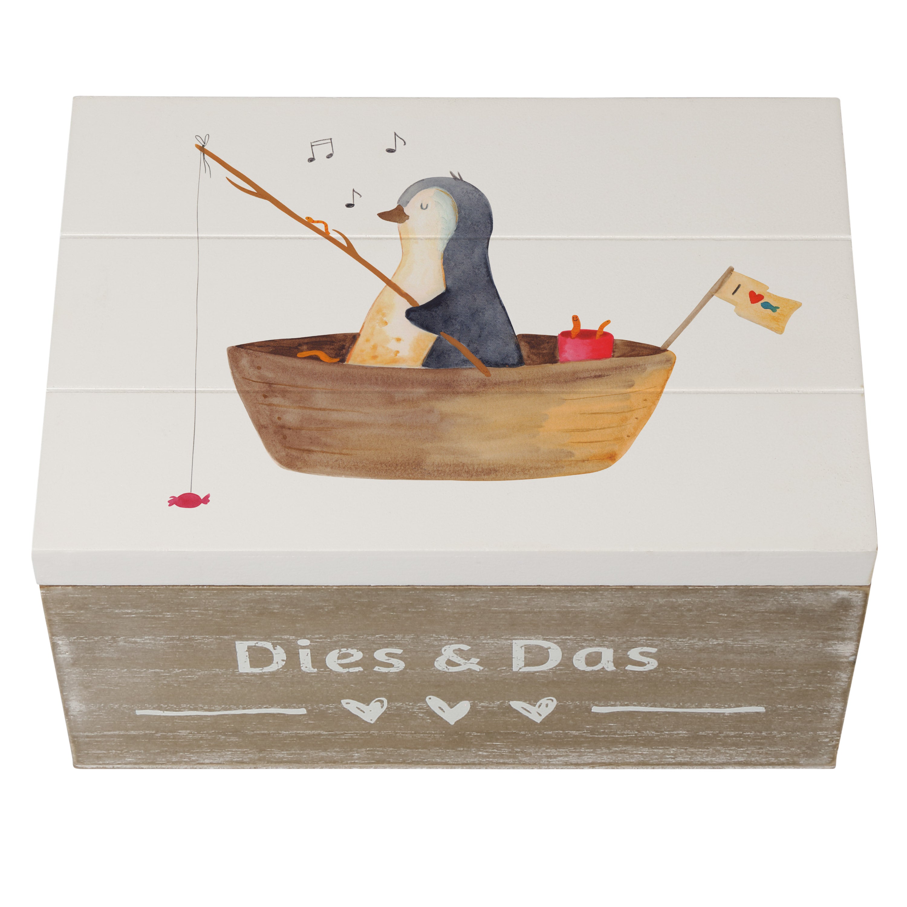Holzkiste Pinguin Angelboot - 25 x 18 cm - mit Spruch - Weiß