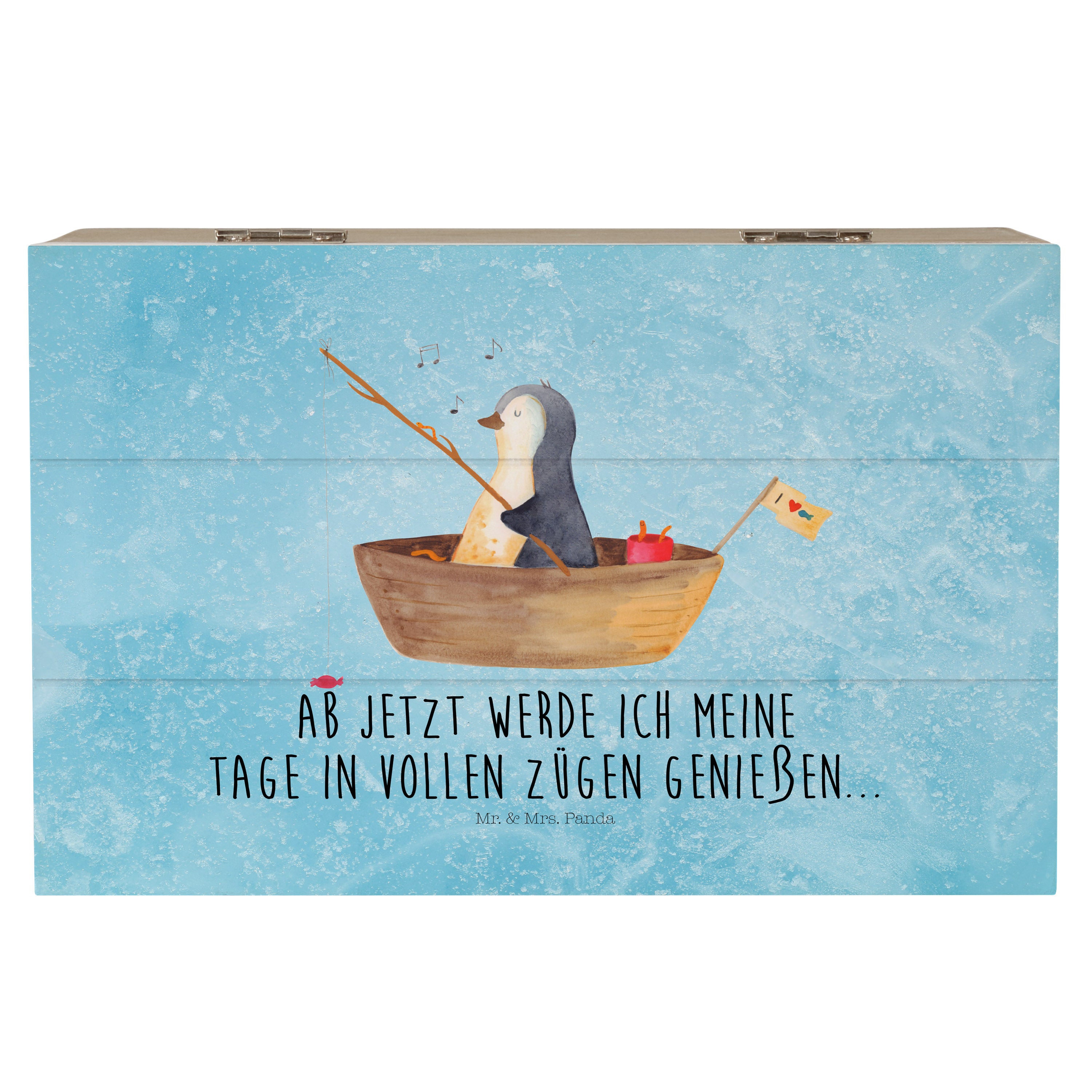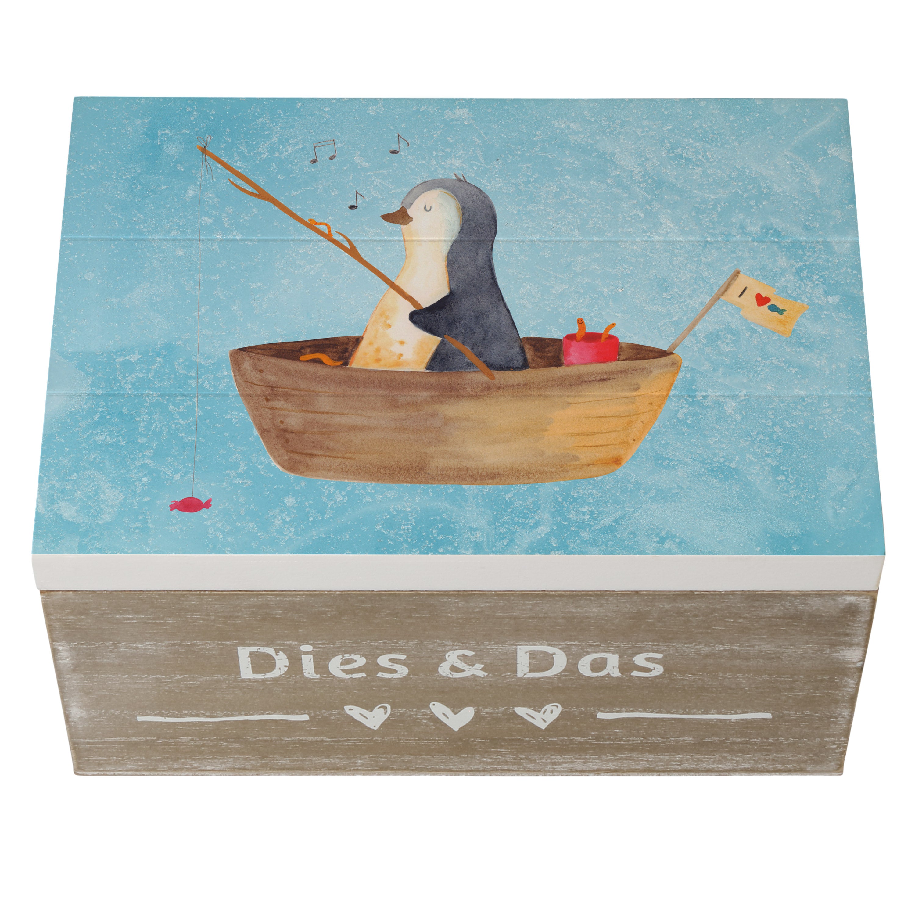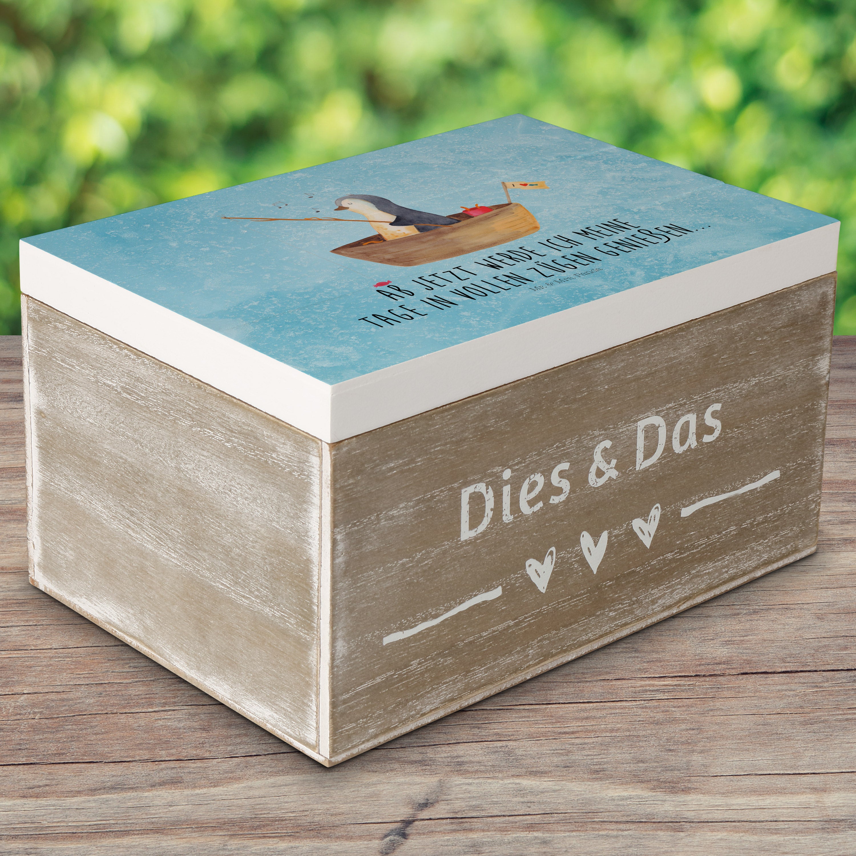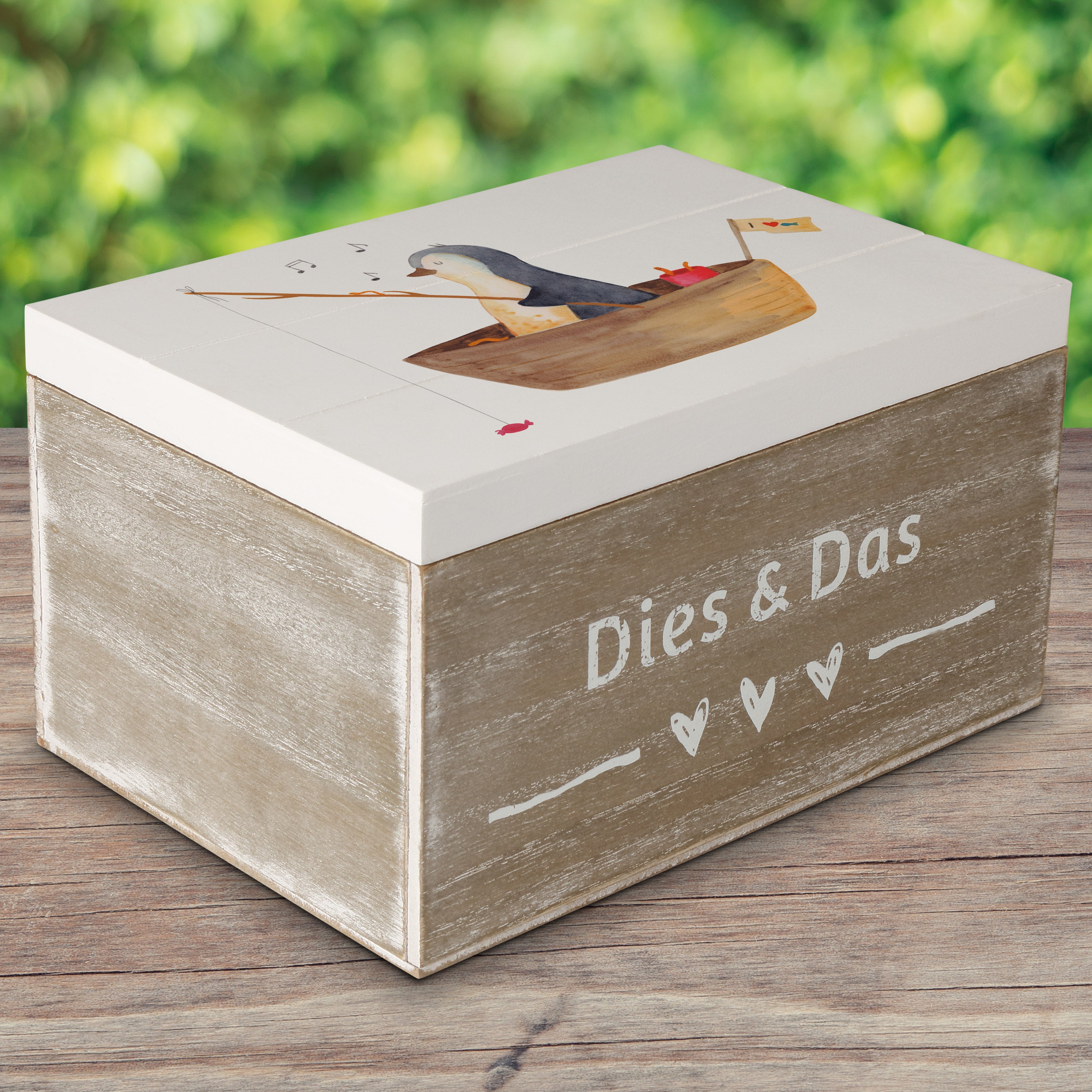 Holzkiste Pinguin Angelboot - 25 x 18 cm - mit Spruch - Weiß