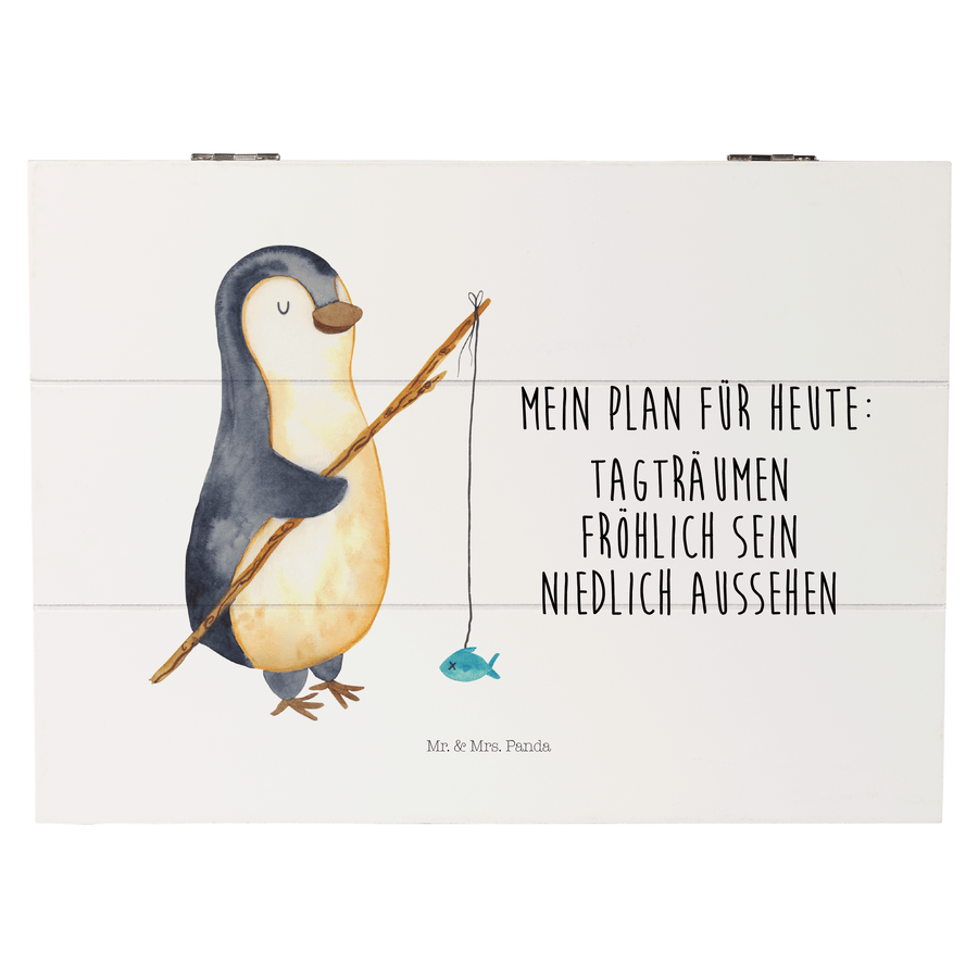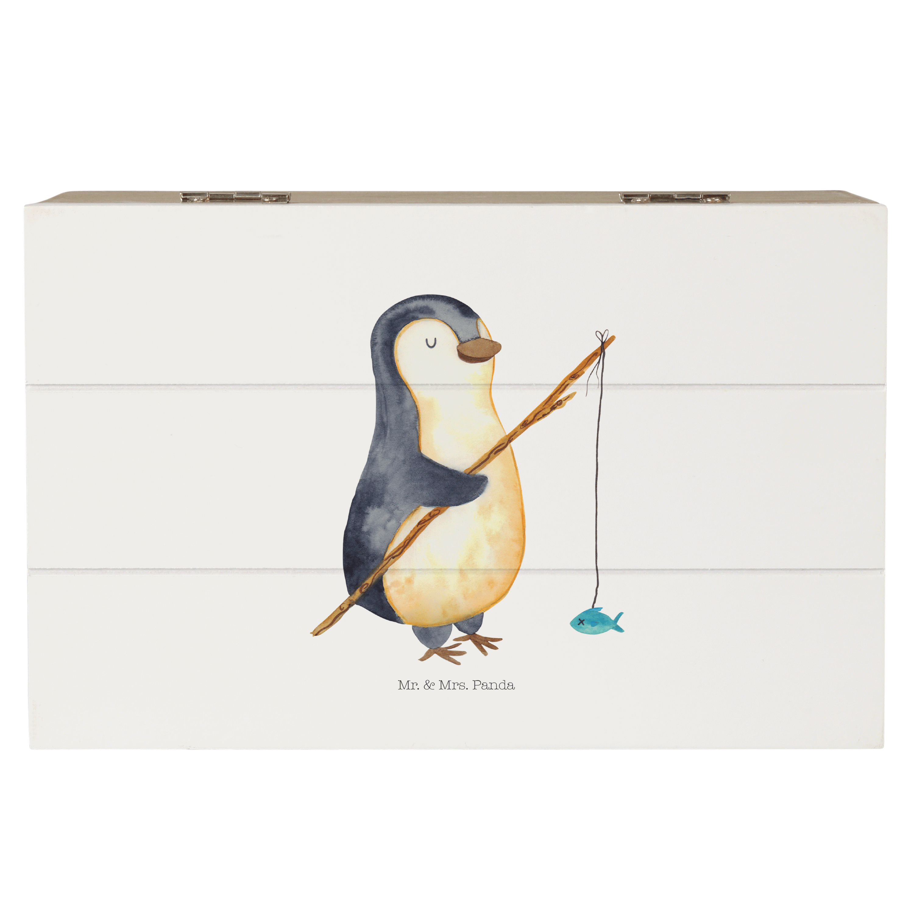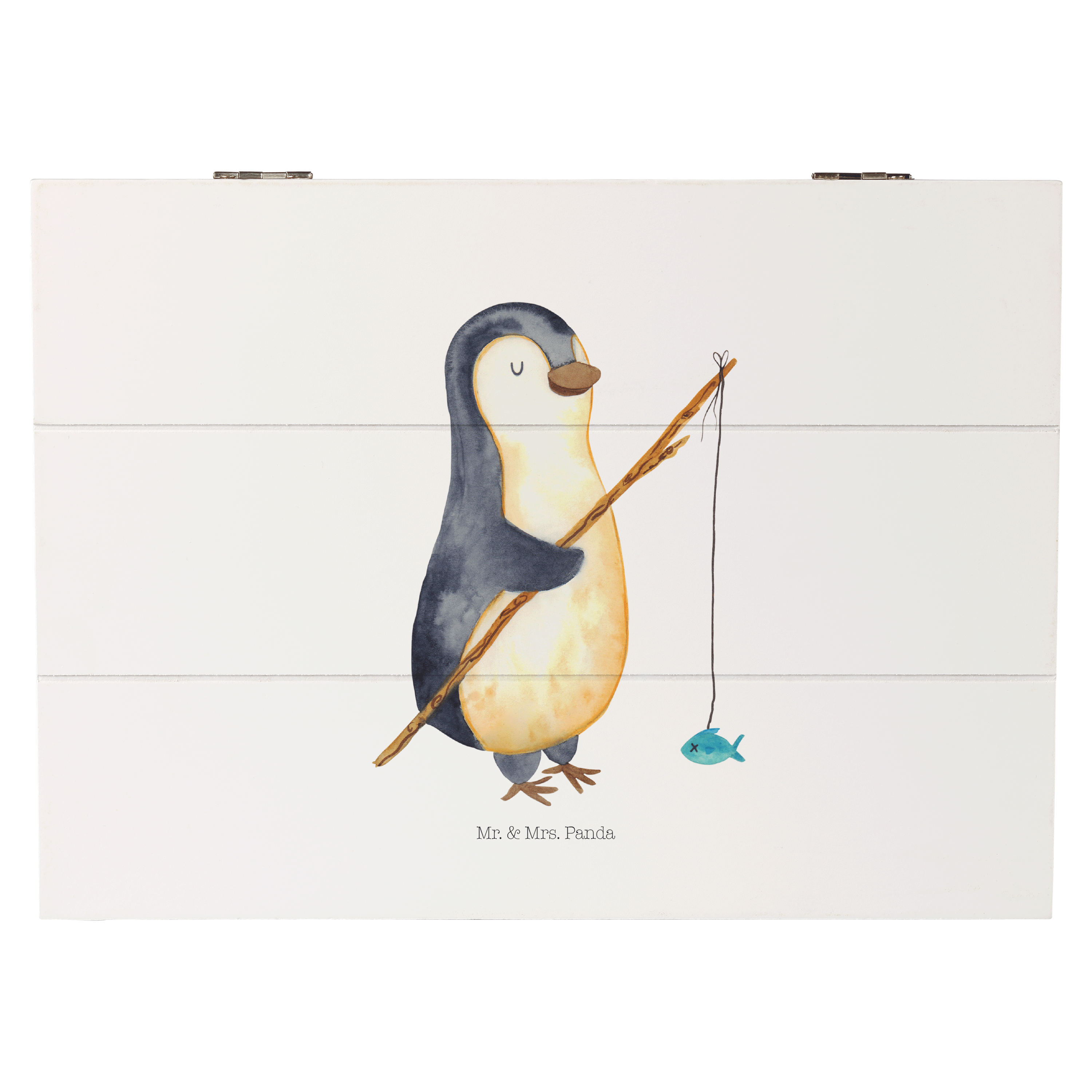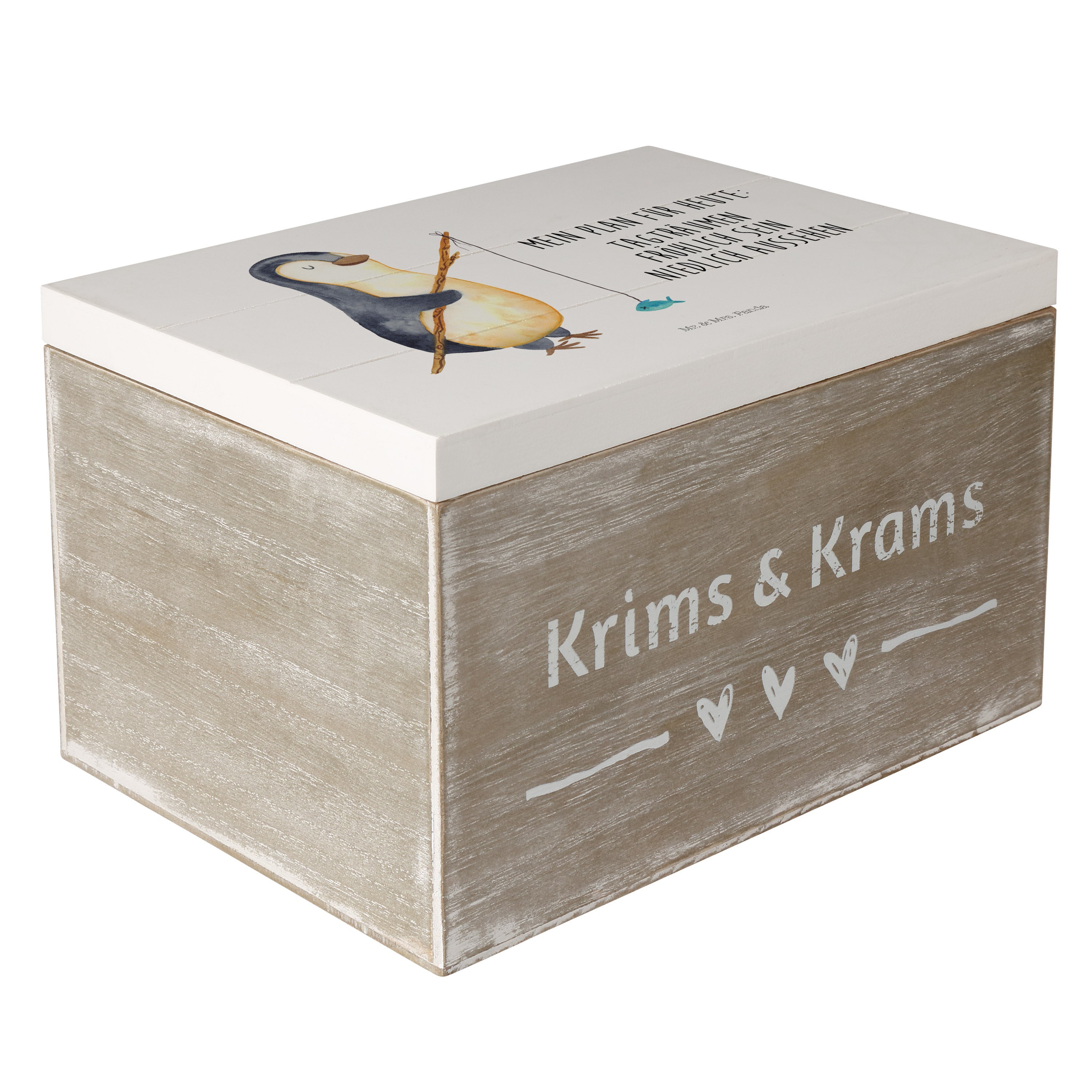 Holzkiste Pinguin Angler - 25 x 18 cm - mit Spruch - Weiß