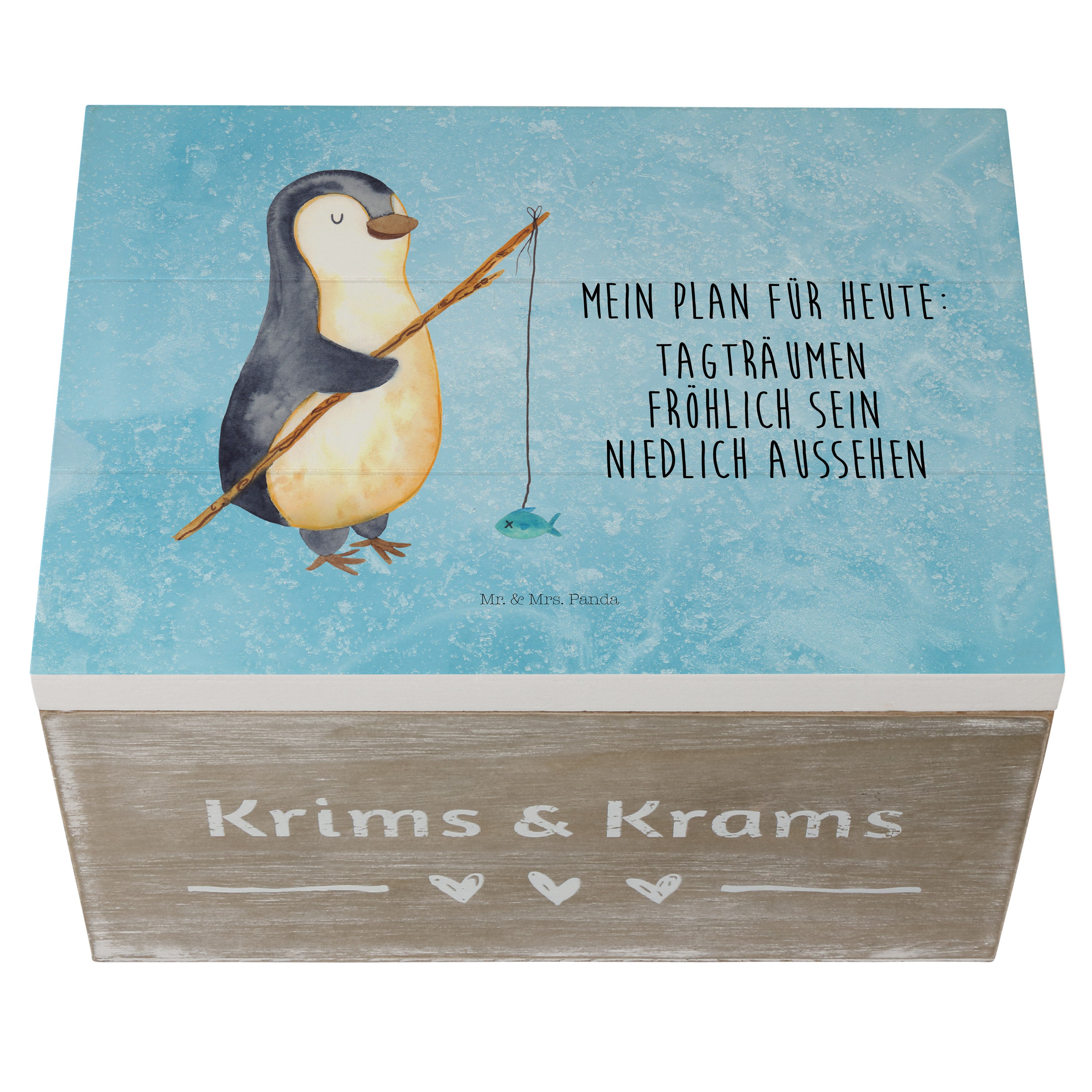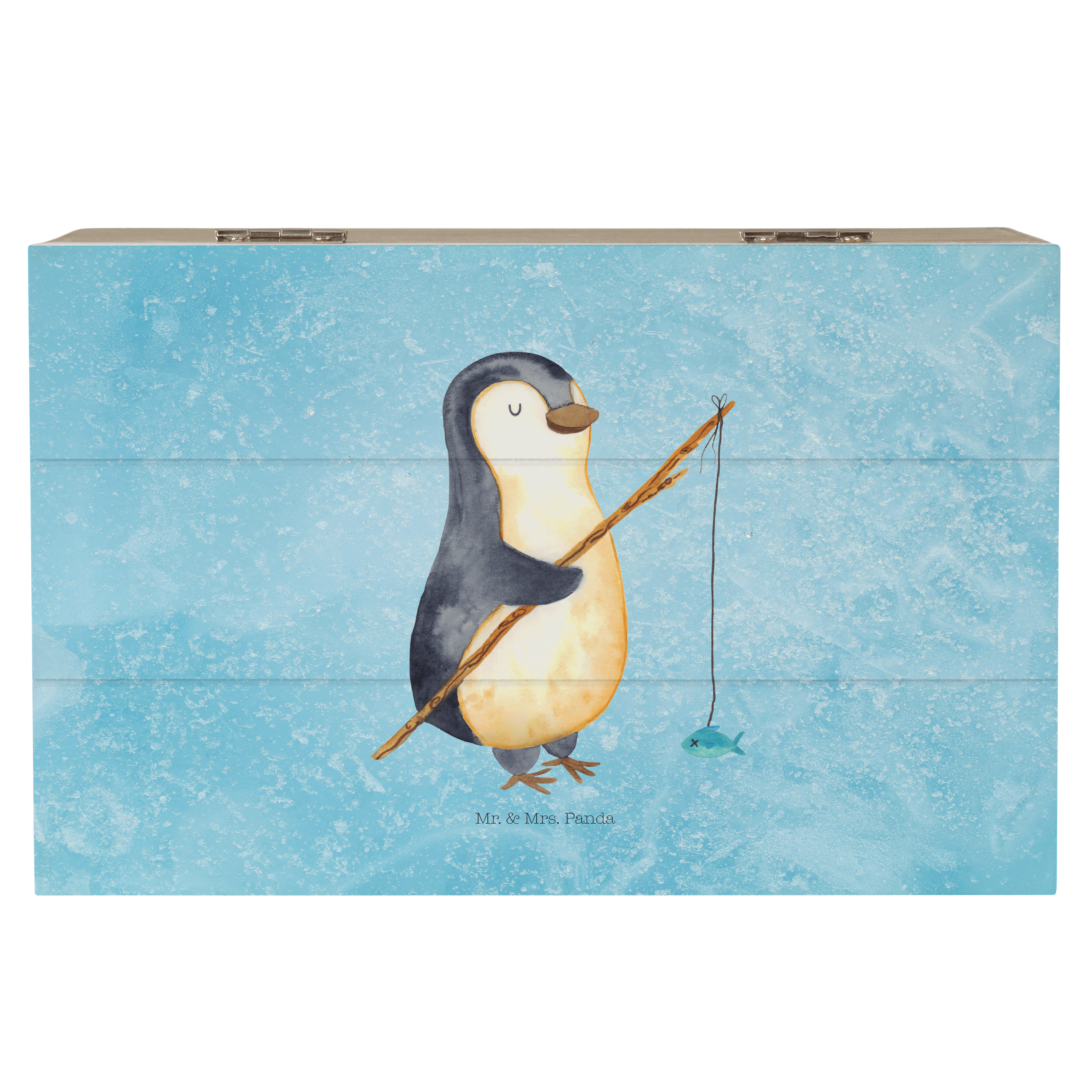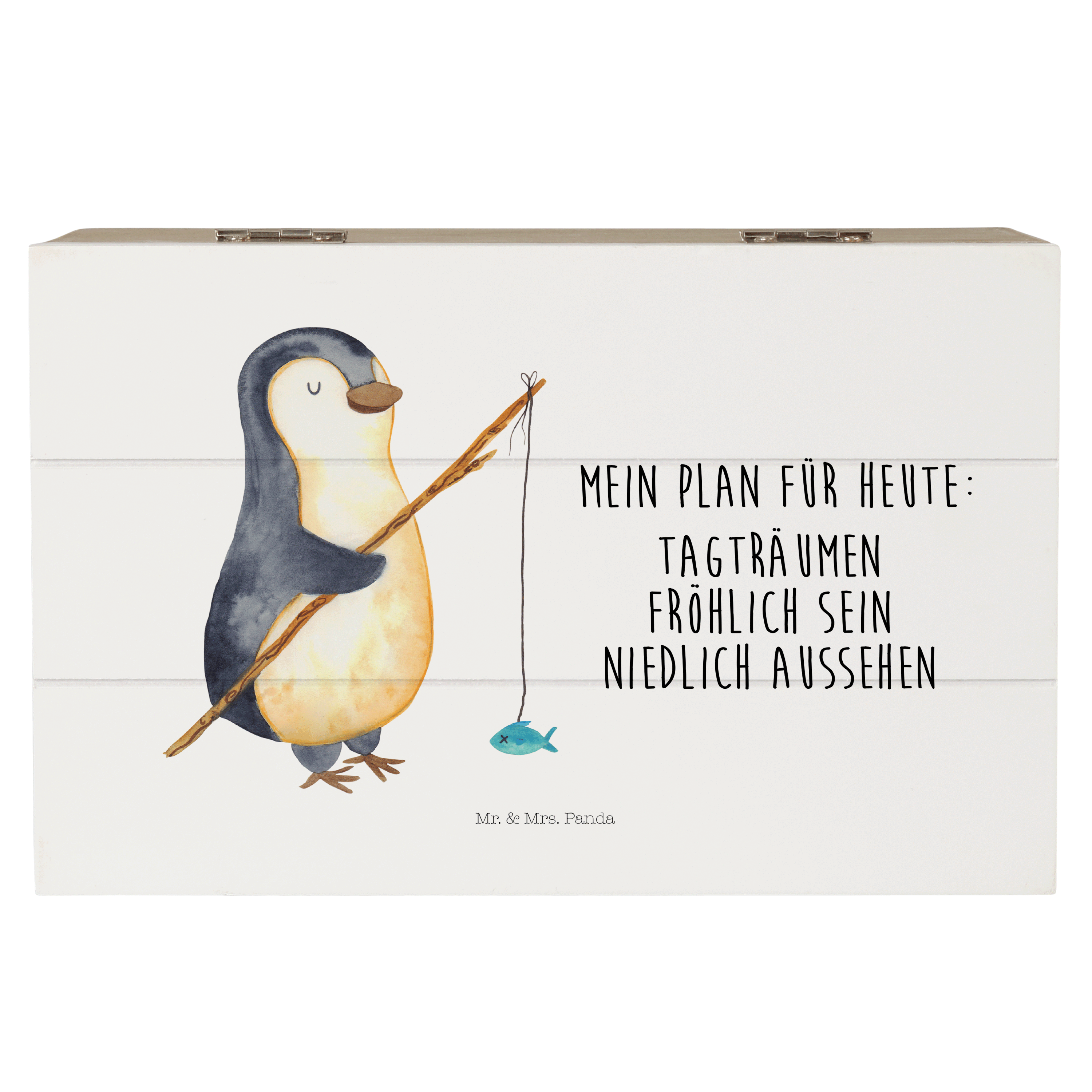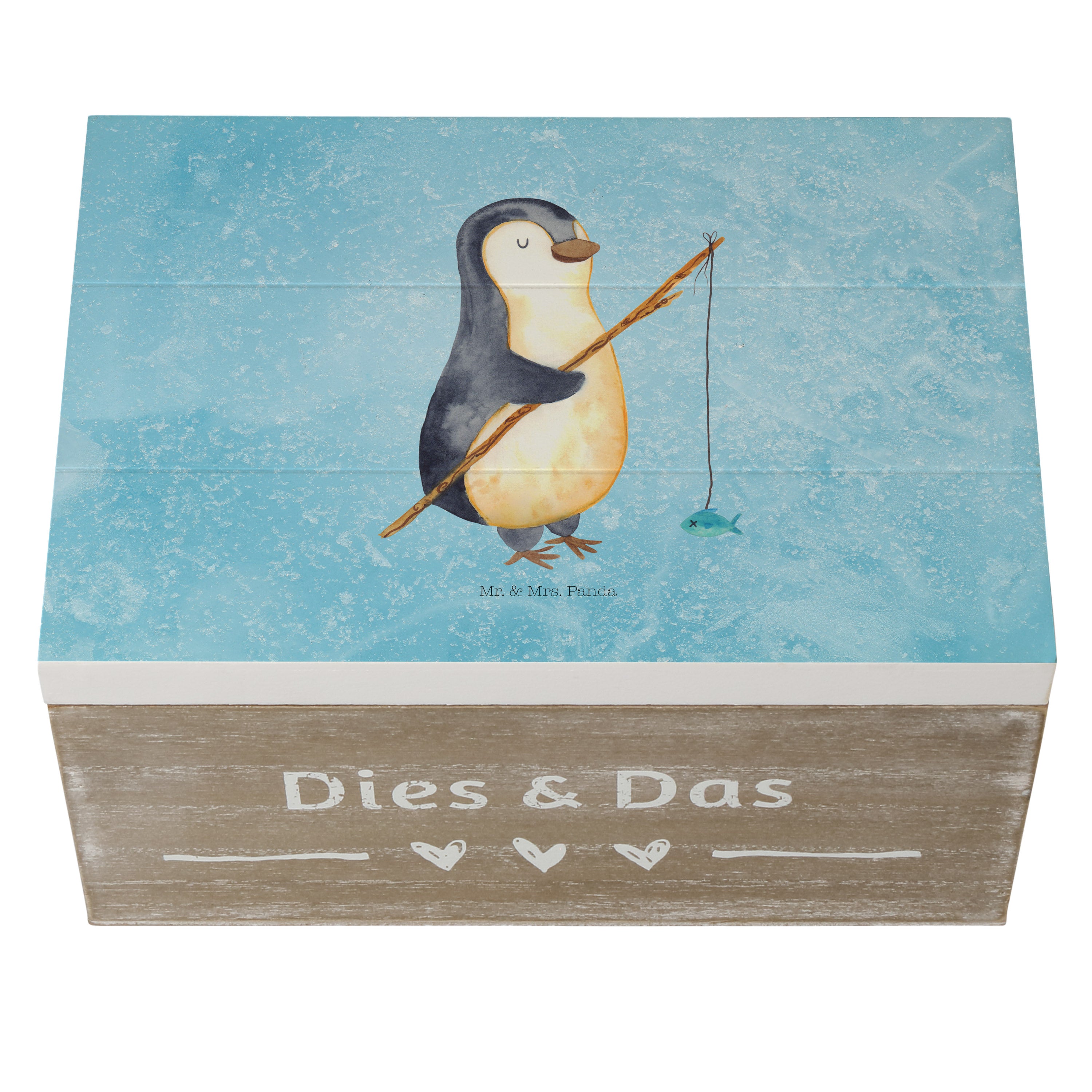 Holzkiste Pinguin Angler - 25 x 18 cm - mit Spruch - Weiß