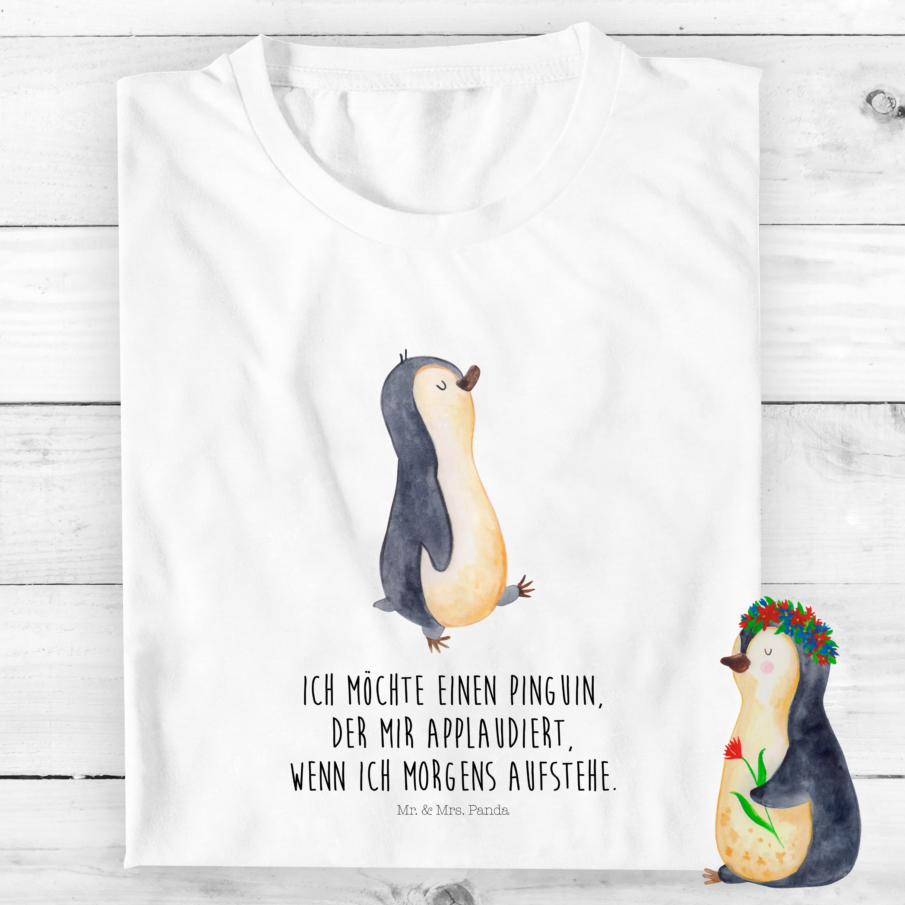 Begrüße den neuen Tag mit unserem Pinguin marschierend an deiner Seite. Der entzückende Pinguin hat eine ganz besondere Ausstrahlung und zieht damit alle Blicke auf sich. Er wirkt verspielt und ein wenig tollpatschig, was ihn unglaublich charmant macht. Das von Mr. & Mrs. Panda gezeichnete Motiv wird garantiert zum Highlight auf deinem Frühstücks-Teller oder deinem Lieblings-Shirt. Entdecke unsere tolle Auswahl an Produkten und erlebe selbst, wie zauberhaft dieser Pinguin ist!