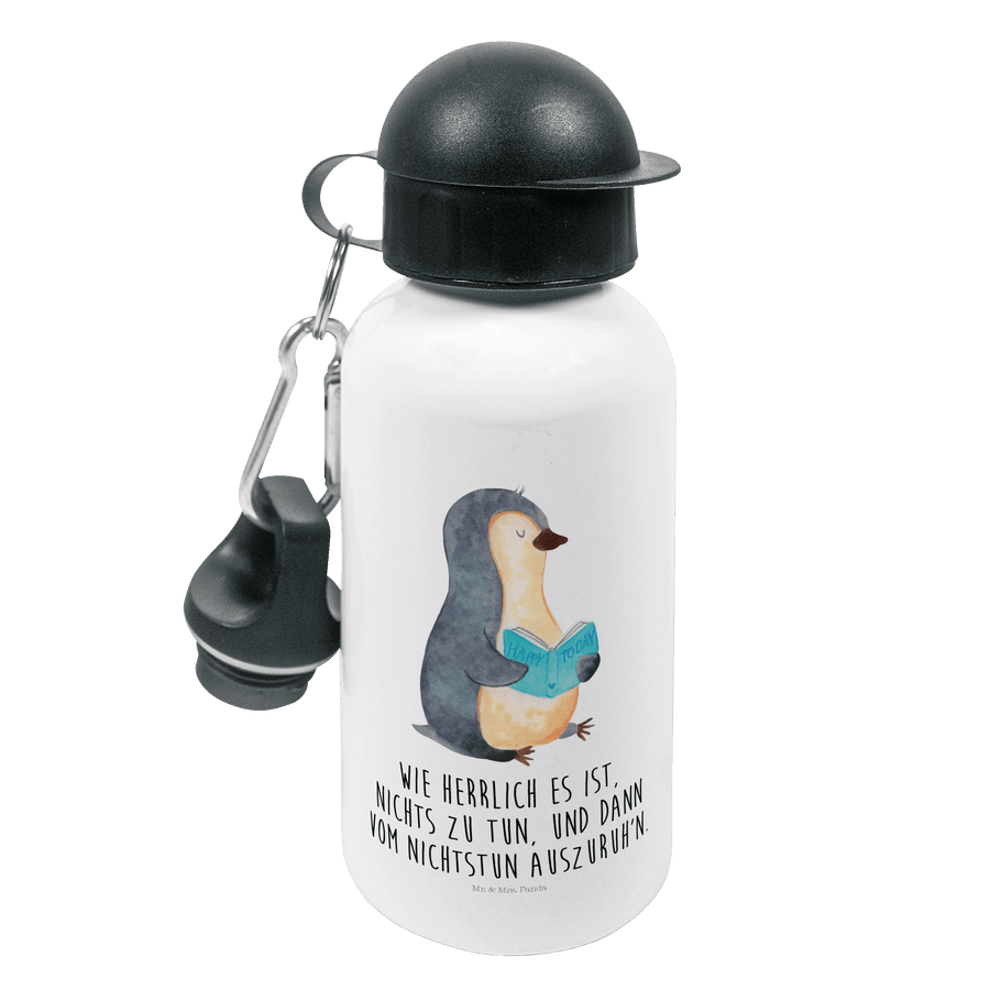 Kindertrinkflasche Pinguin Buch - mit Spruch