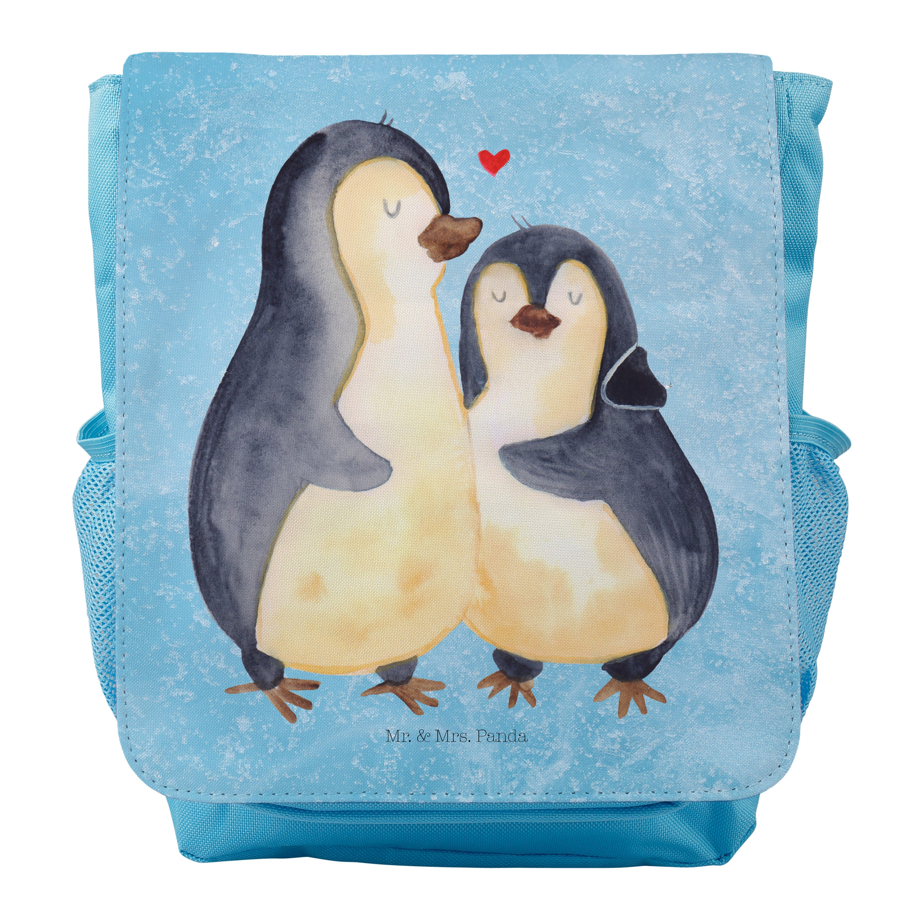 Kinderrucksack Pinguin umarmend - Eisblau - mit Spruch