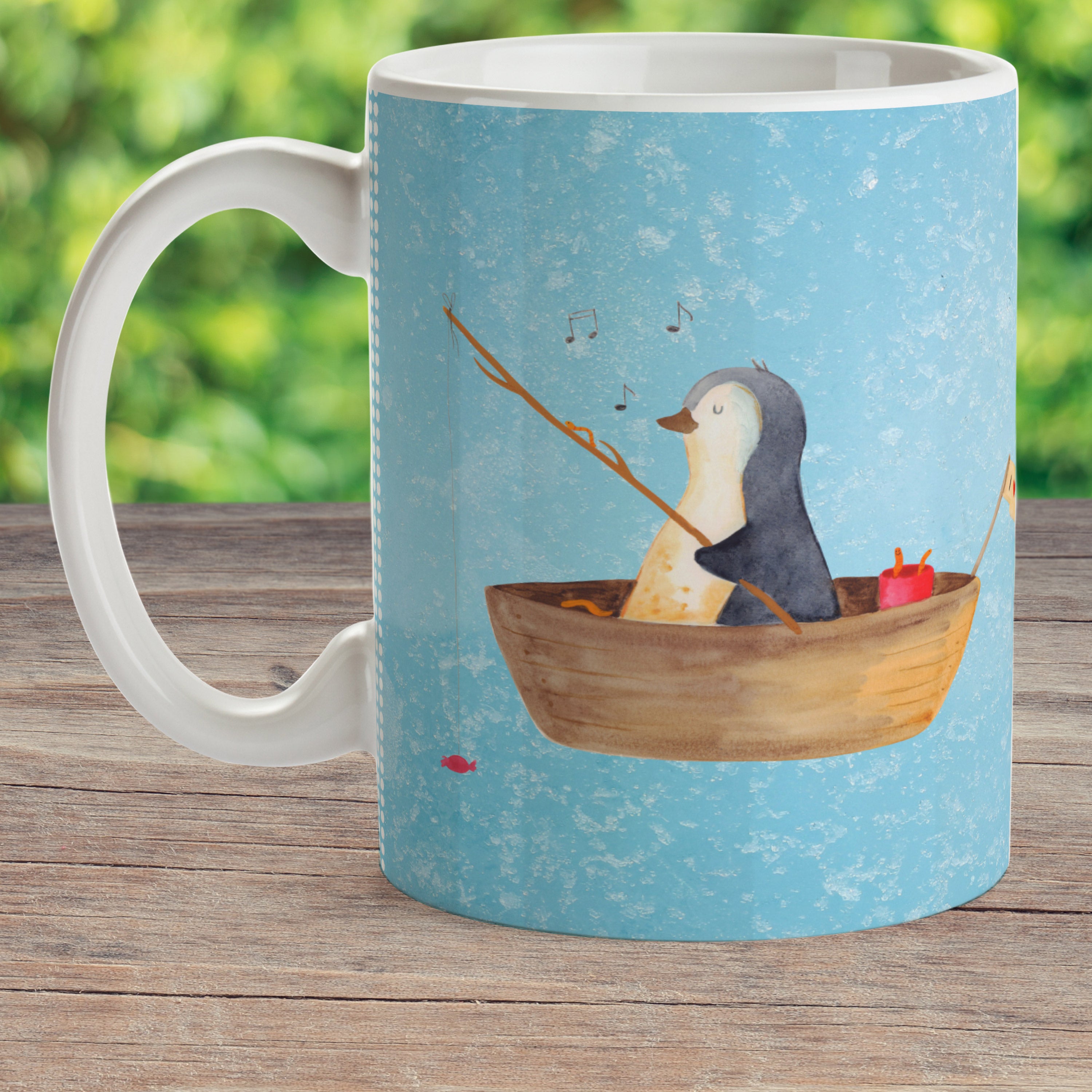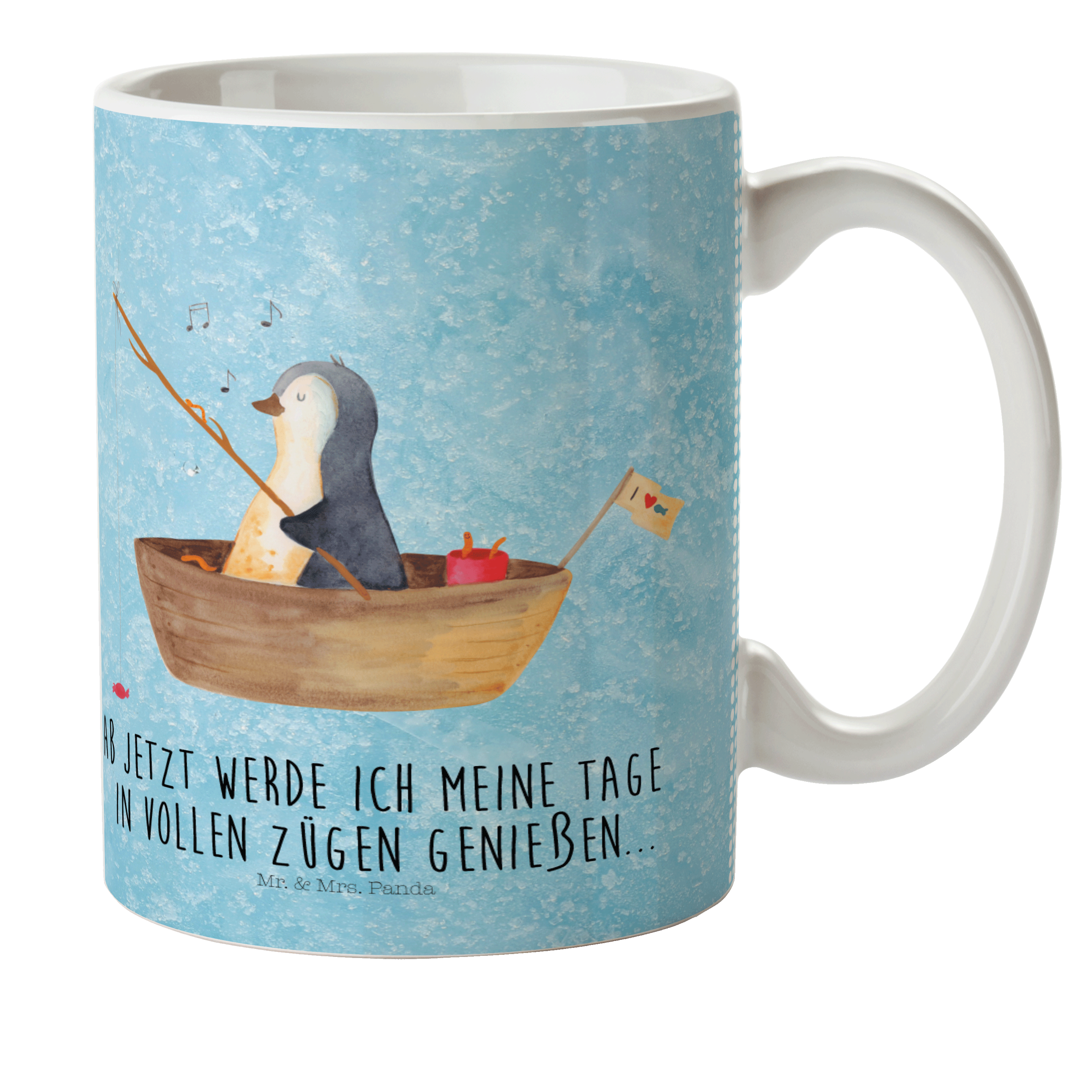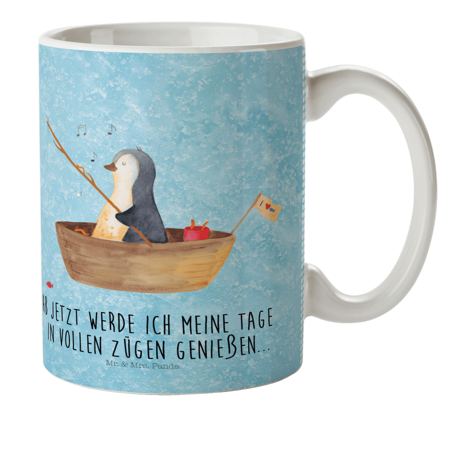 Kindertasse Pinguin Angelboot - mit Spruch - Eisblau