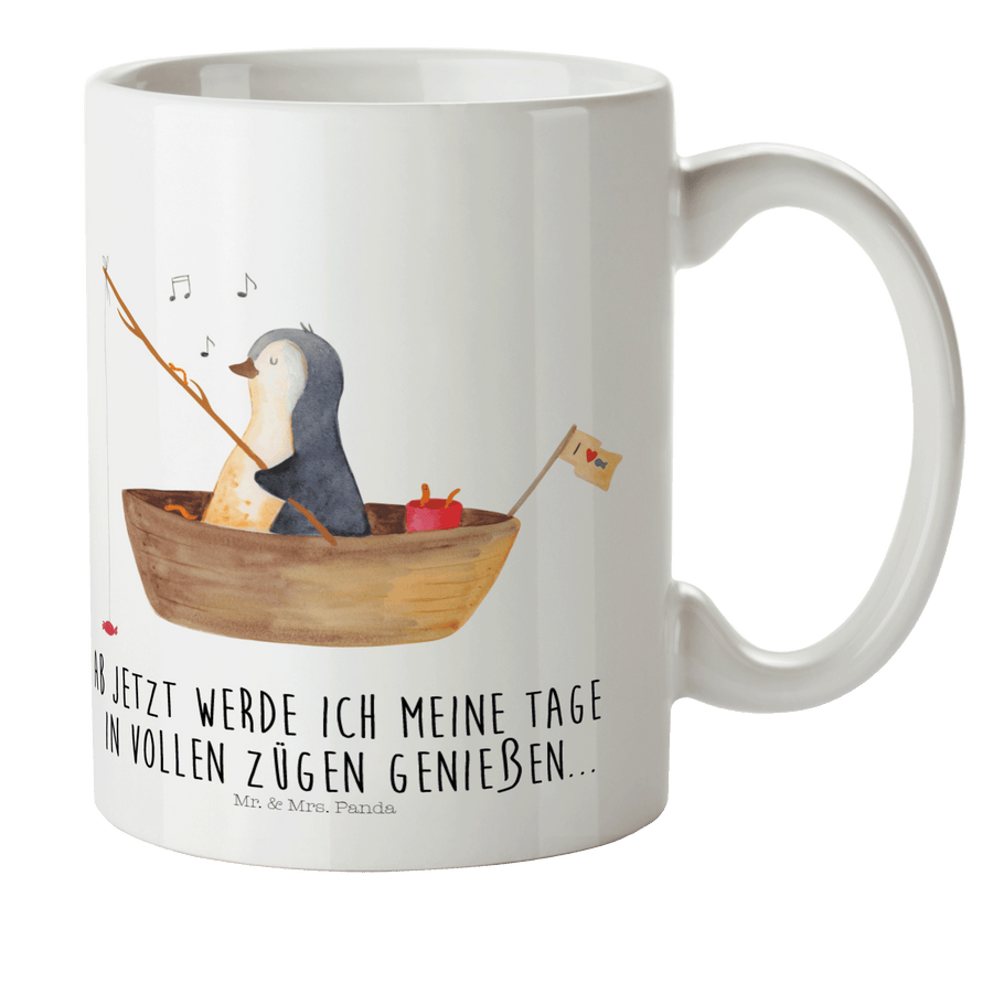 Kindertasse Pinguin Angelboot - mit Spruch - Weiß