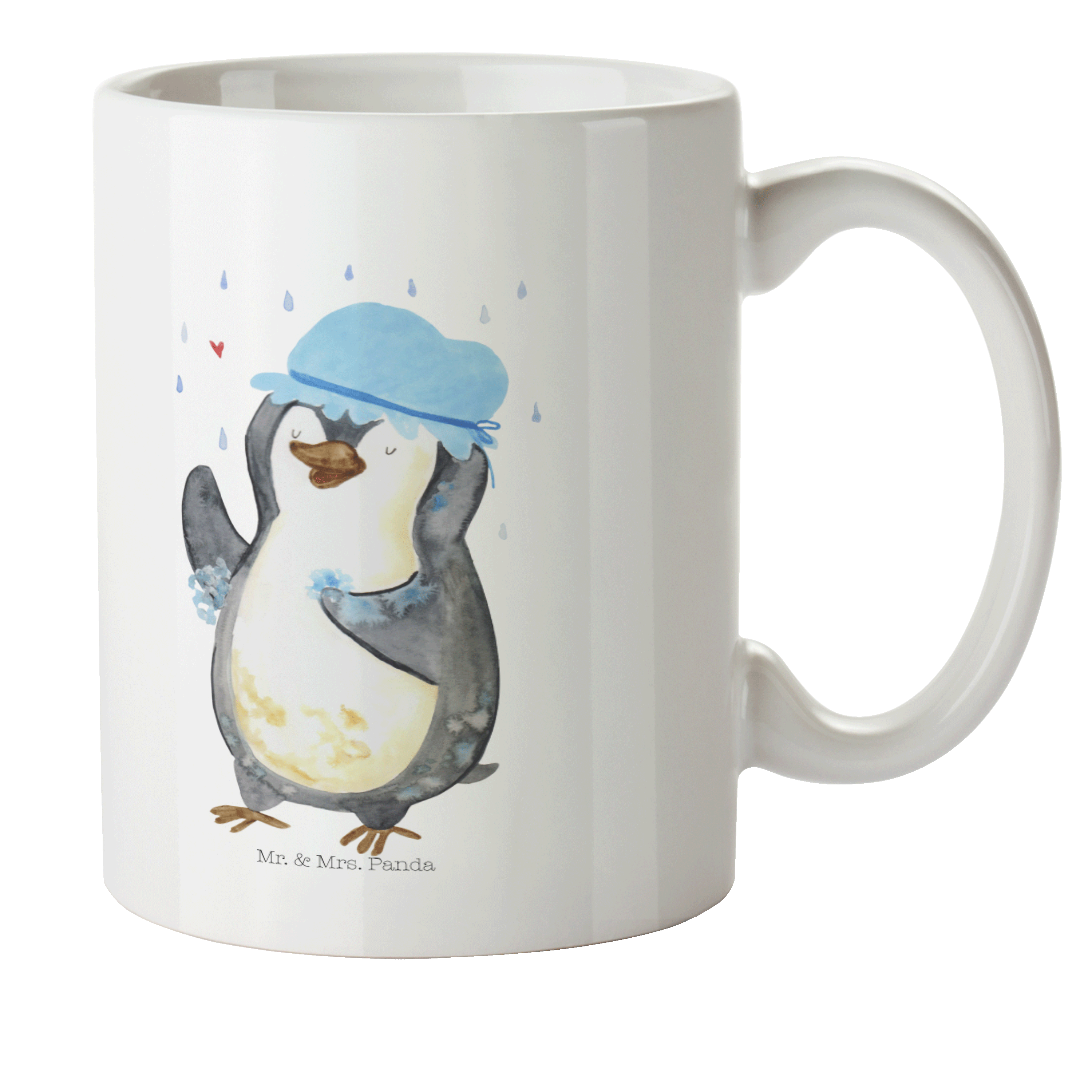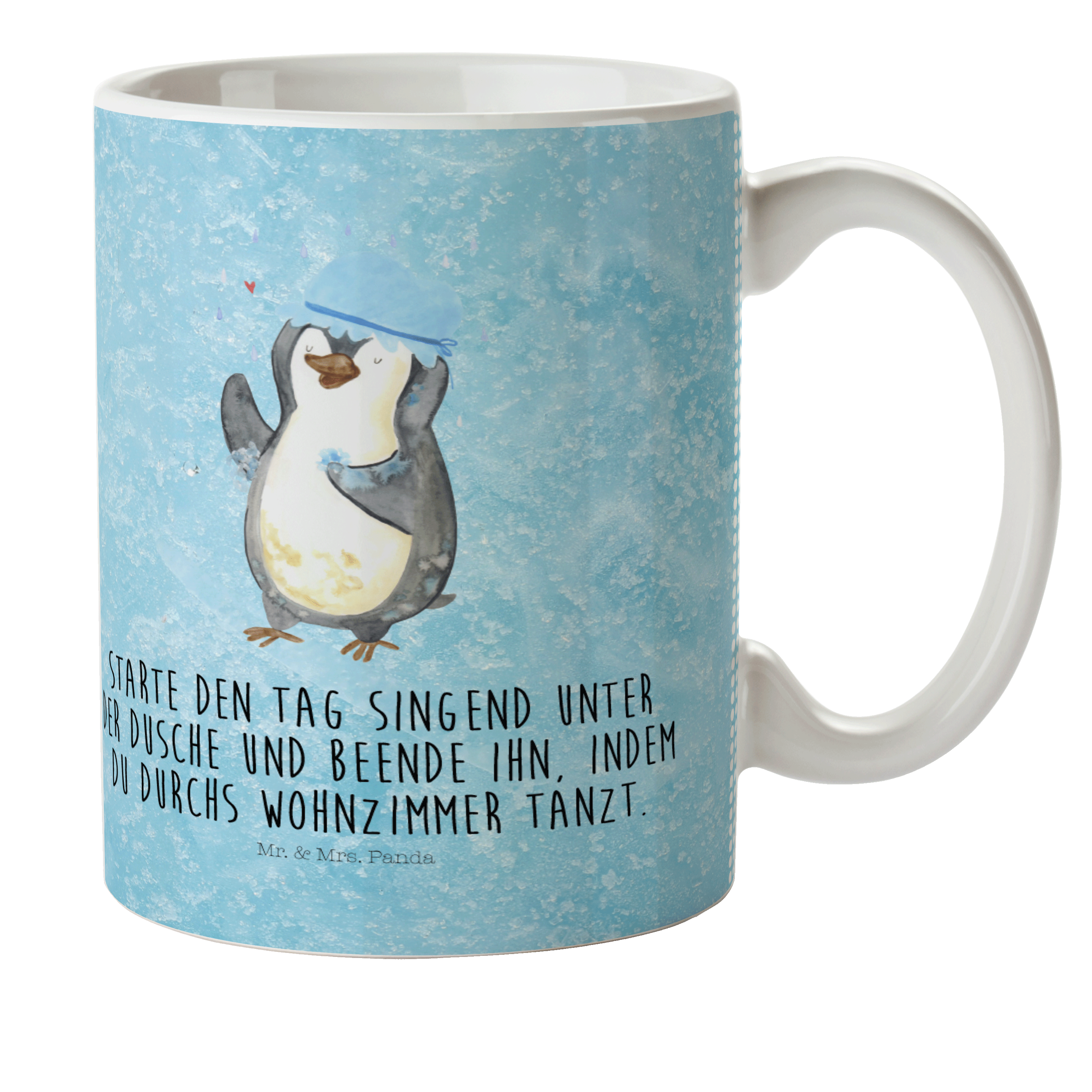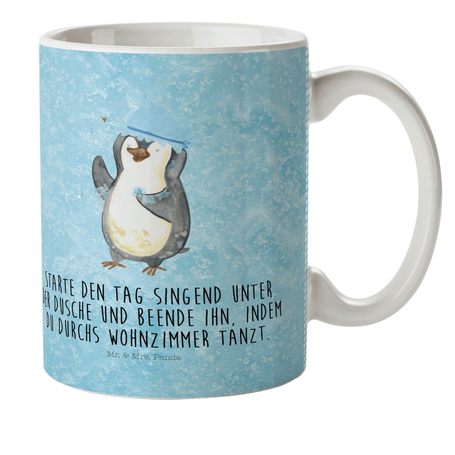 Kindertasse Pinguin duscht - mit Spruch - Eisblau