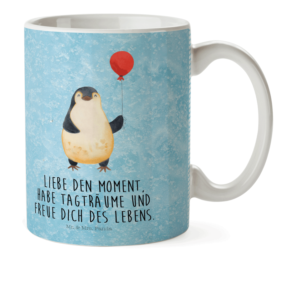 Kindertasse Pinguin Luftballon - mit Spruch - Eisblau