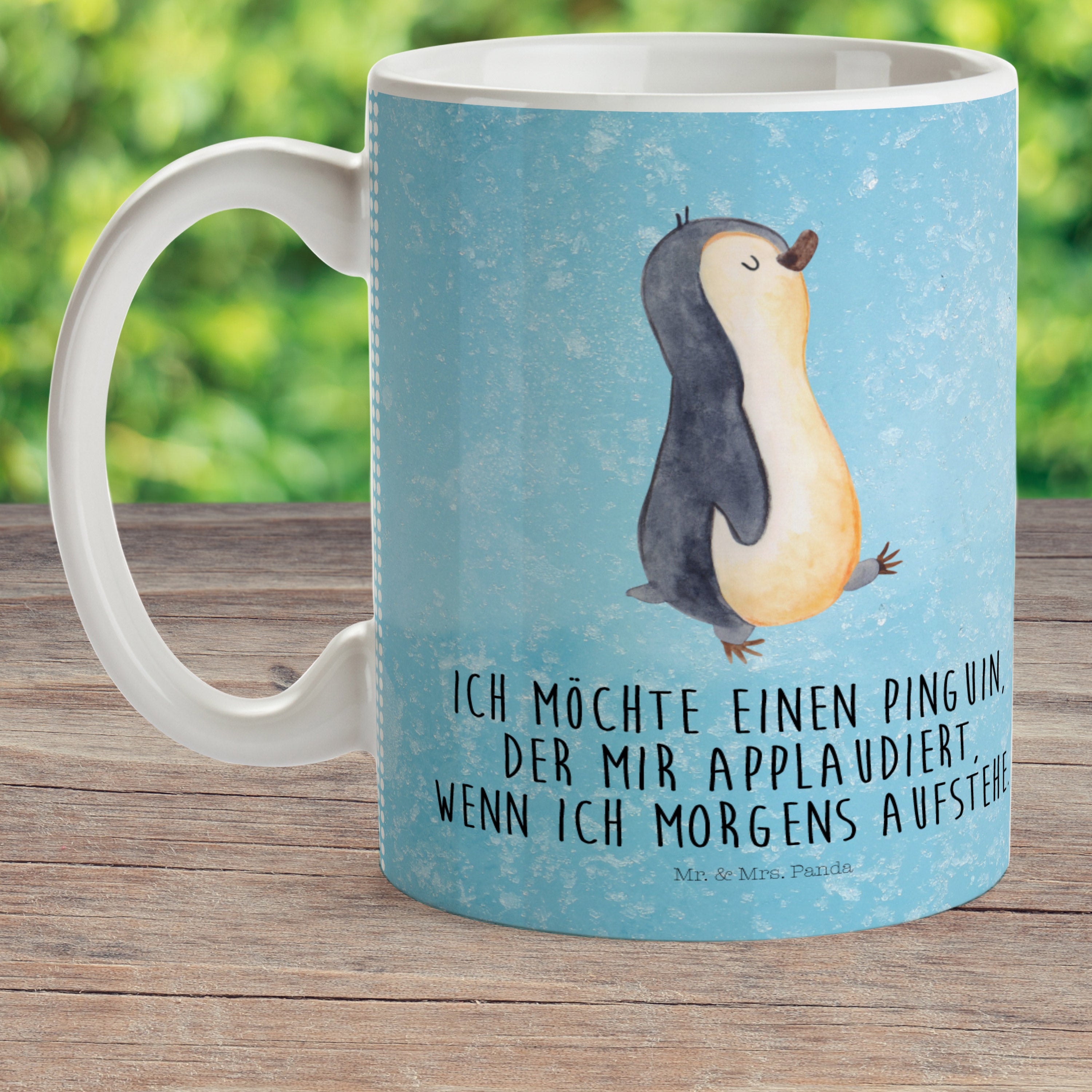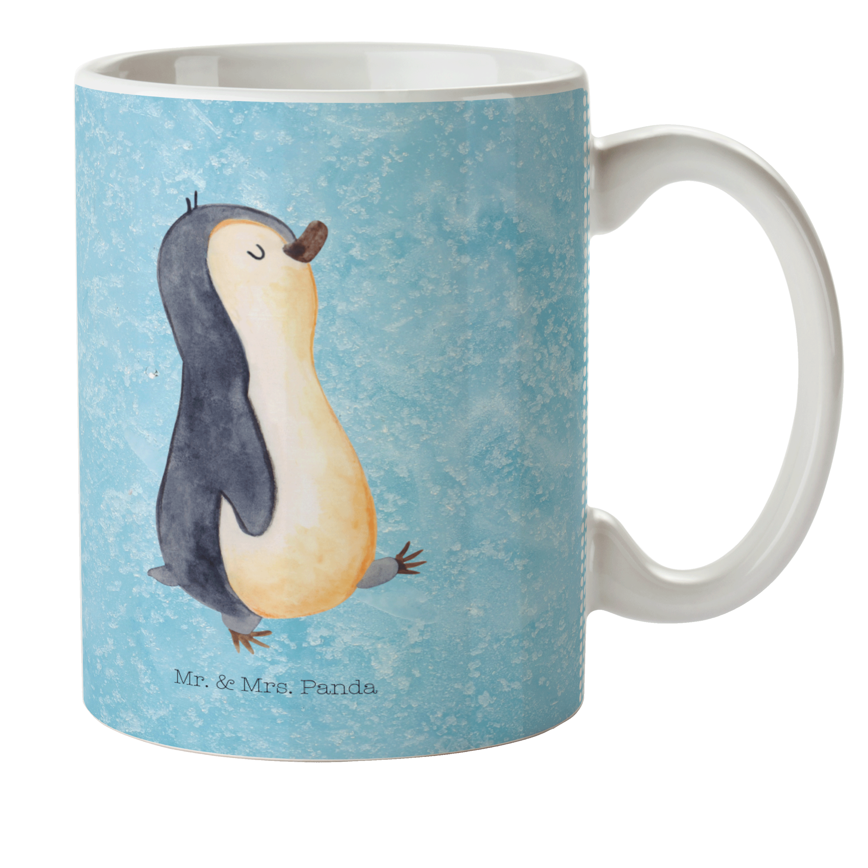 Kindertasse Pinguin marschierend - mit Spruch - Eisblau