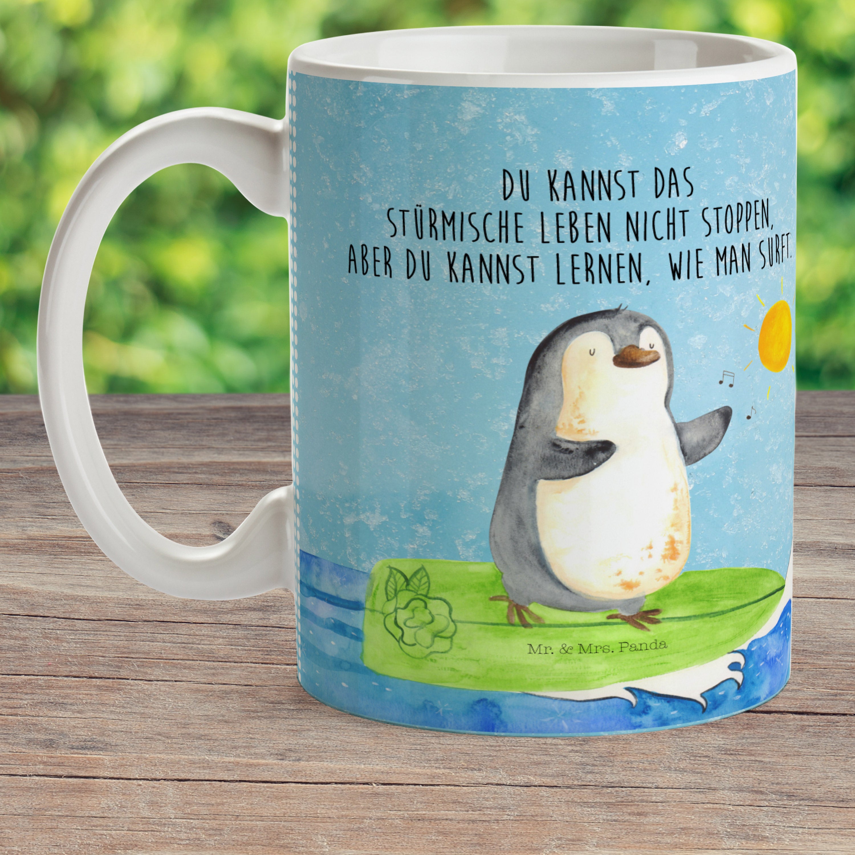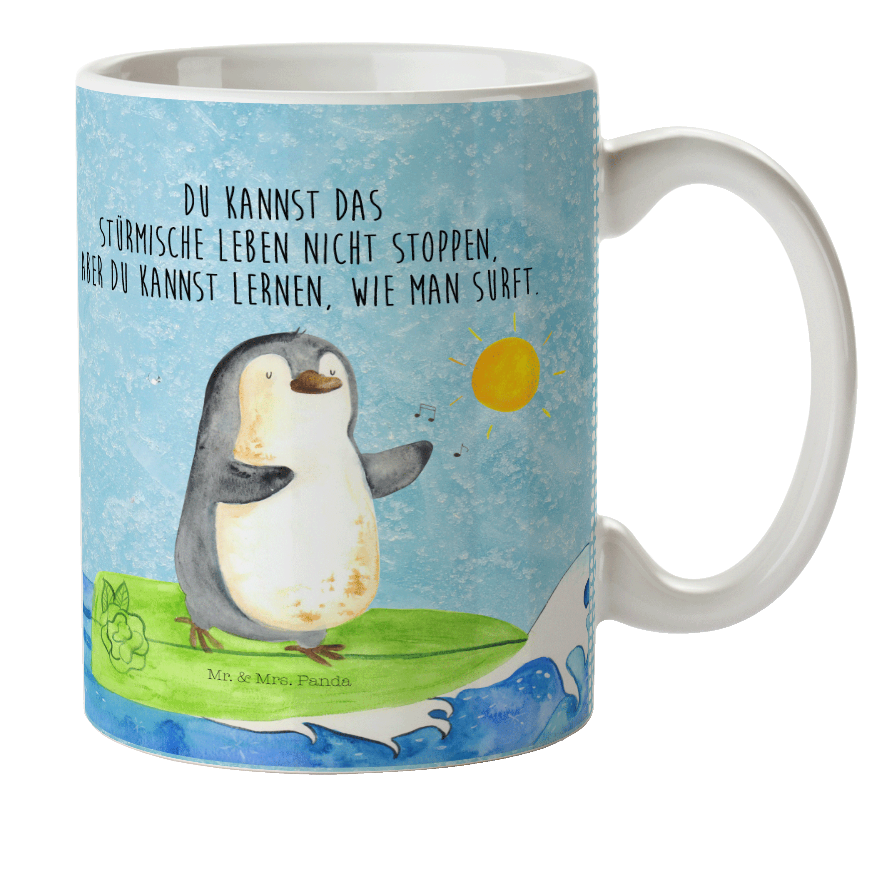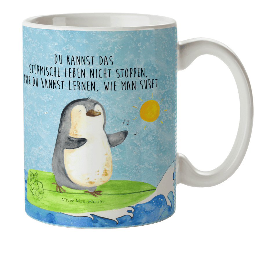 Kindertasse Pinguin Surfer - mit Spruch - Eisblau