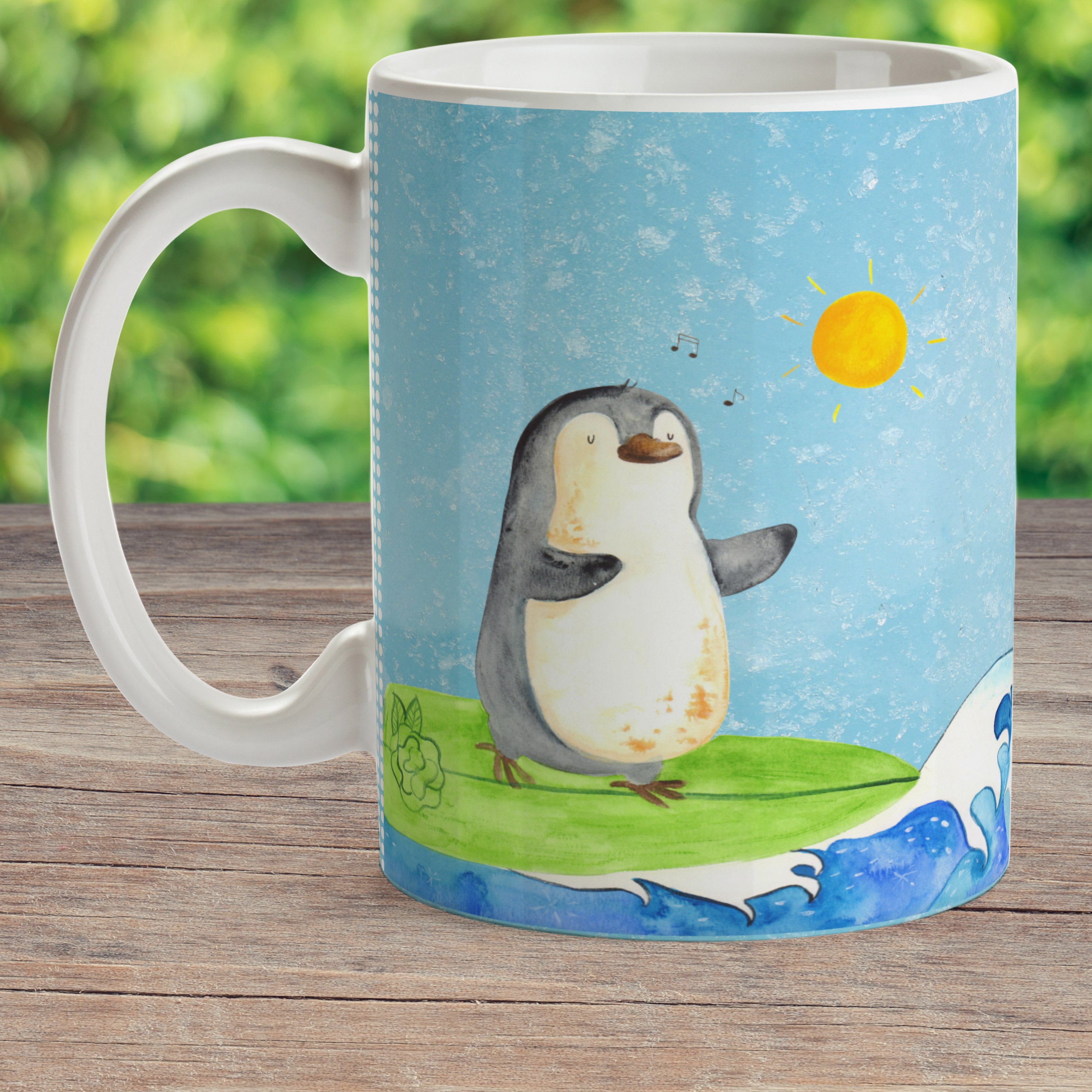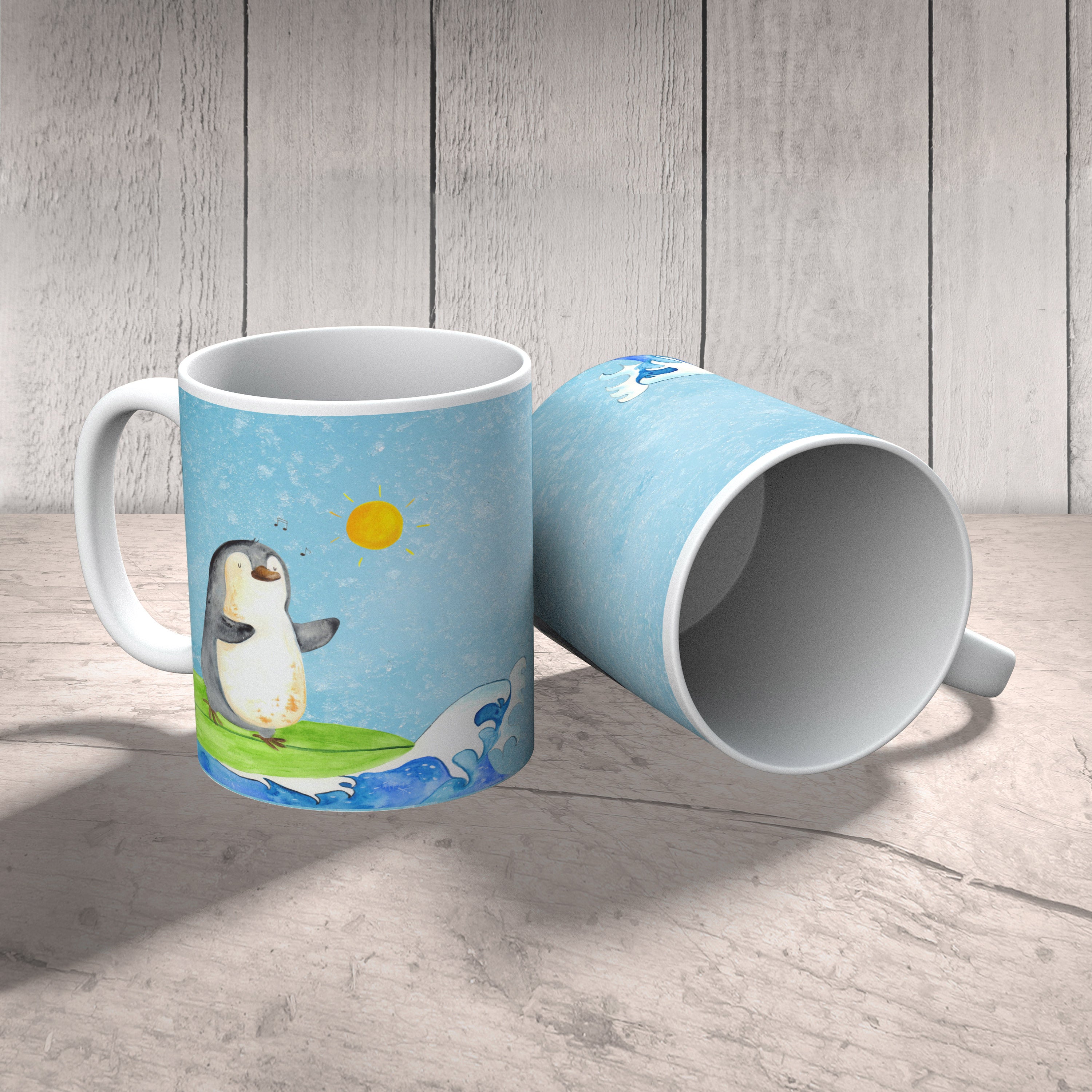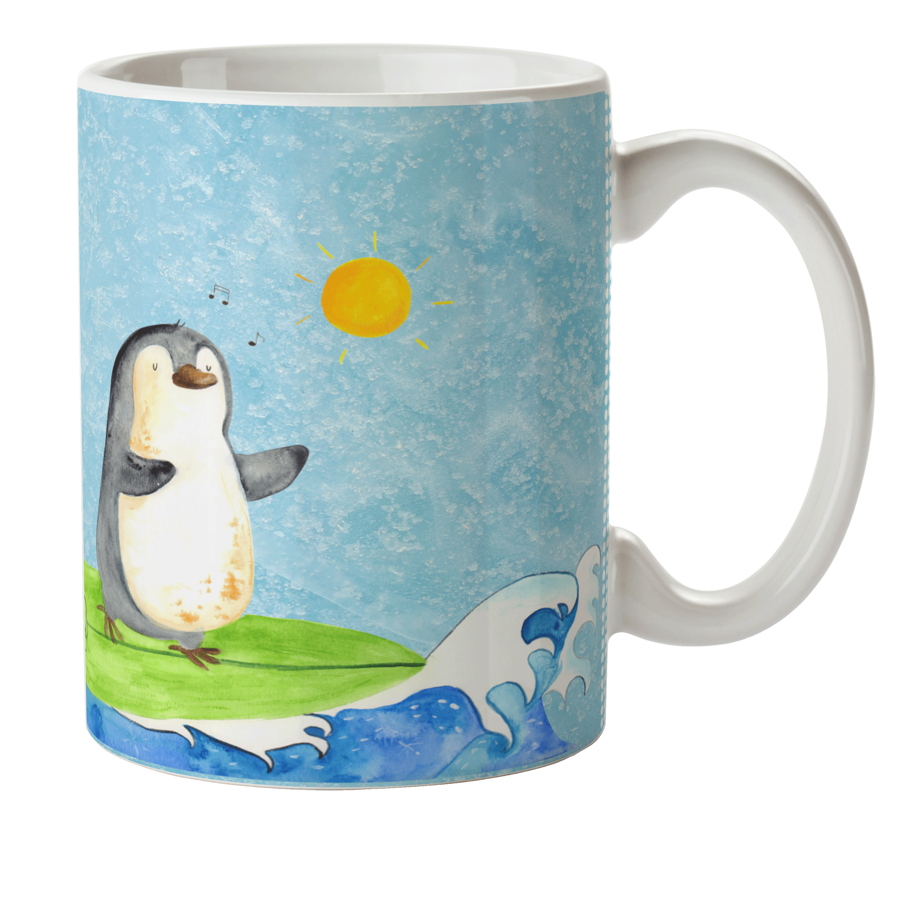 Kindertasse Pinguin Surfer - mit Spruch - Eisblau