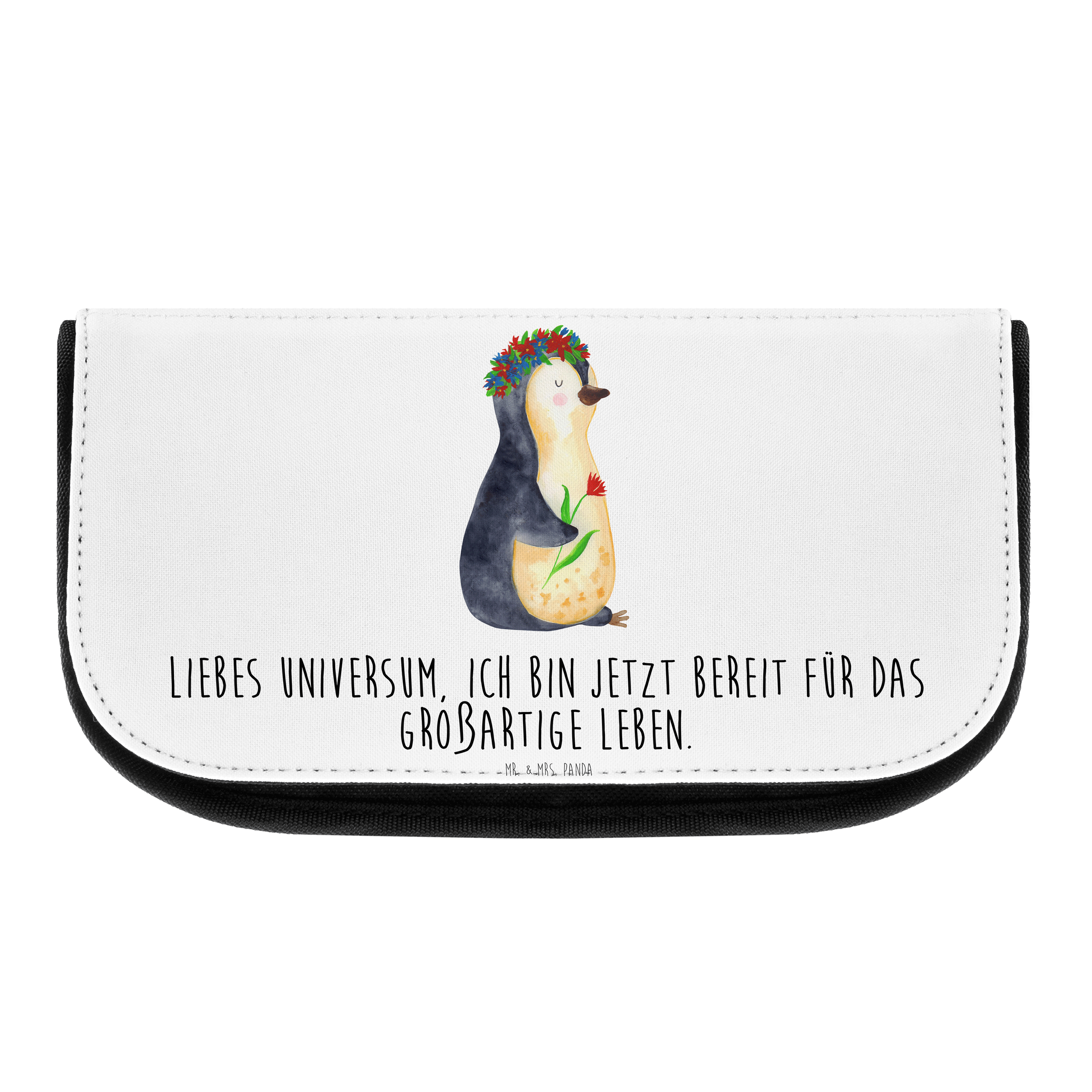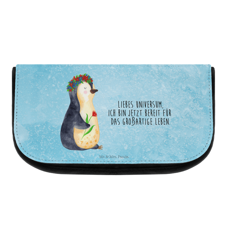 Kosmetiktasche Pinguin Blumenkranz - mit Spruch - Eisblau