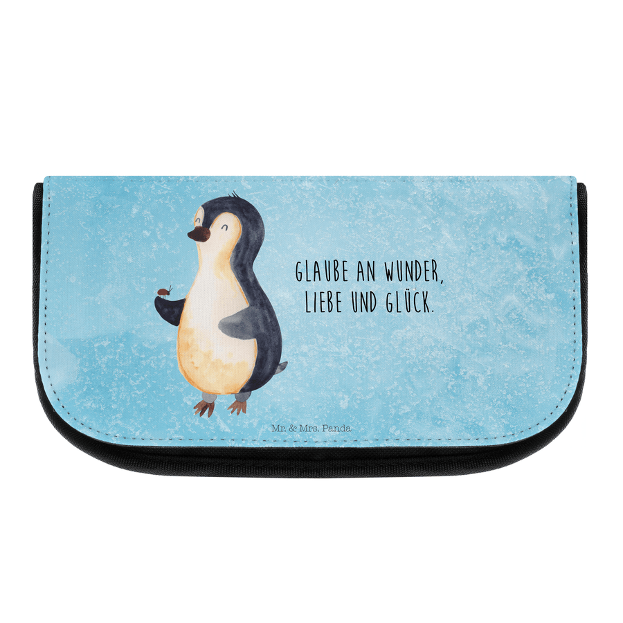 Kosmetiktasche Pinguin Marienkäfer - mit Spruch - Eisblau