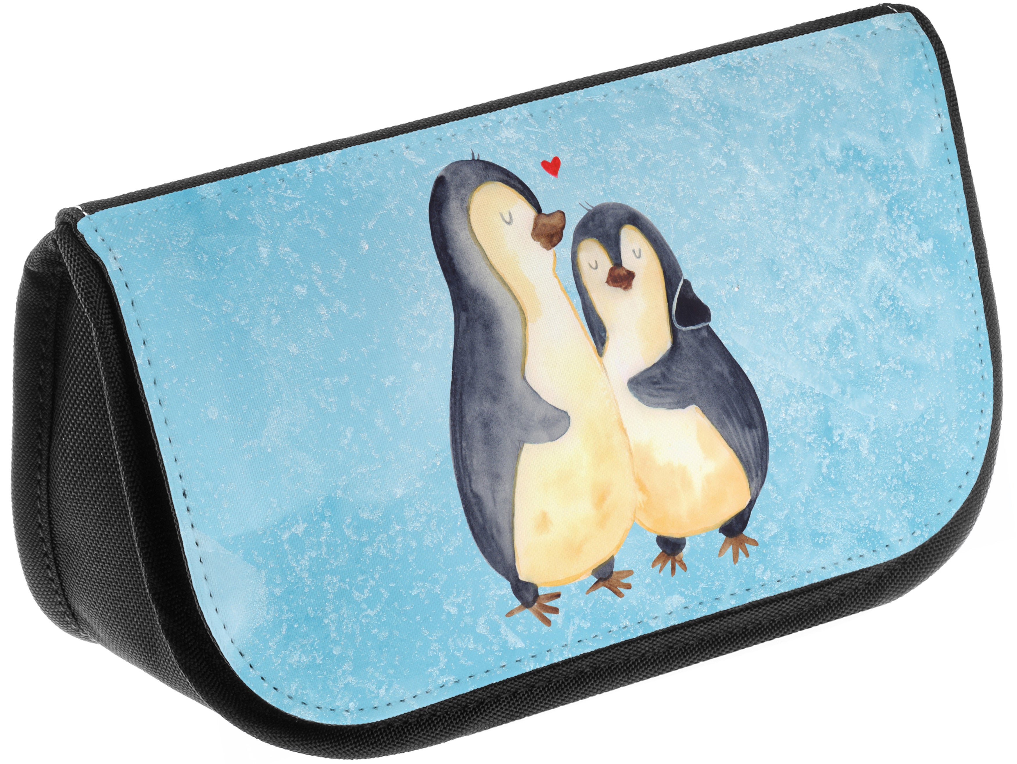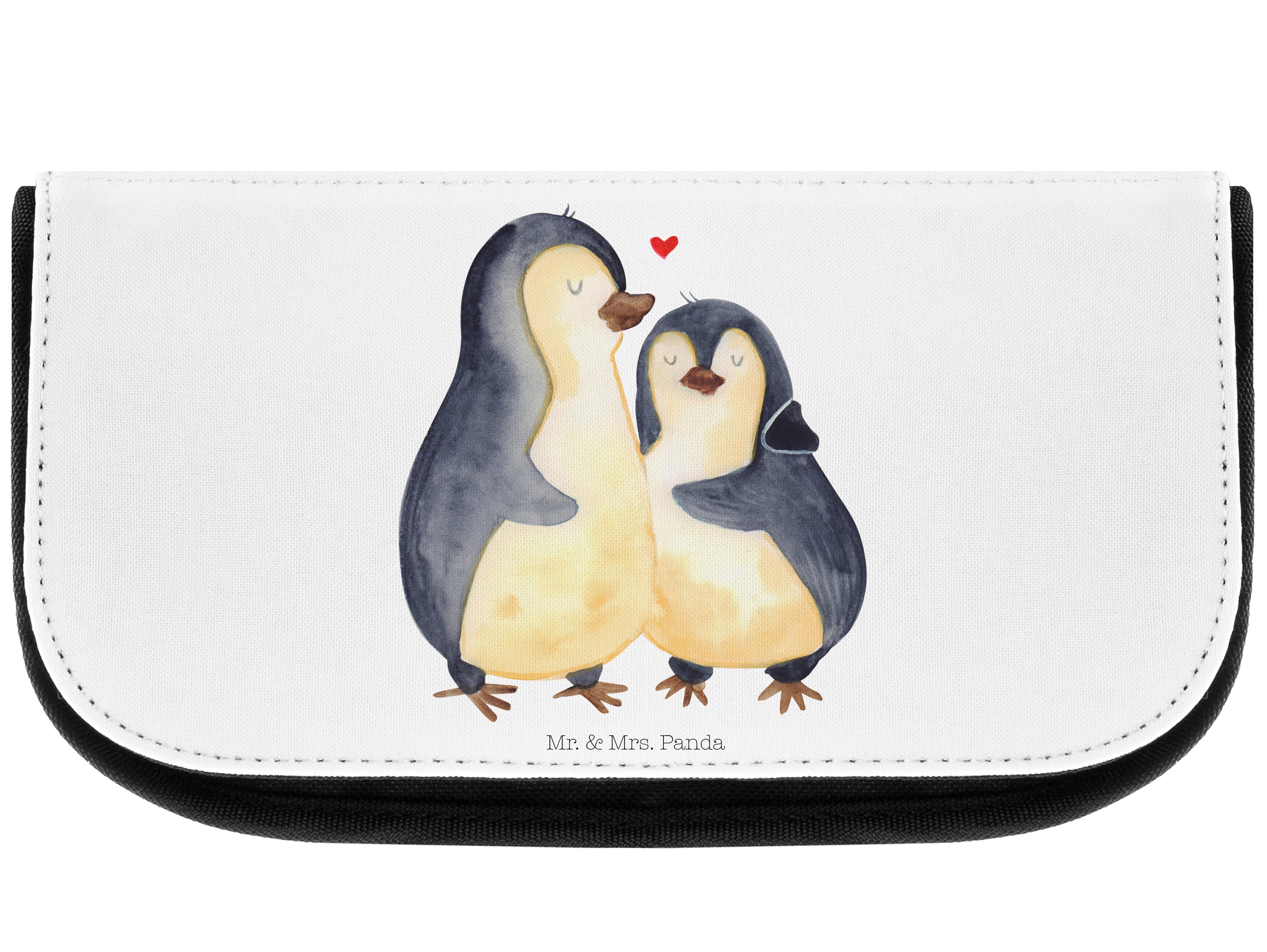 Kosmetiktasche Pinguin umarmend Kosmetikbeutel, Kulturtasche, Kulturbeutel, Schminktasche, Make-Up Tasche, Pinguin, Liebe, Liebespaar, Liebesbeweis, Liebesgeschenk, Verlobung, Jahrestag, Hochzeitstag, Hochzeit, Hochzeitsgeschenk