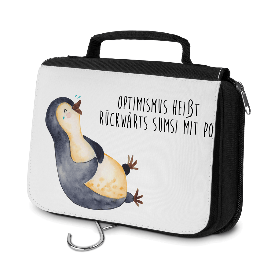 Kulturbeutel Pinguin lachend - mit Spruch - Weiß