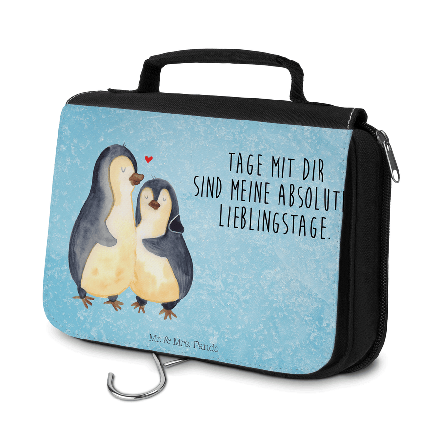 Kulturbeutel Pinguin umarmend - mit Spruch - Eisblau