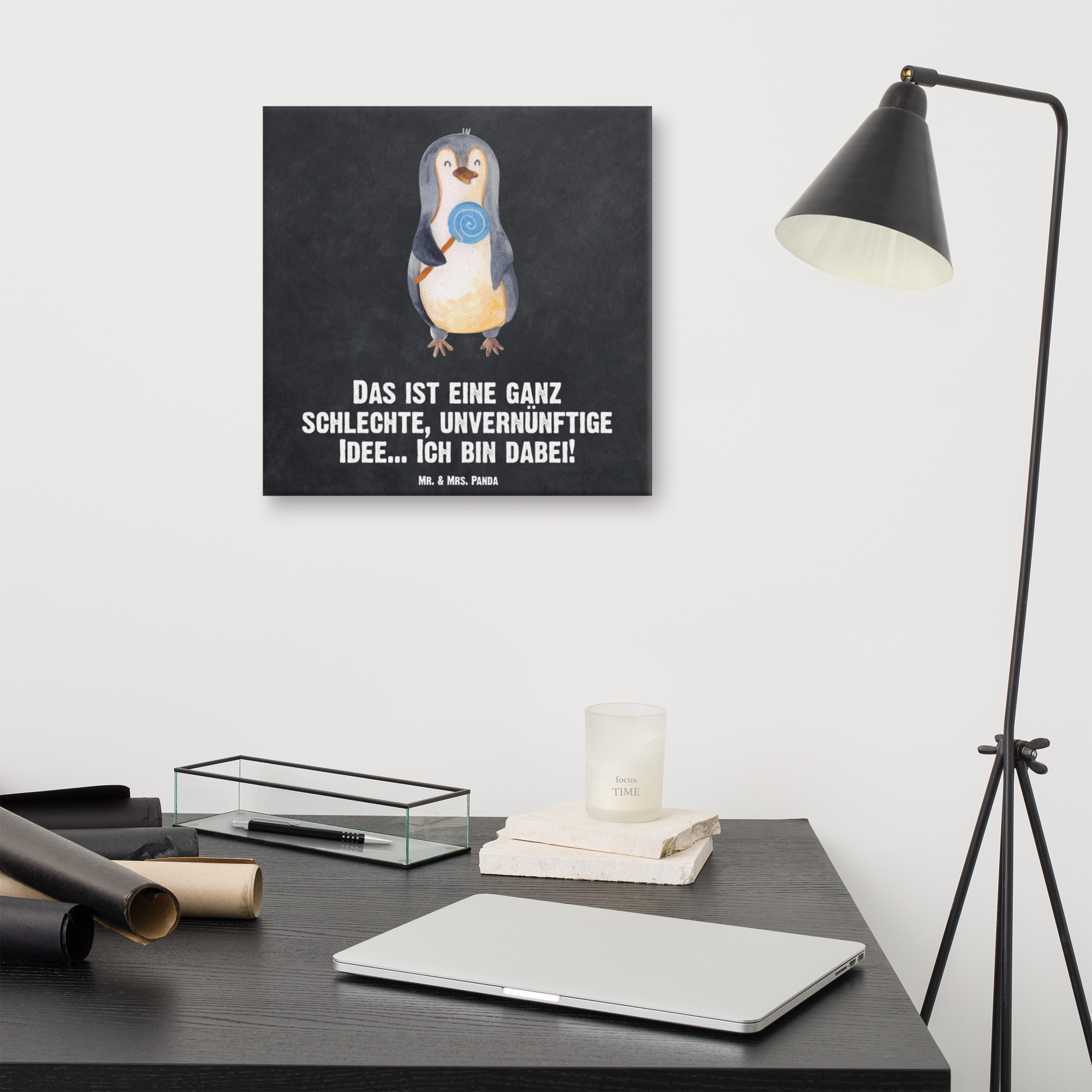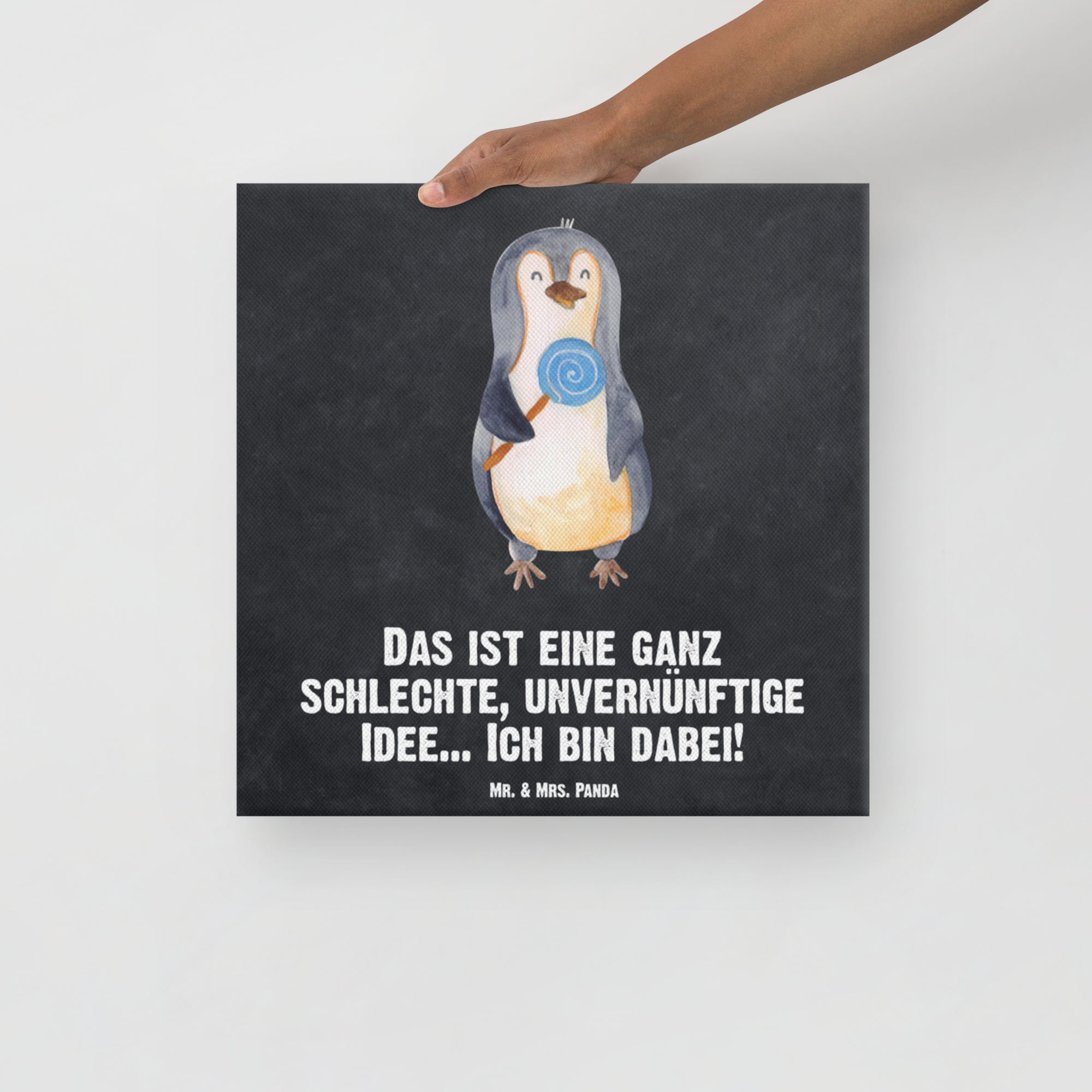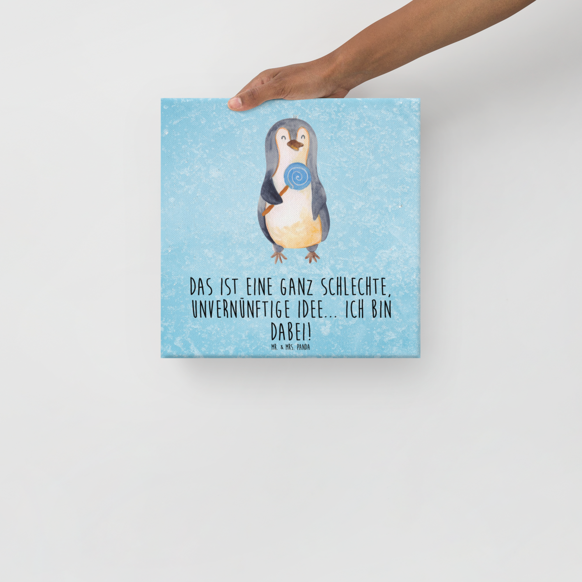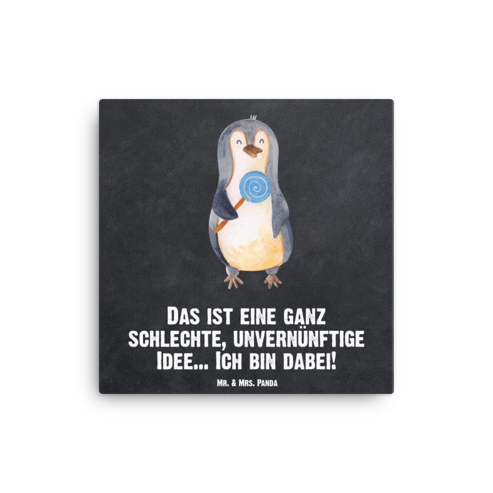 Leinwand Bild Pinguin Lolli - 40 x 40 cm - mit Spruch