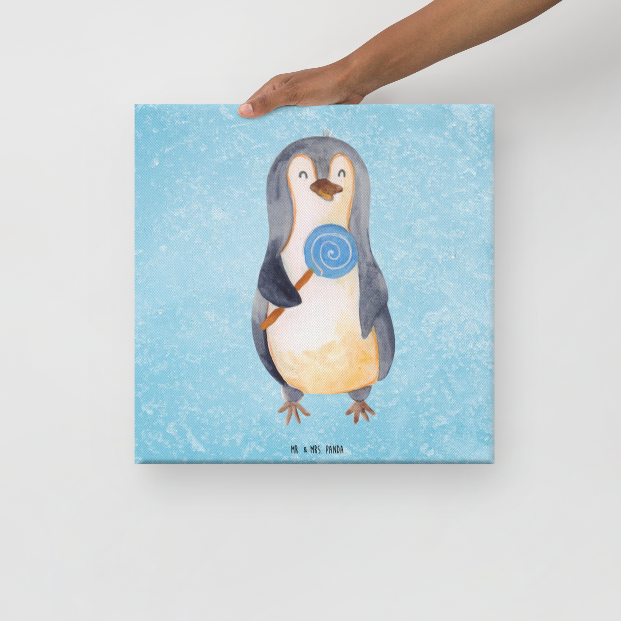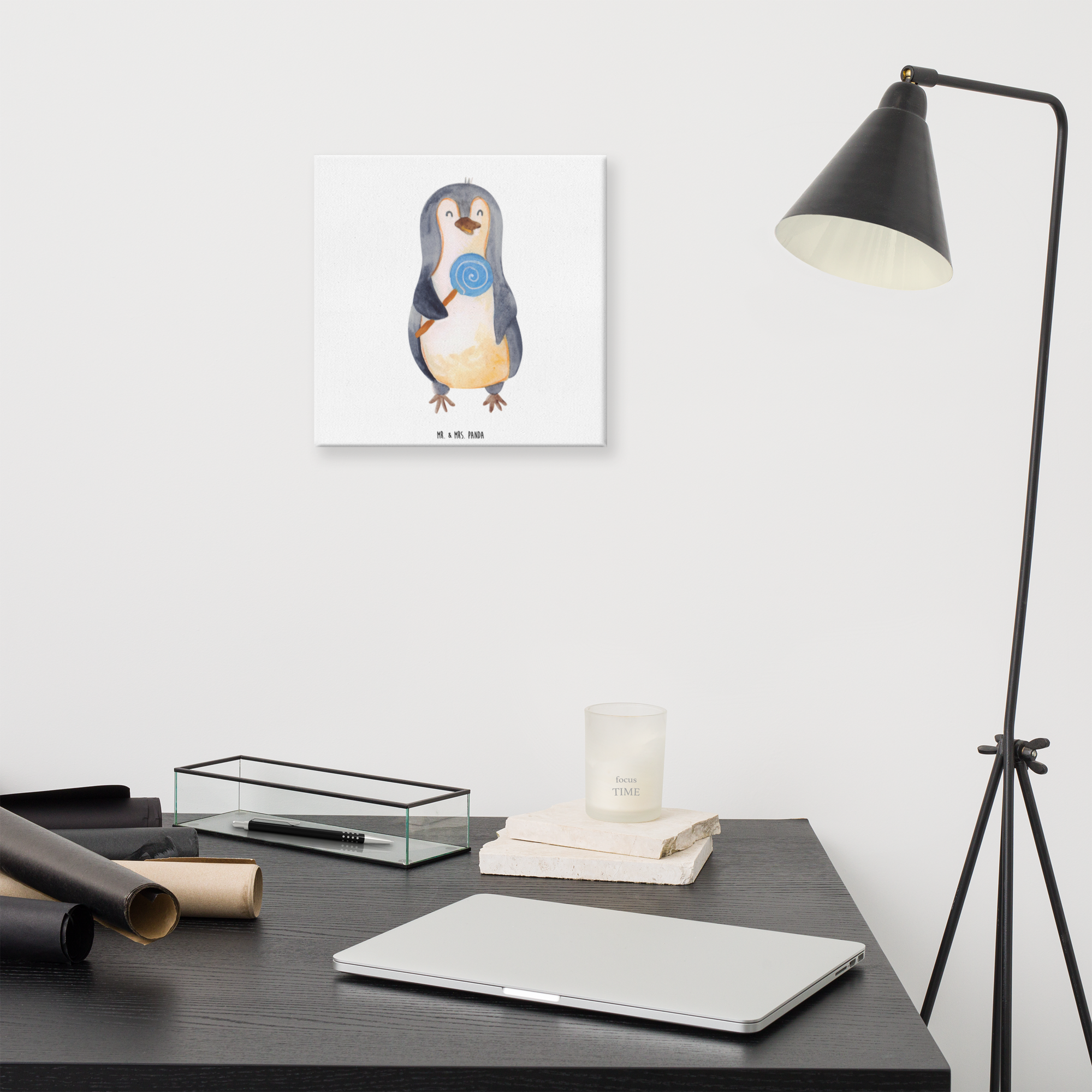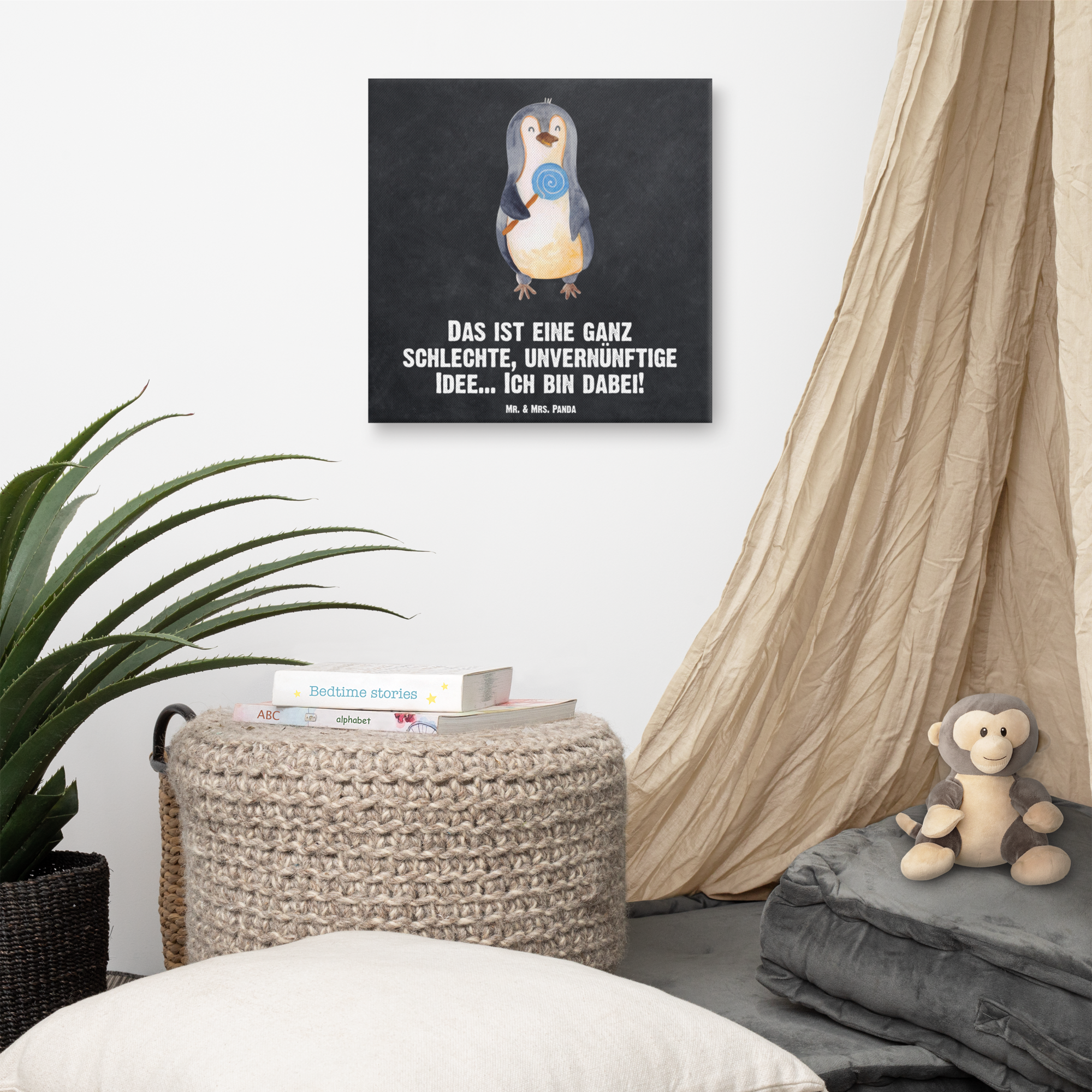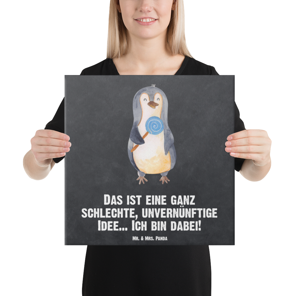 Leinwand Bild Pinguin Lolli - 40 x 40 cm - mit Spruch