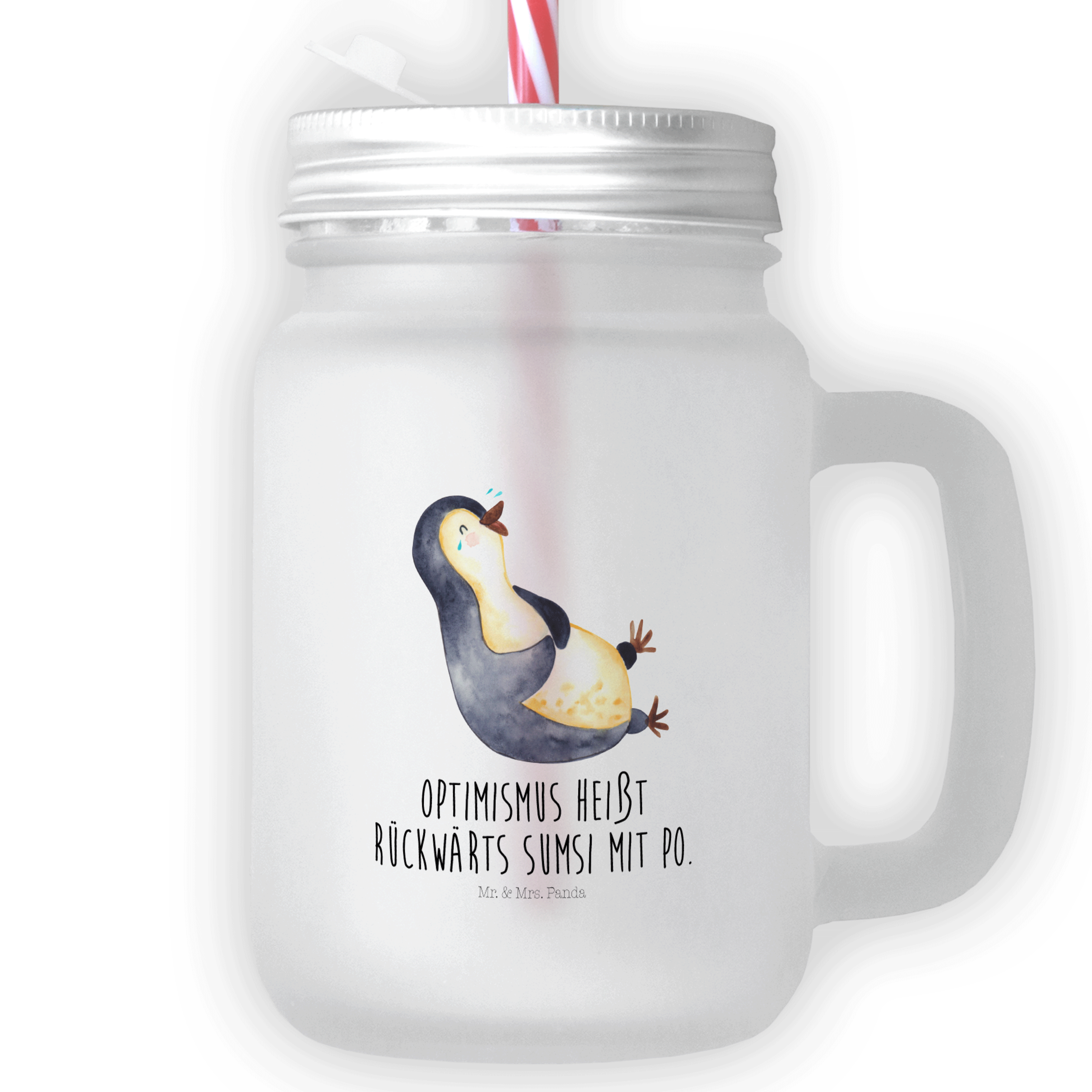 Trinkglas Mason Jar Pinguin lachend - mit Spruch