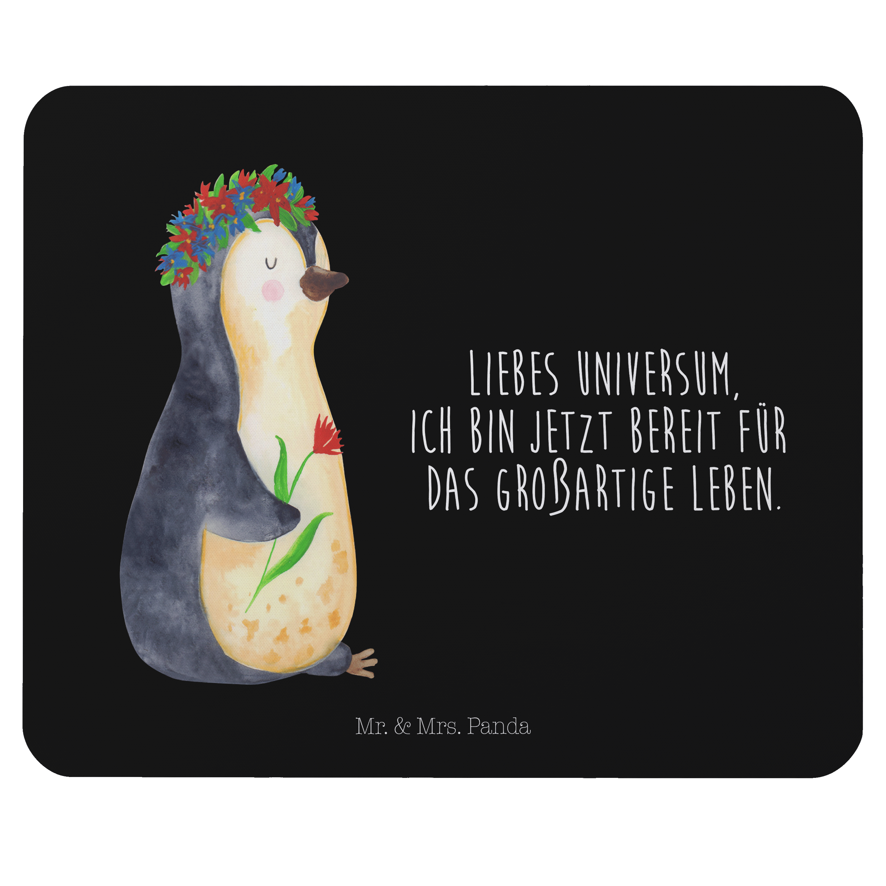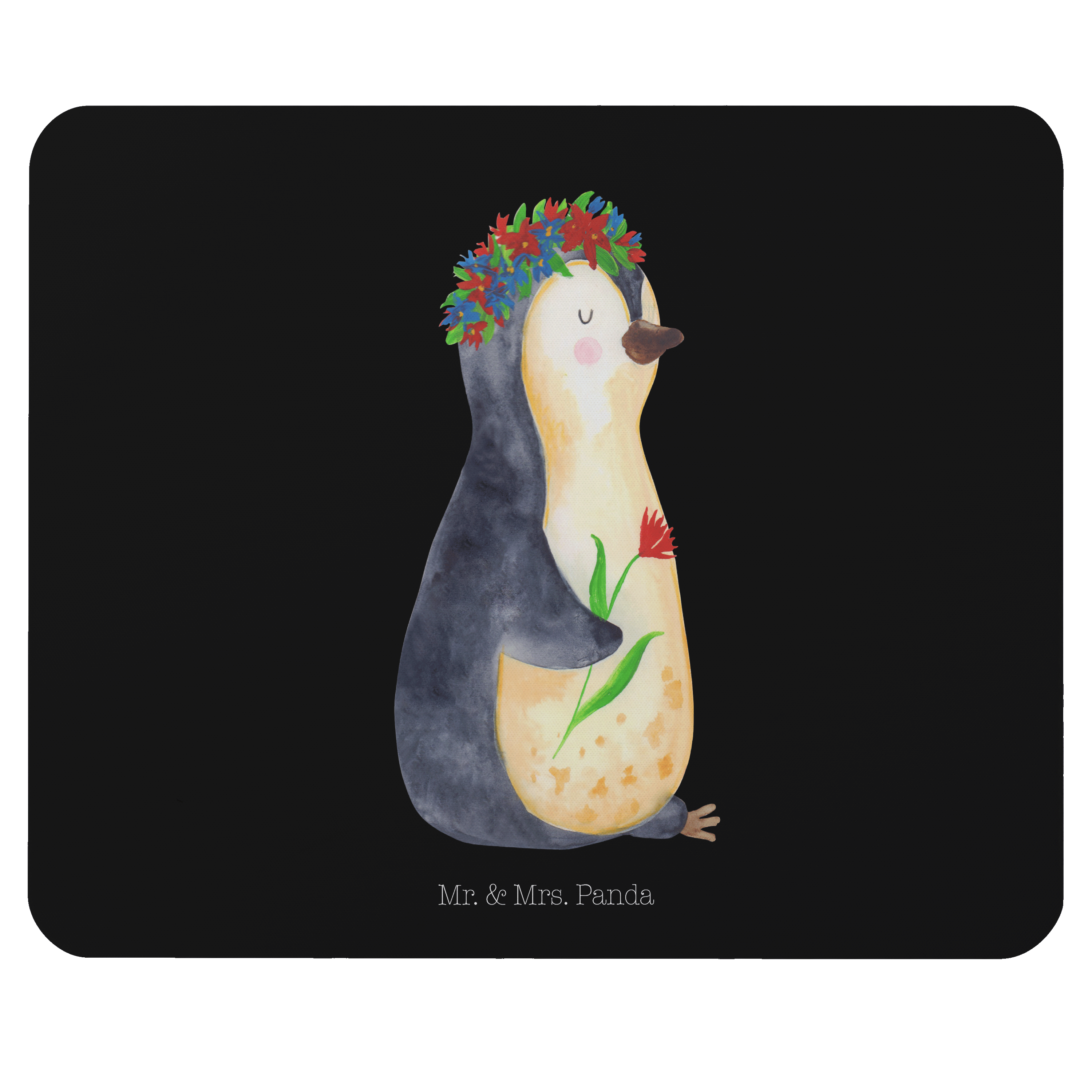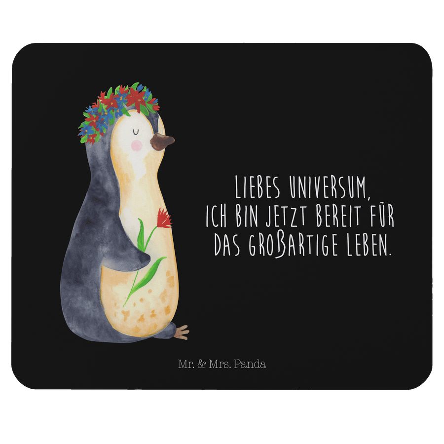 Mauspad Pinguin Blumenkranz - mit Spruch - Schwarz