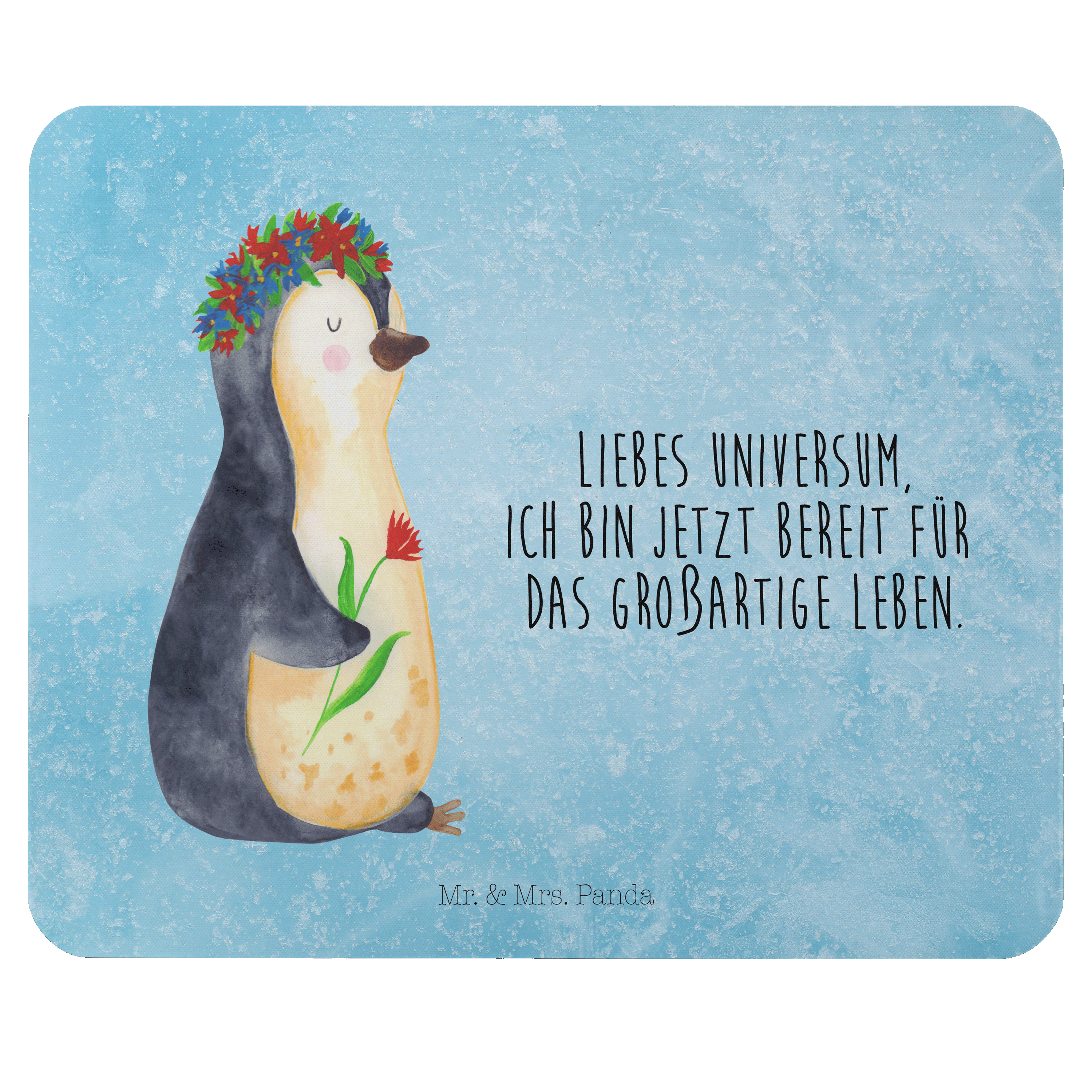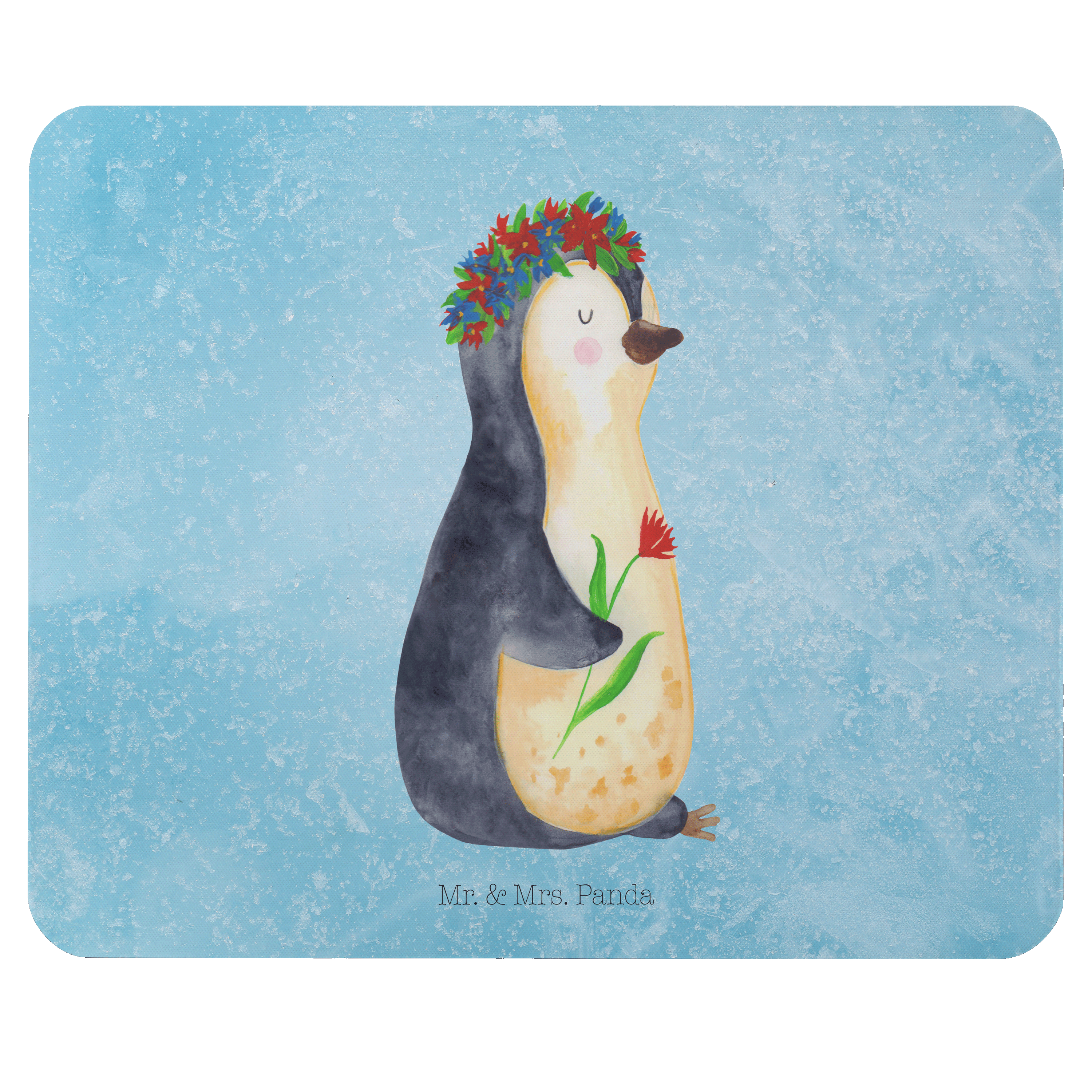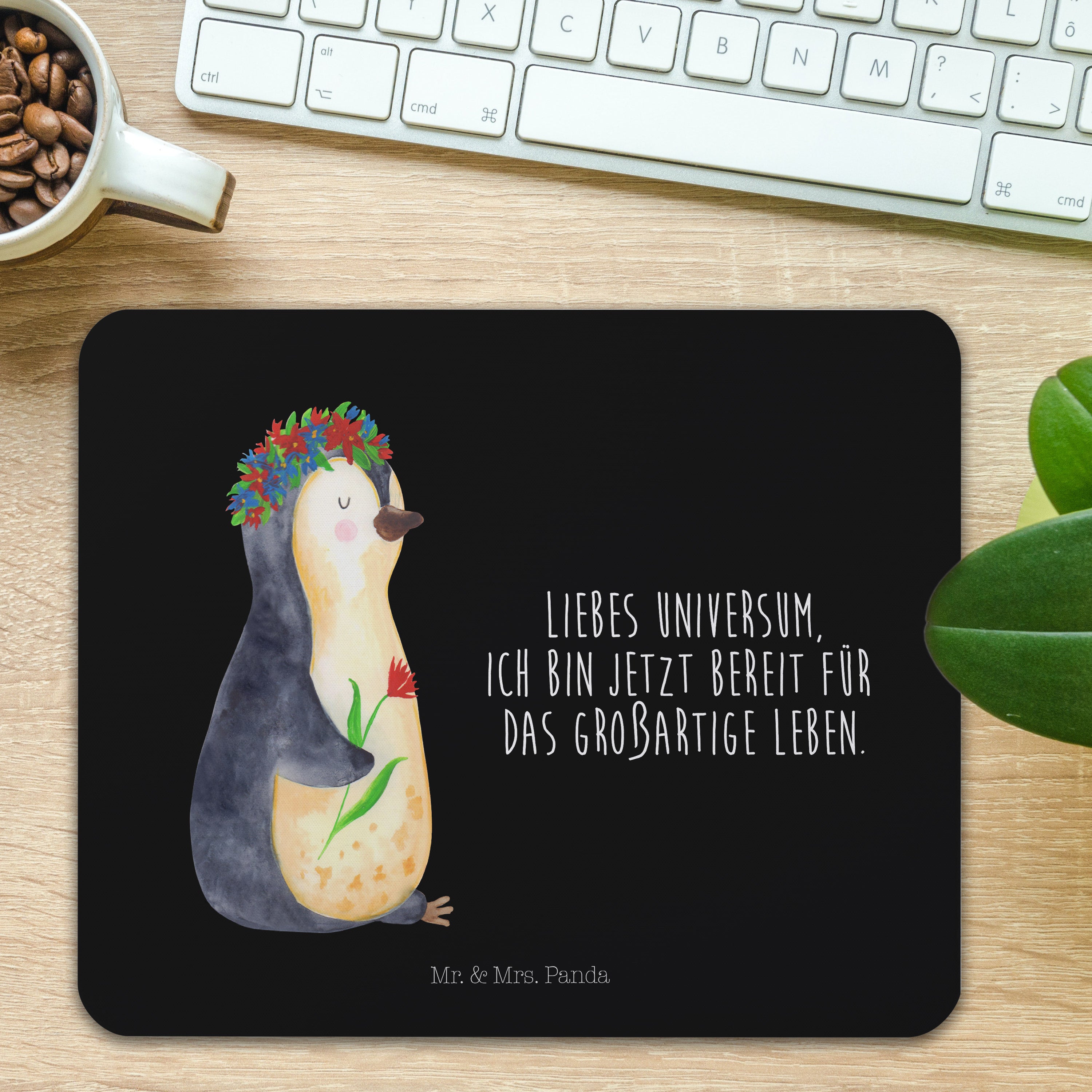 Mauspad Pinguin Blumenkranz - mit Spruch - Schwarz