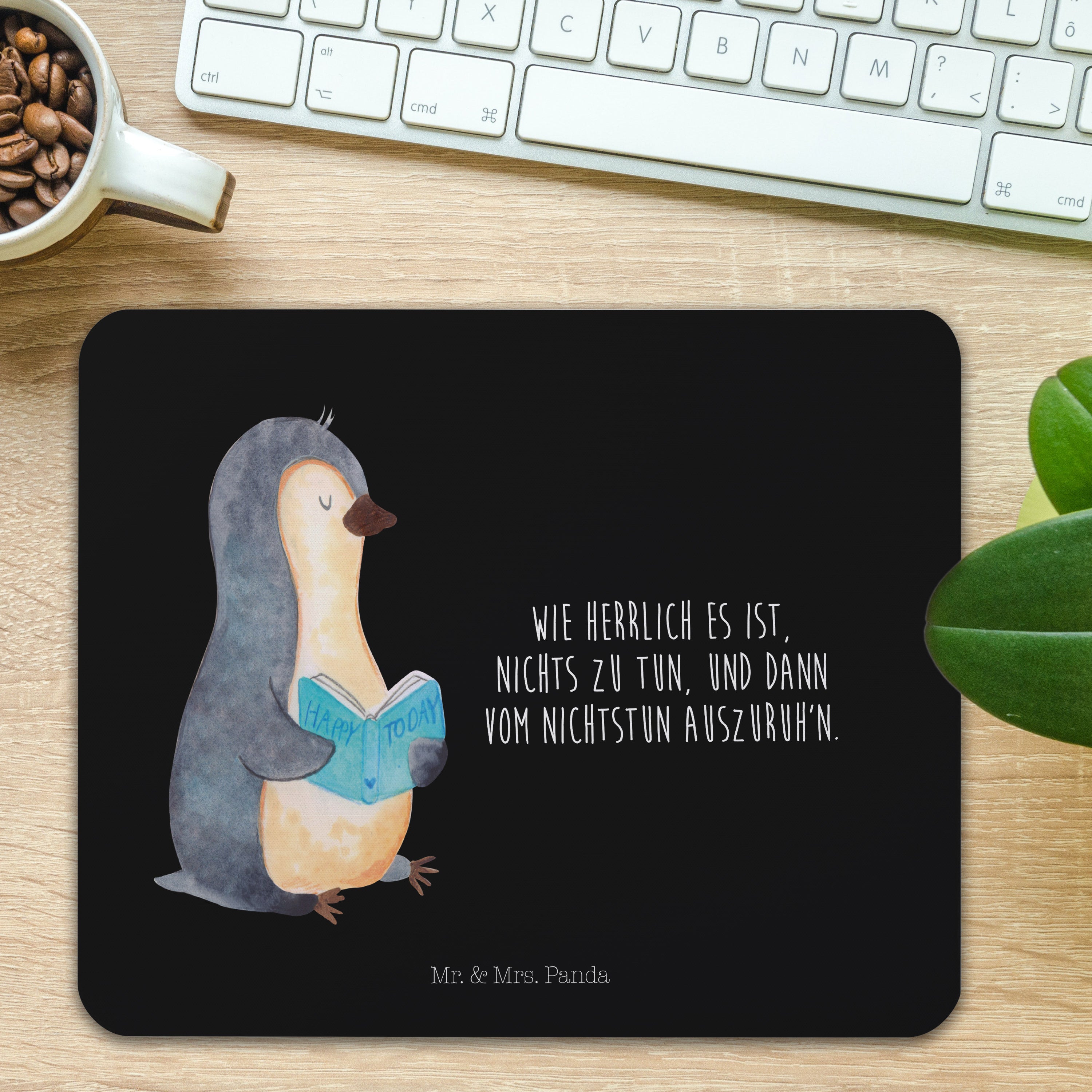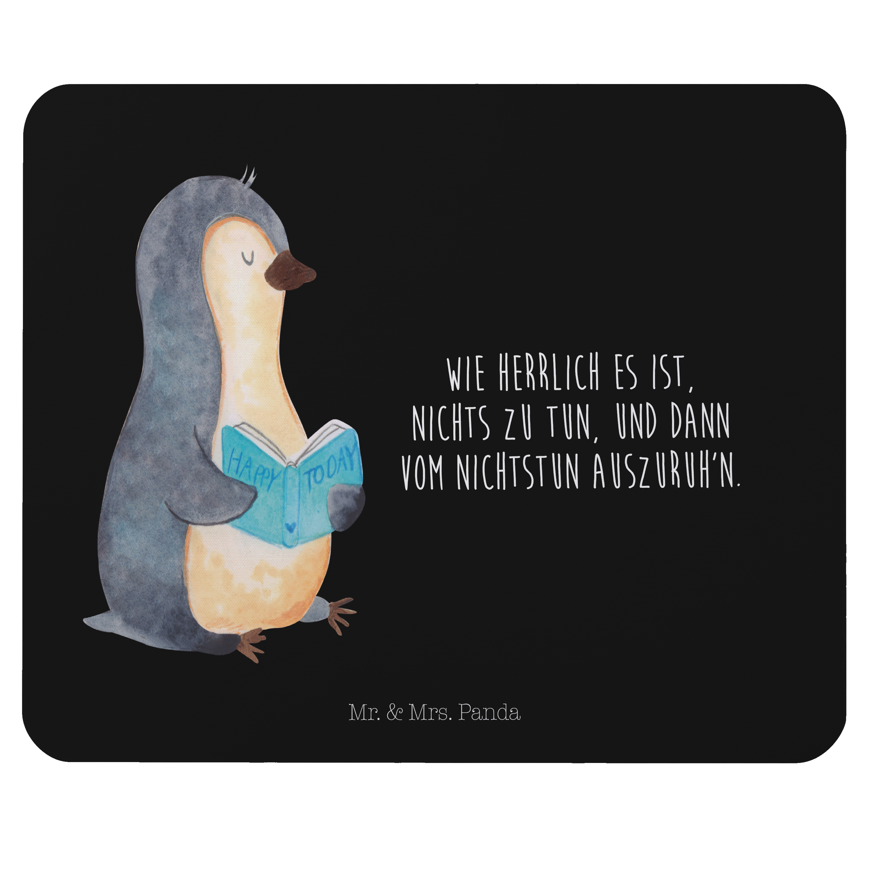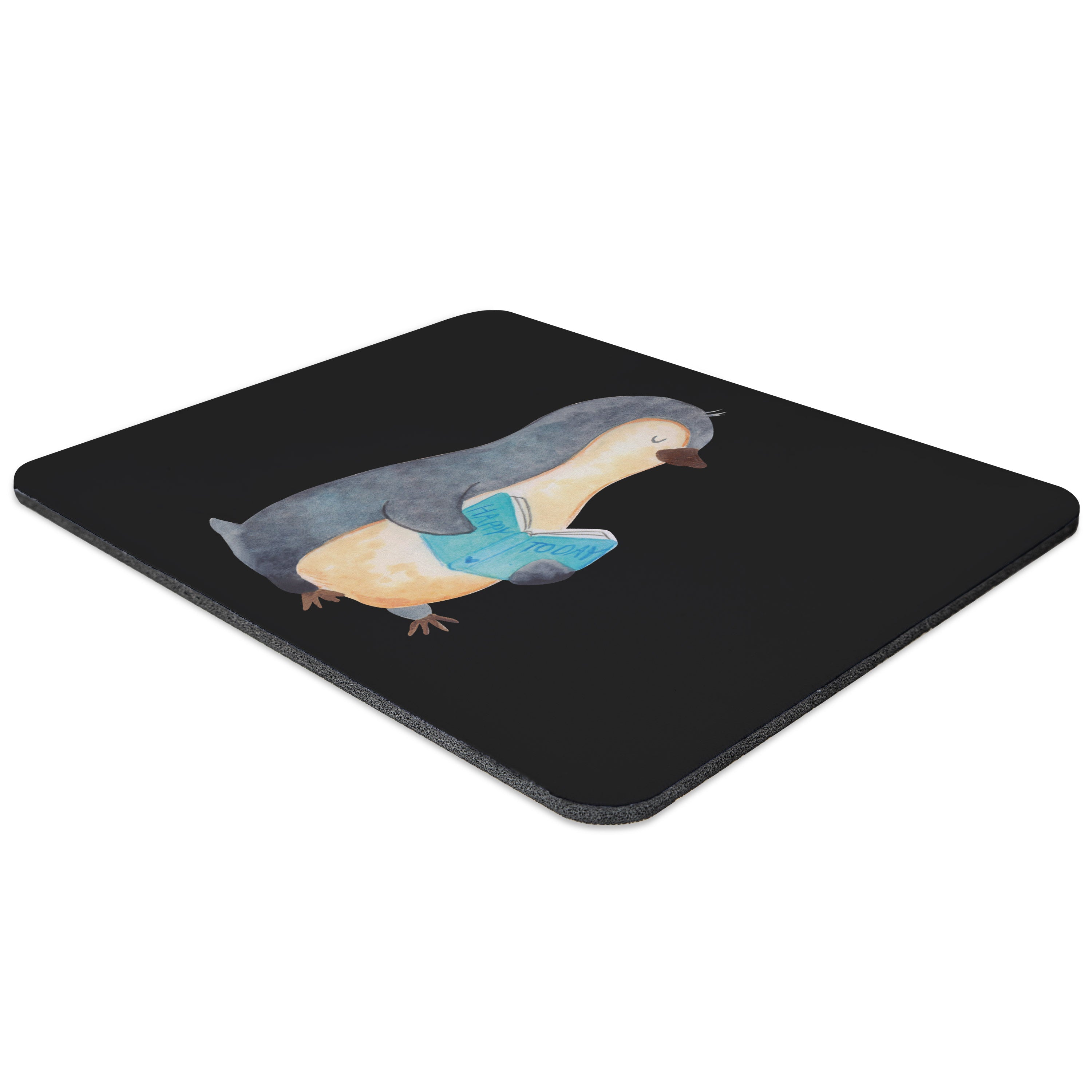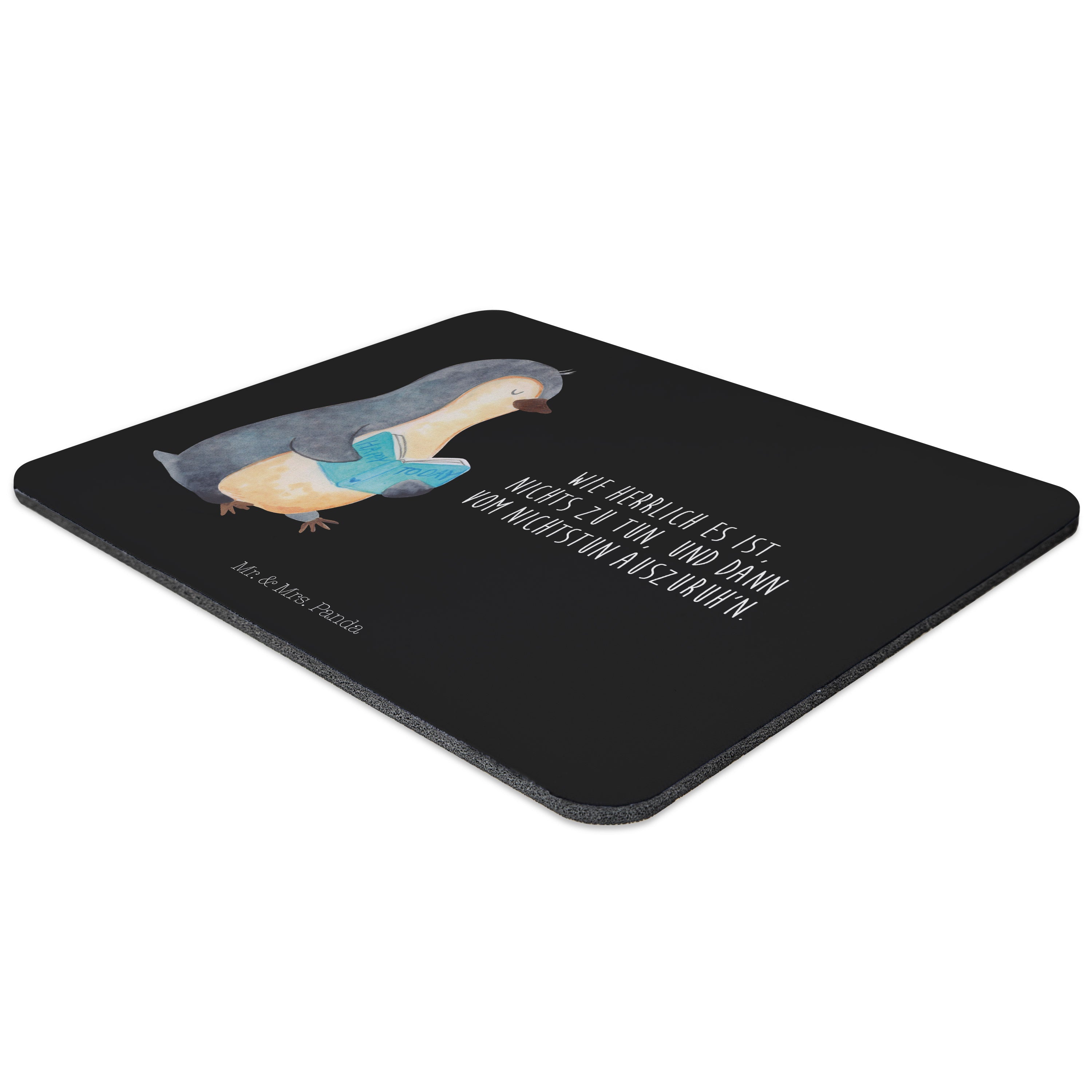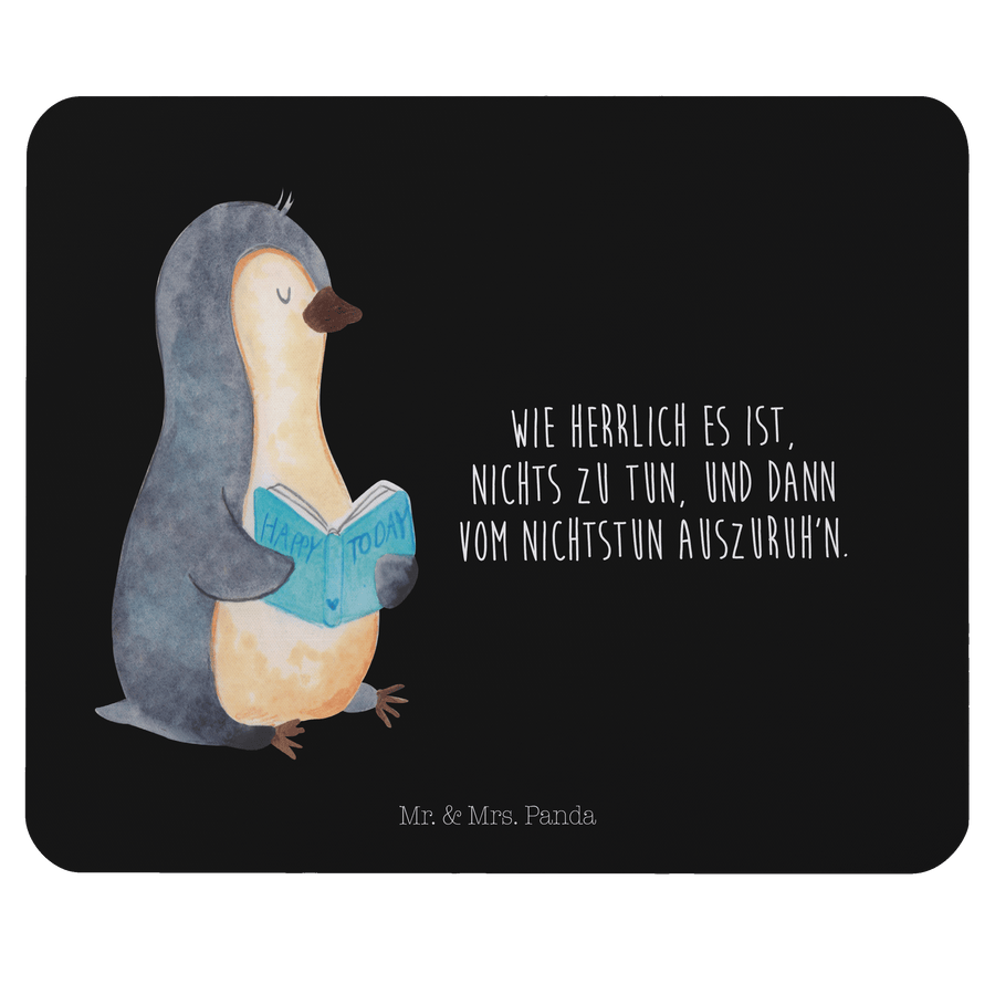 Mauspad Pinguin Buch - mit Spruch - Schwarz