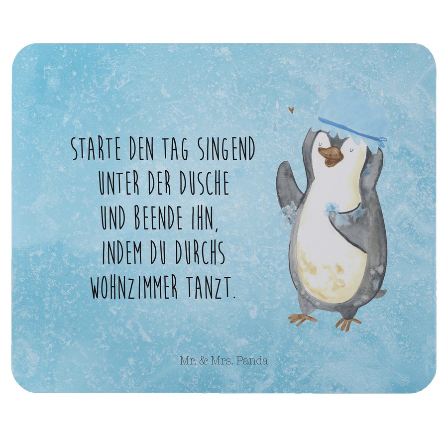 Mauspad Pinguin duscht - mit Spruch - Eisblau