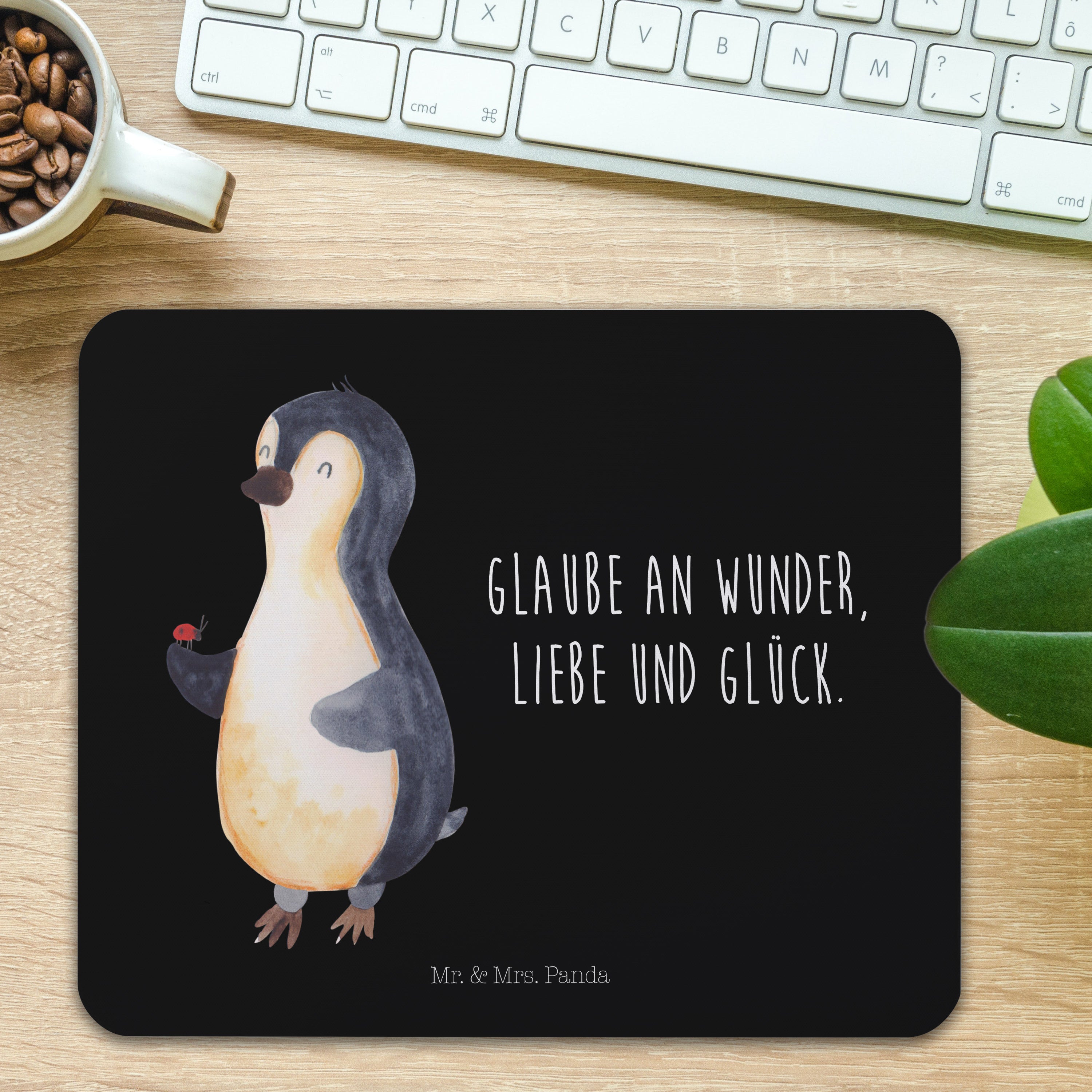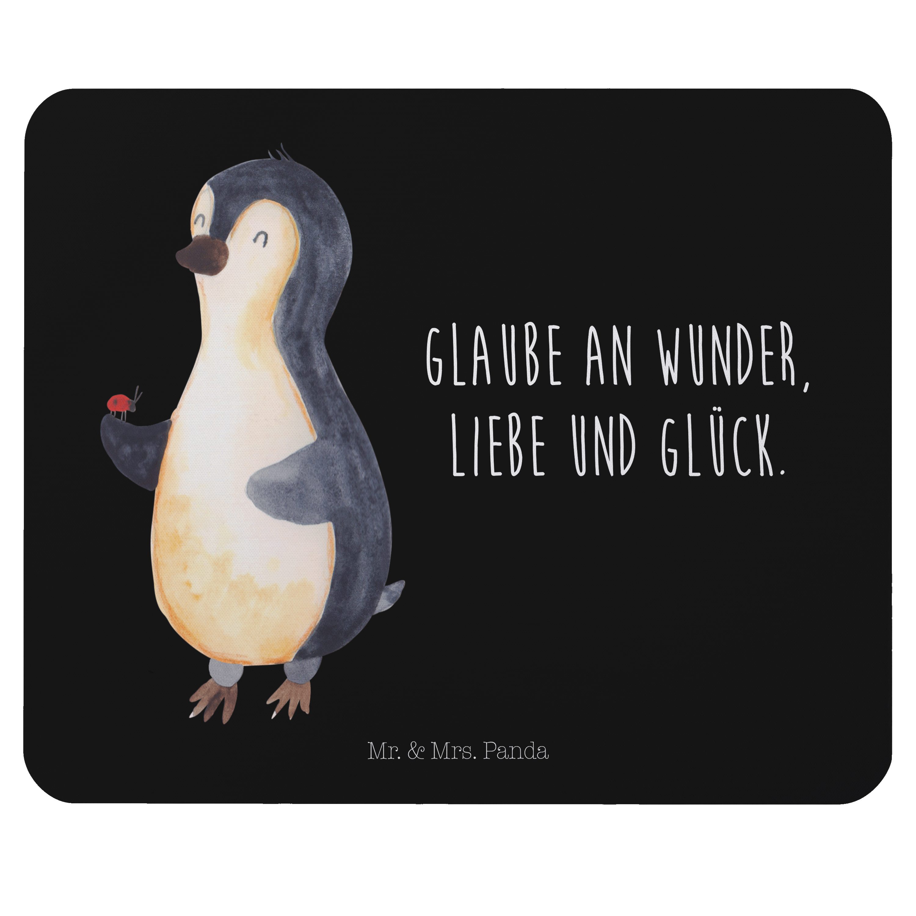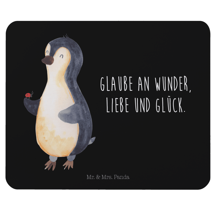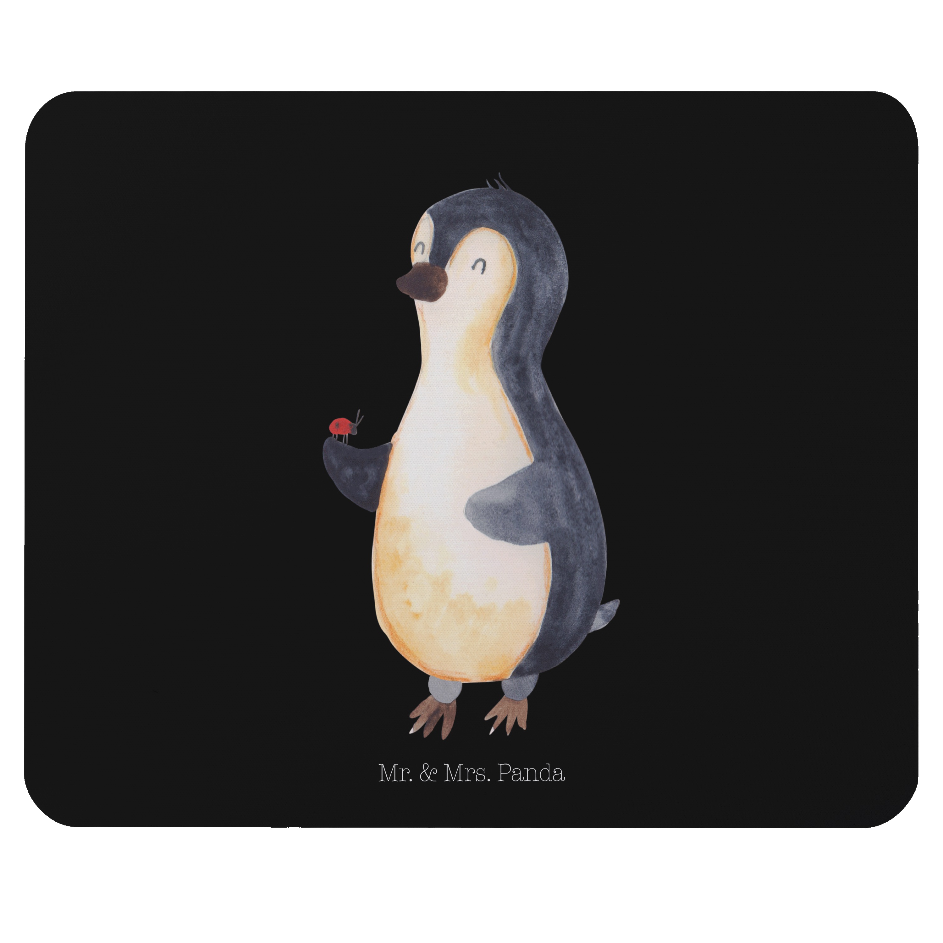 Mauspad Pinguin Marienkäfer - mit Spruch - Schwarz
