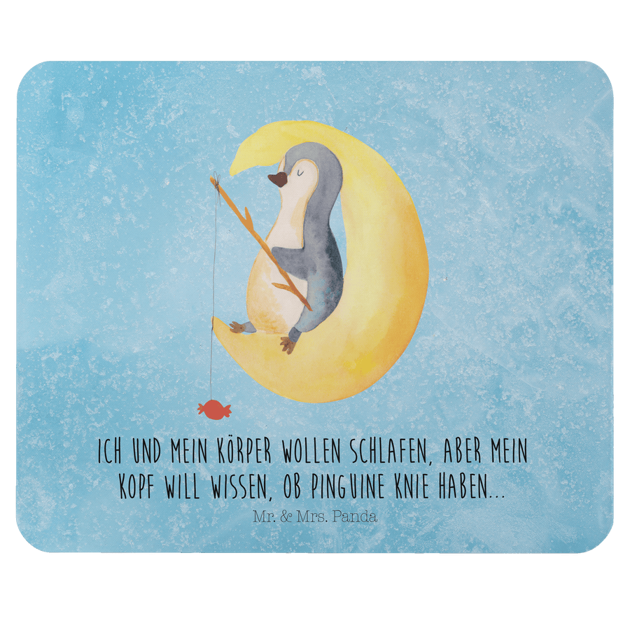 Mauspad Pinguin Mond - mit Spruch - Eisblau