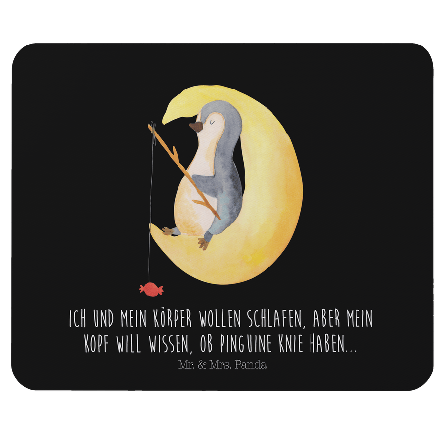 Mauspad Pinguin Mond - mit Spruch - Schwarz