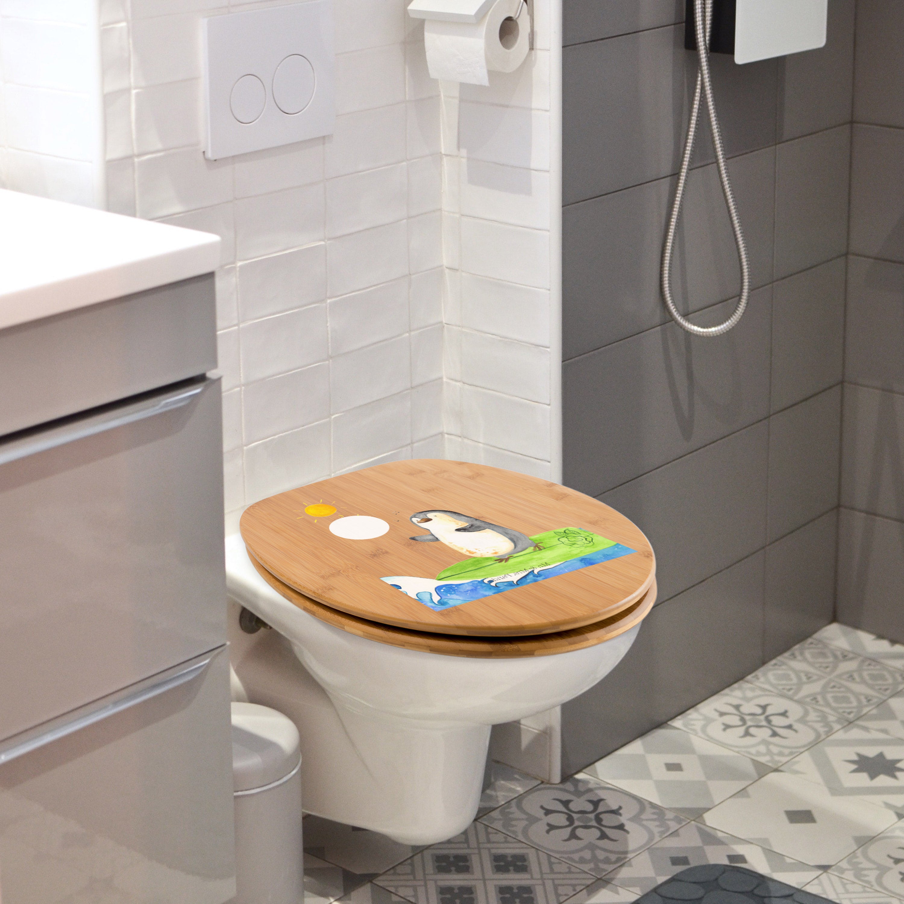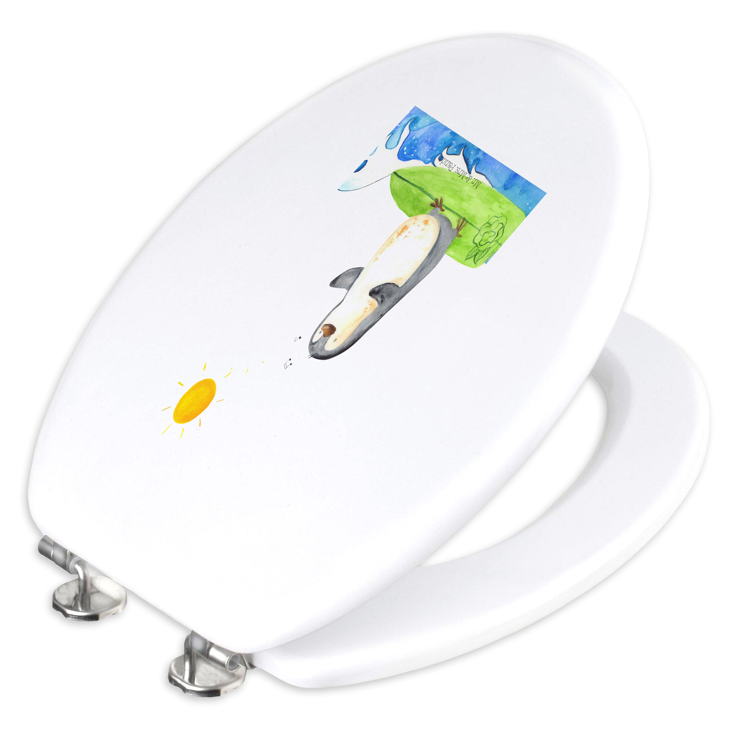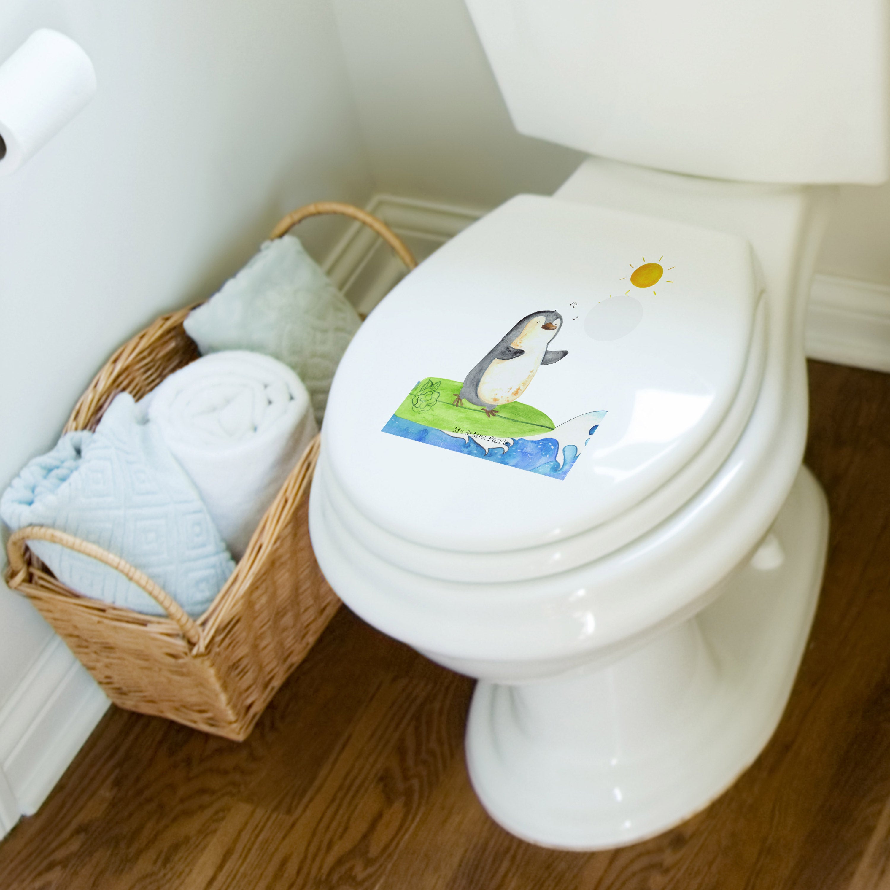 Der Toilettendeckel ist liebevoll mit einem hochwertigen Mr. & Mrs. Panda Motiv bedruckt worden und ist von Mrs. Panda entworfen worden, um mehr Lebensfreude in dein Badezimmer zu bringen.