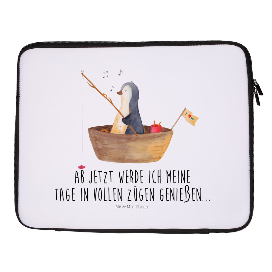 20 x 28 Notebook Tasche Pinguin Angelboot - mit Spruch - Weiß