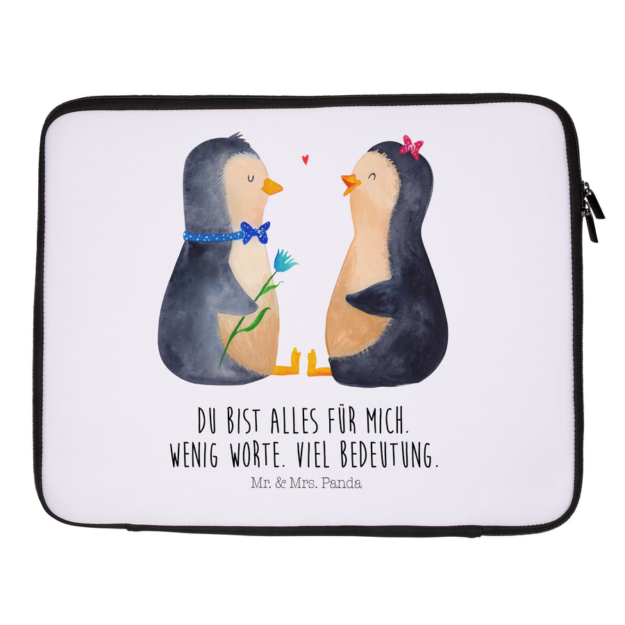 27 x 36 Notebook Tasche Pinguin Pärchen - mit Spruch - Weiß