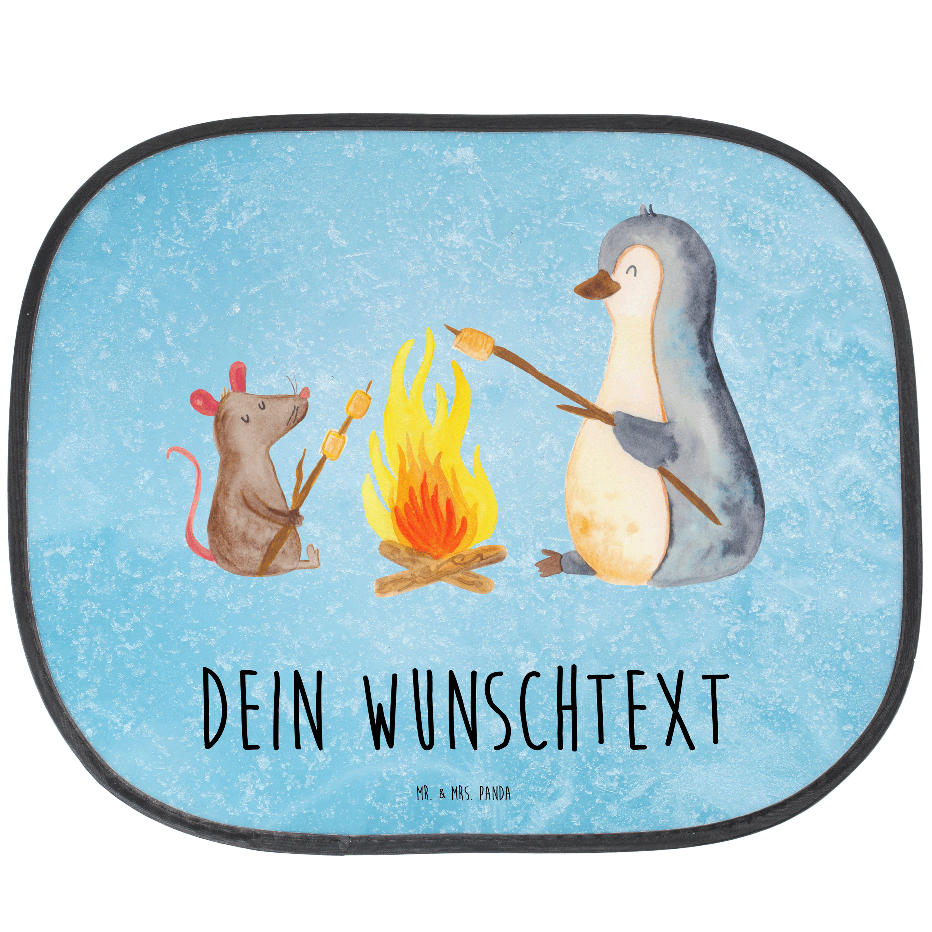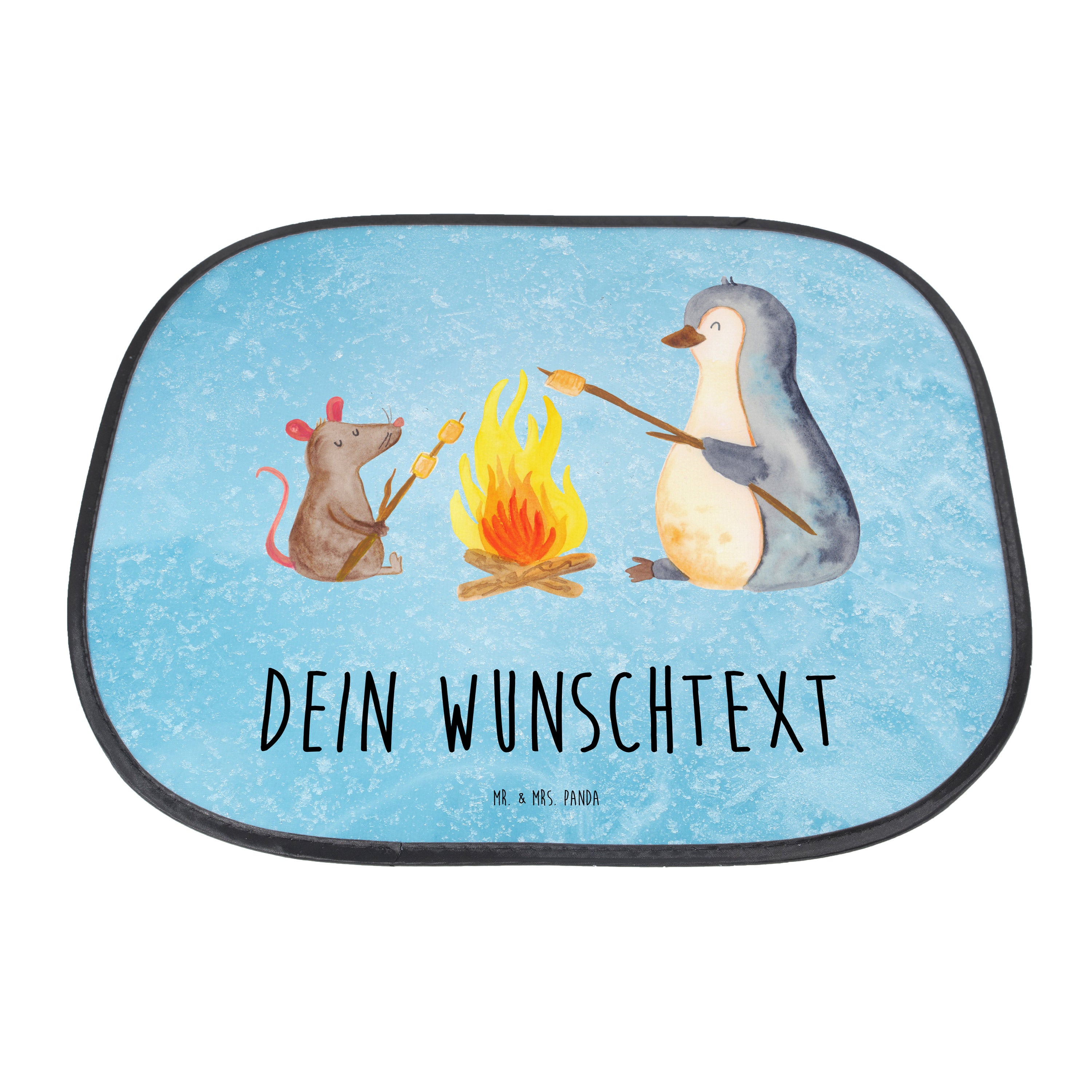 Personalisierbarer Sonnenschutz Pinguin Lagerfeuer