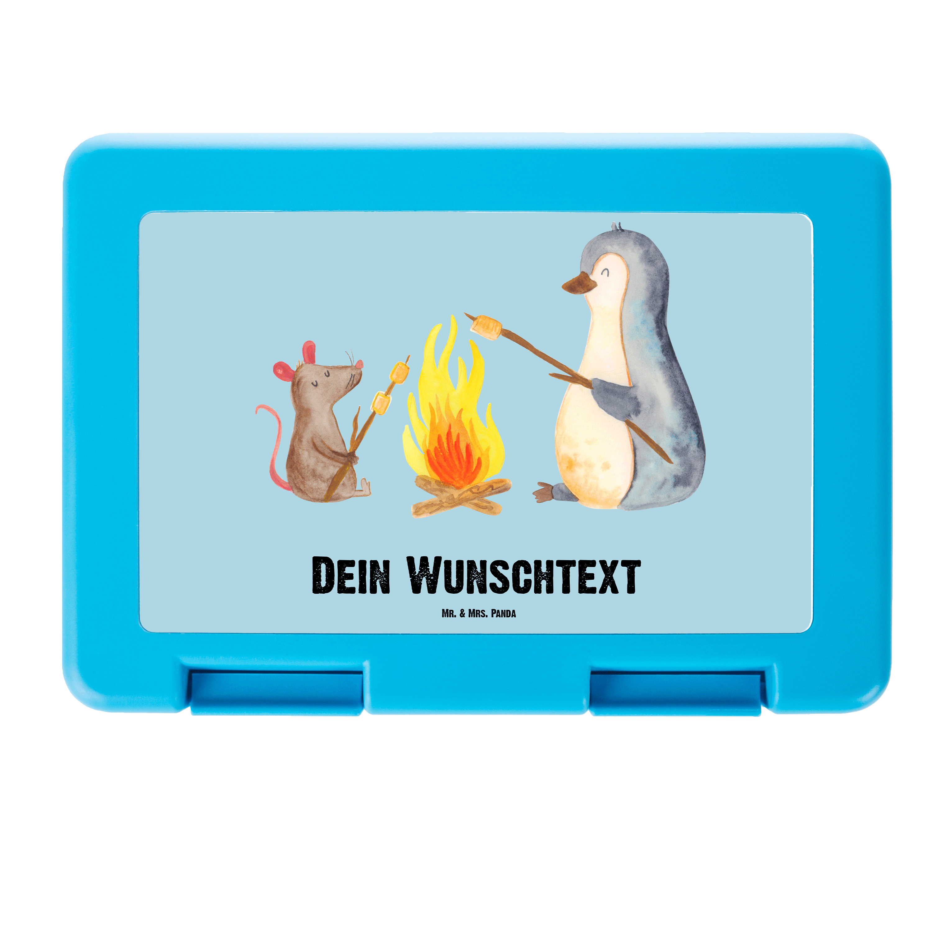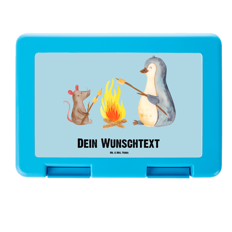 Personalisierte Brotdose Pinguin Lagerfeuer