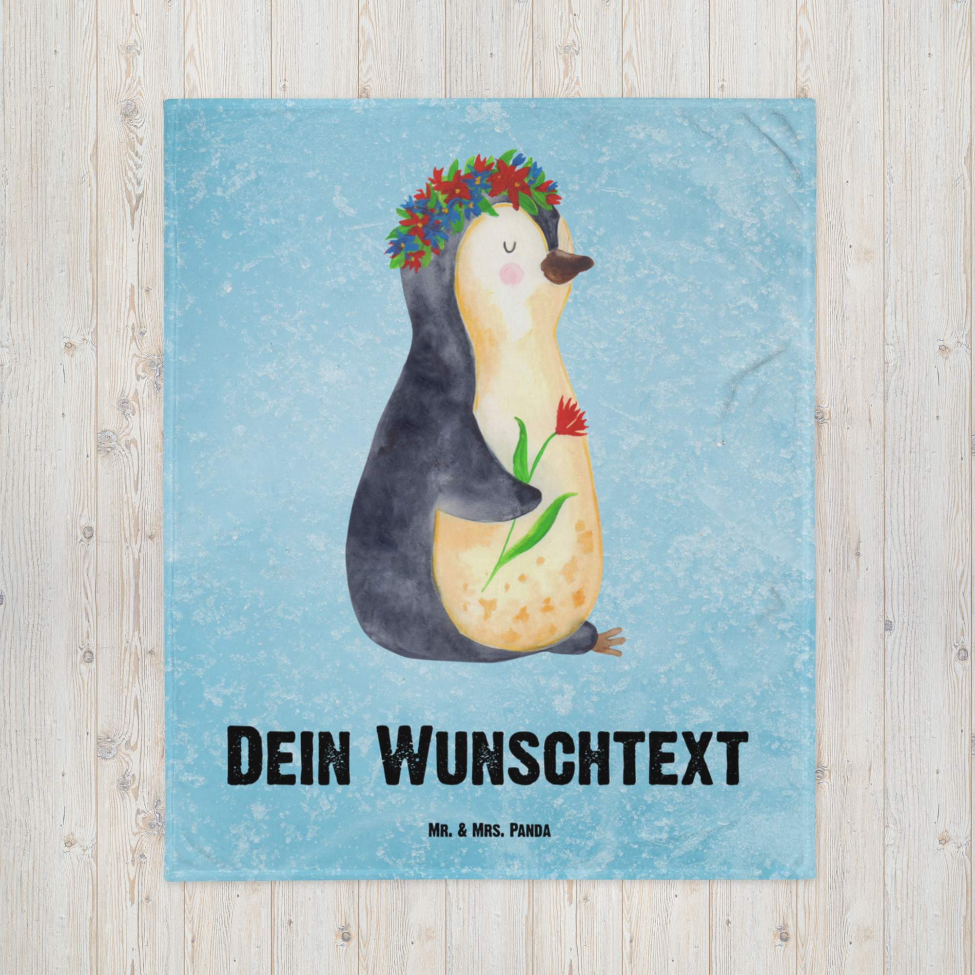 Personalisierte Decke Pinguin Blumenkranz Personalisierte Decke, Decke mit Namen, Kuscheldecke mit Namen, Decke bedrucken, Kuscheldecke bedrucken, Pinguin, Pinguine, Blumenkranz, Universum, Leben, Wünsche, Ziele, Lebensziele, Motivation, Lebenslust, Liebeskummer, Geschenkidee