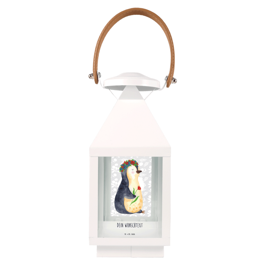 Personalisierte Deko Laterne Pinguin Blumenkranz - S