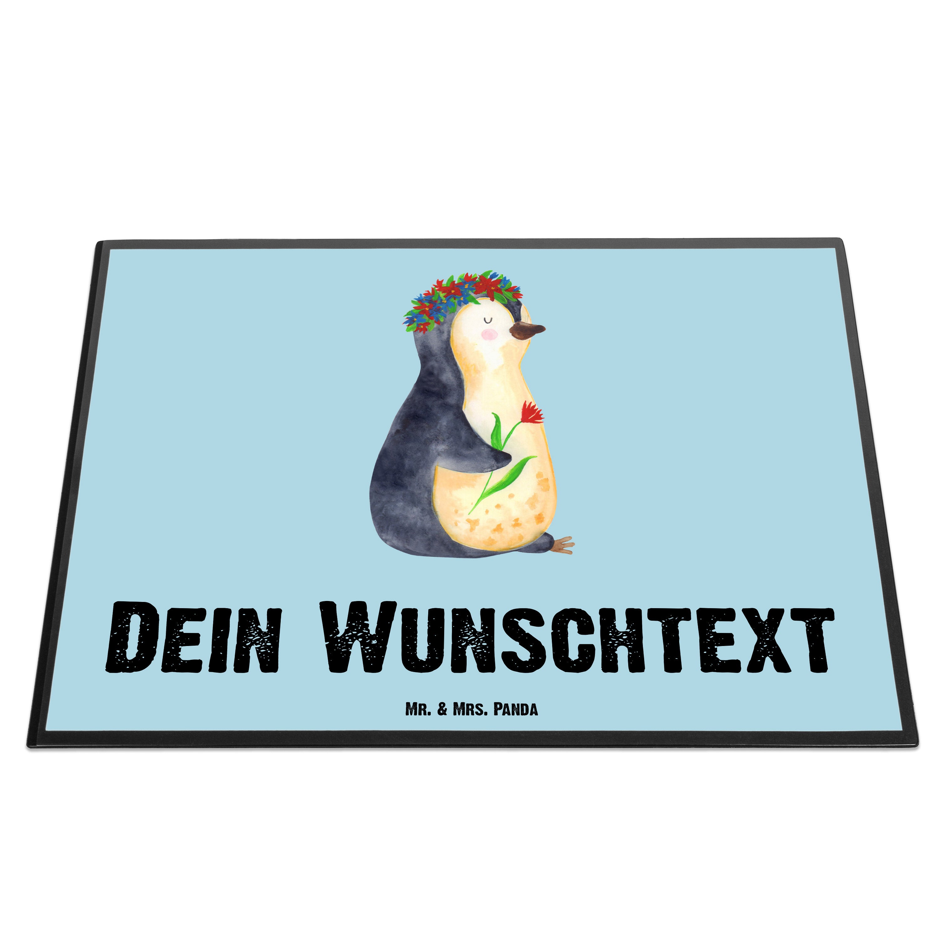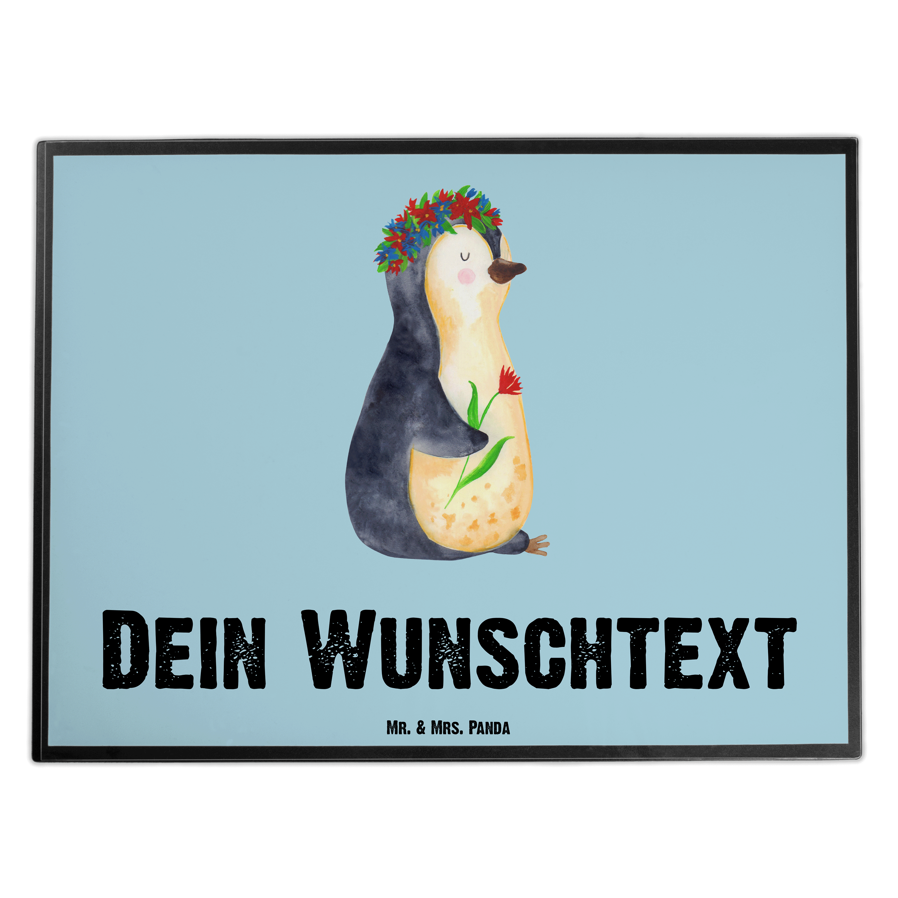 Personalisierte Schreibtischunterlage Pinguin Blumenkranz