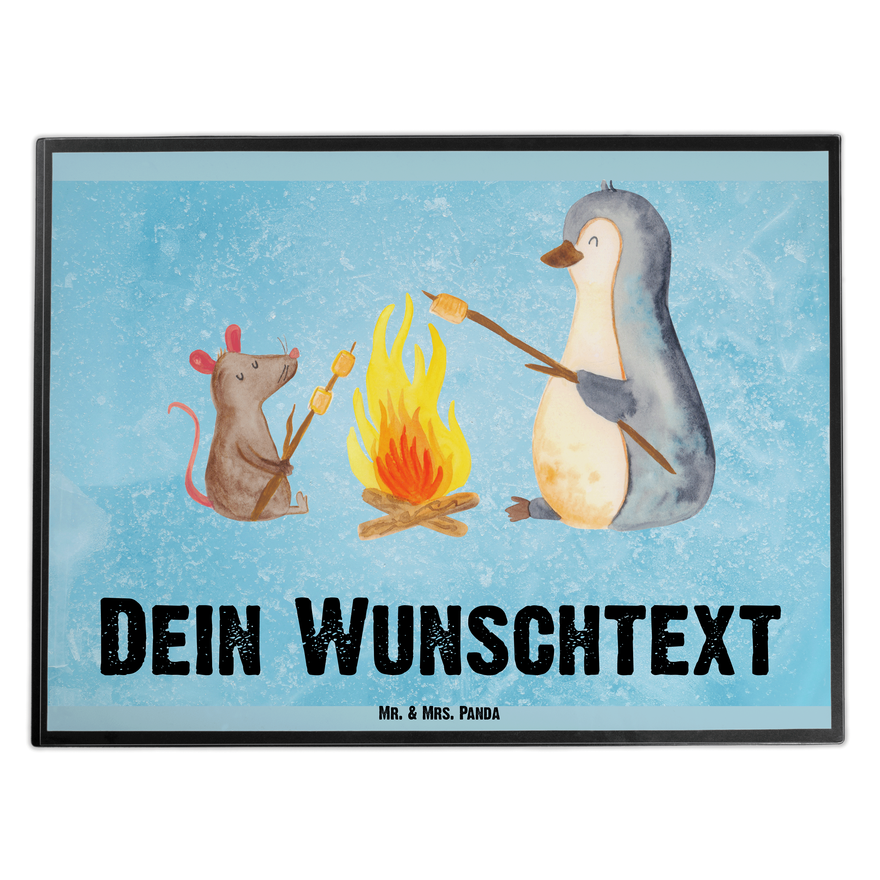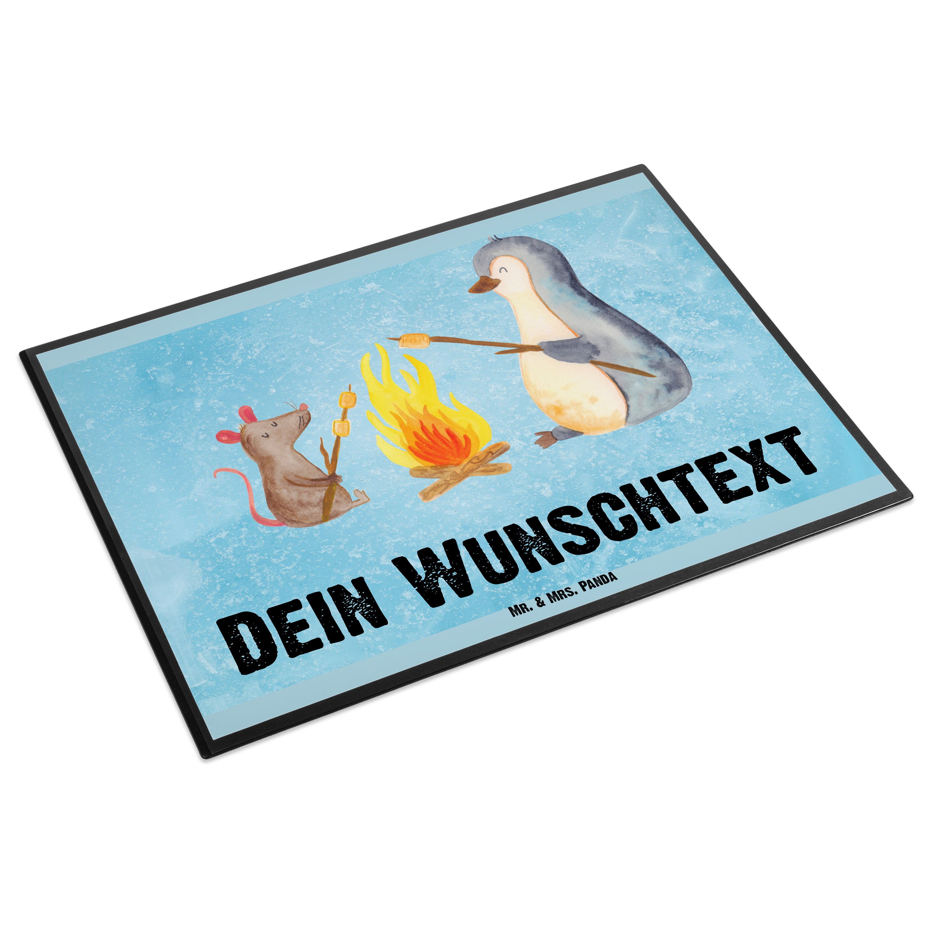 Personalisierte Schreibtischunterlage Pinguin Lagerfeuer